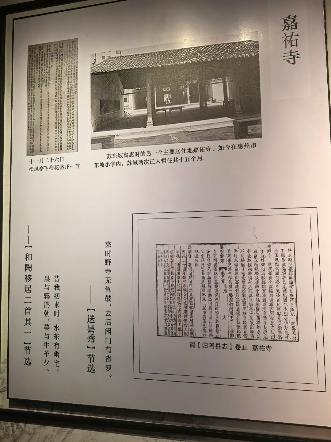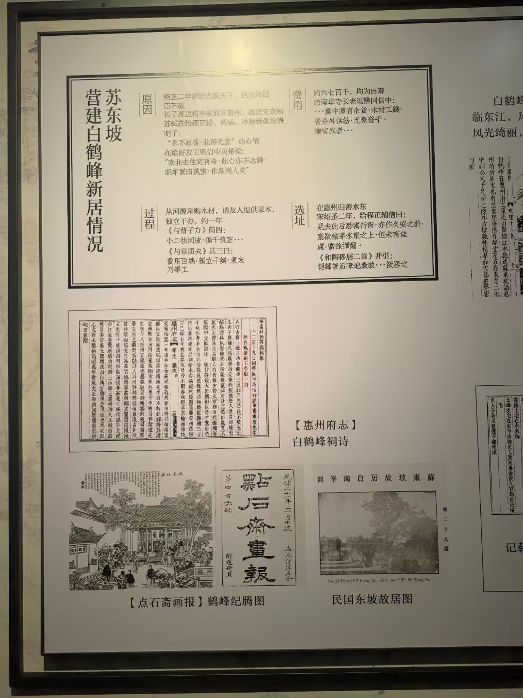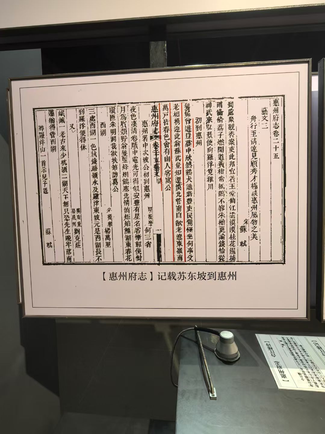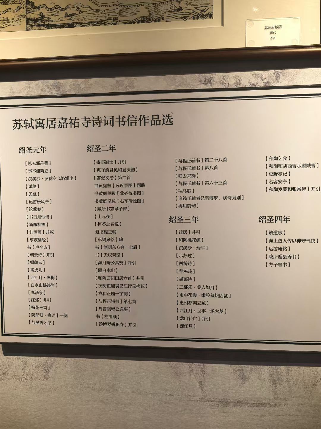 参观白鹤峰东坡纪念馆,可以全面了解各个历史时期的经历,从家乡眉州一直到黄惠儋三州,基础上都有史料展示。我最感兴趣的当然是寓惠展示厅这里的内容是别的地方没有的。 据《惠州志·艺文卷》统计,苏东坡寓惠期间共创作了作品587首(篇、幅),书信共51人233篇、书画20幅。如此算来,从1094年抵达惠州,到1097年离开惠州的900多天里,苏东坡共创作近600首(篇、幅)作品,平均一天半就创作一首,可见在惠州时,他的精力是何等旺盛!毅力是何等坚强!
