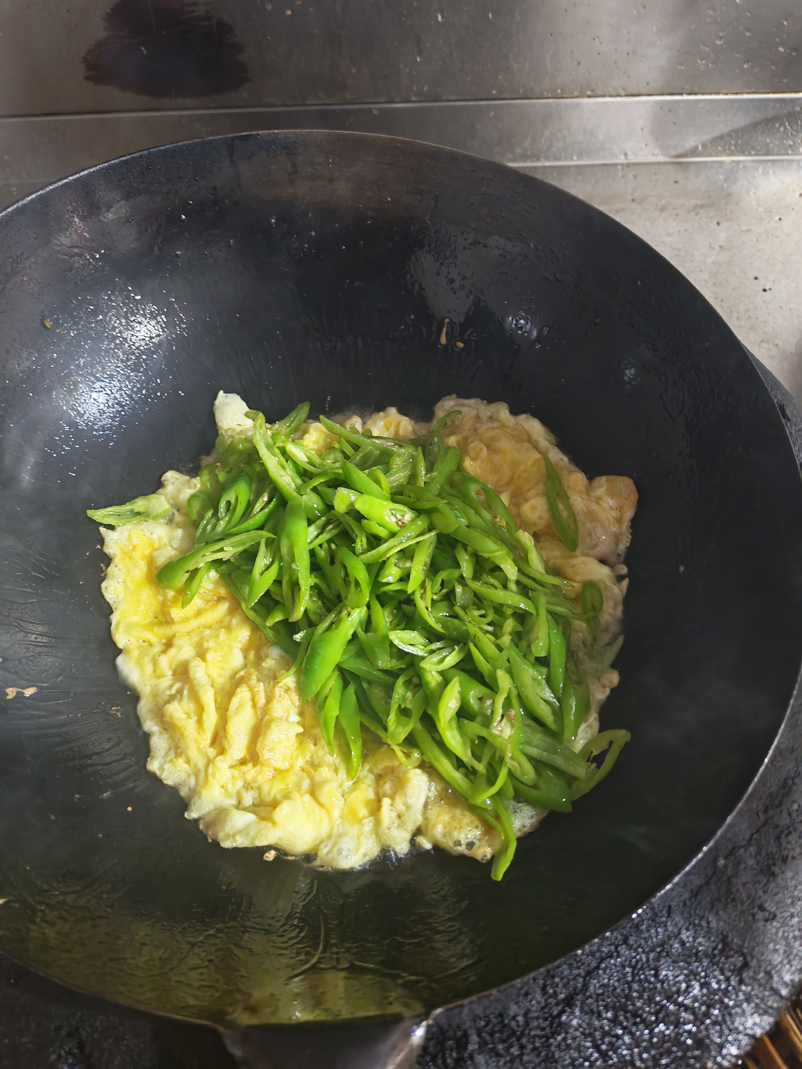 线椒炒蛋这道菜,最迷人的地方就在于“快、辣、香”。线椒的清脆和微辣,配上鸡蛋的蓬松和蛋香,一入口就把胃口叫醒。它不需要复杂的调味,靠的就是火候和先后顺序:蛋要嫩,椒要脆,出锅要快。 食材 - 线椒 6–8根 - 鸡蛋 3个 - 盐 适量 - 味精 少许(可选) - 食用油 适量 步骤 1. 处理线椒:线椒洗净擦干,切小圈(去籽可减辣,留籽更过瘾)。 2. 线椒过油:热锅多一点油,油温起来后下线椒快速翻炒10–20秒,捞出沥油(这一步能让线椒更脆更香,也能减少后续炒制时间)。 3. 调蛋液:鸡蛋打入碗中,加盐、味精(可选)搅匀。 4. 先炒蛋:锅里留少许底油,倒入蛋液,中火快速炒到“刚凝固、还松软”的状态。 5. 合炒出锅:立刻下过油的线椒,快速翻炒均匀,尝味补盐,马上出锅。