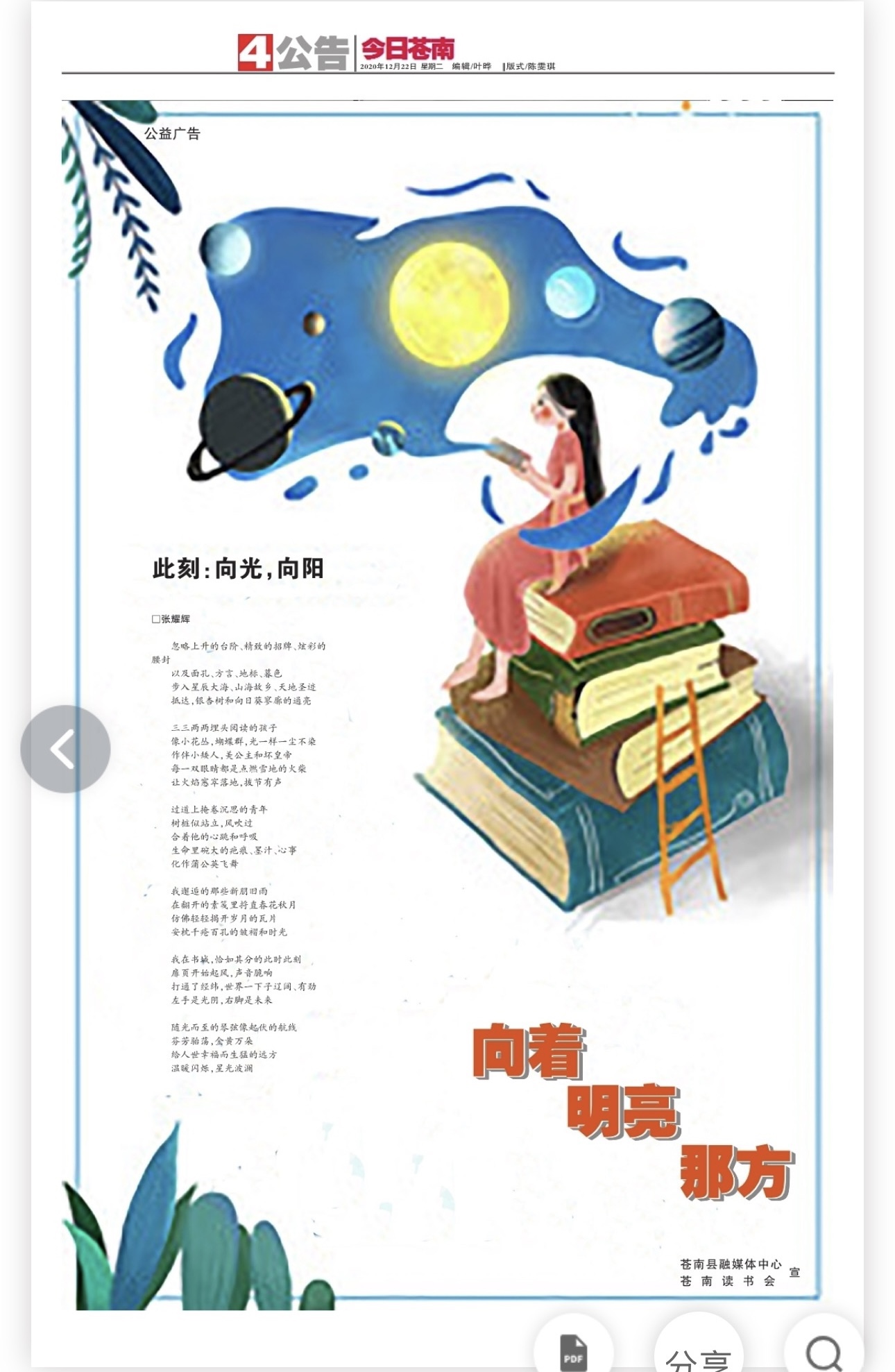 五年前冬至,《今日苍南》把整个版面凝成一首诗的摇篮,那是诗歌与诗人的“高光时刻”。一首写给苍南书城的小诗(中国最美书城之一),如今冬至又至,翻出这份回忆,光芒从字里行间漫出来,温暖身心。[微笑]