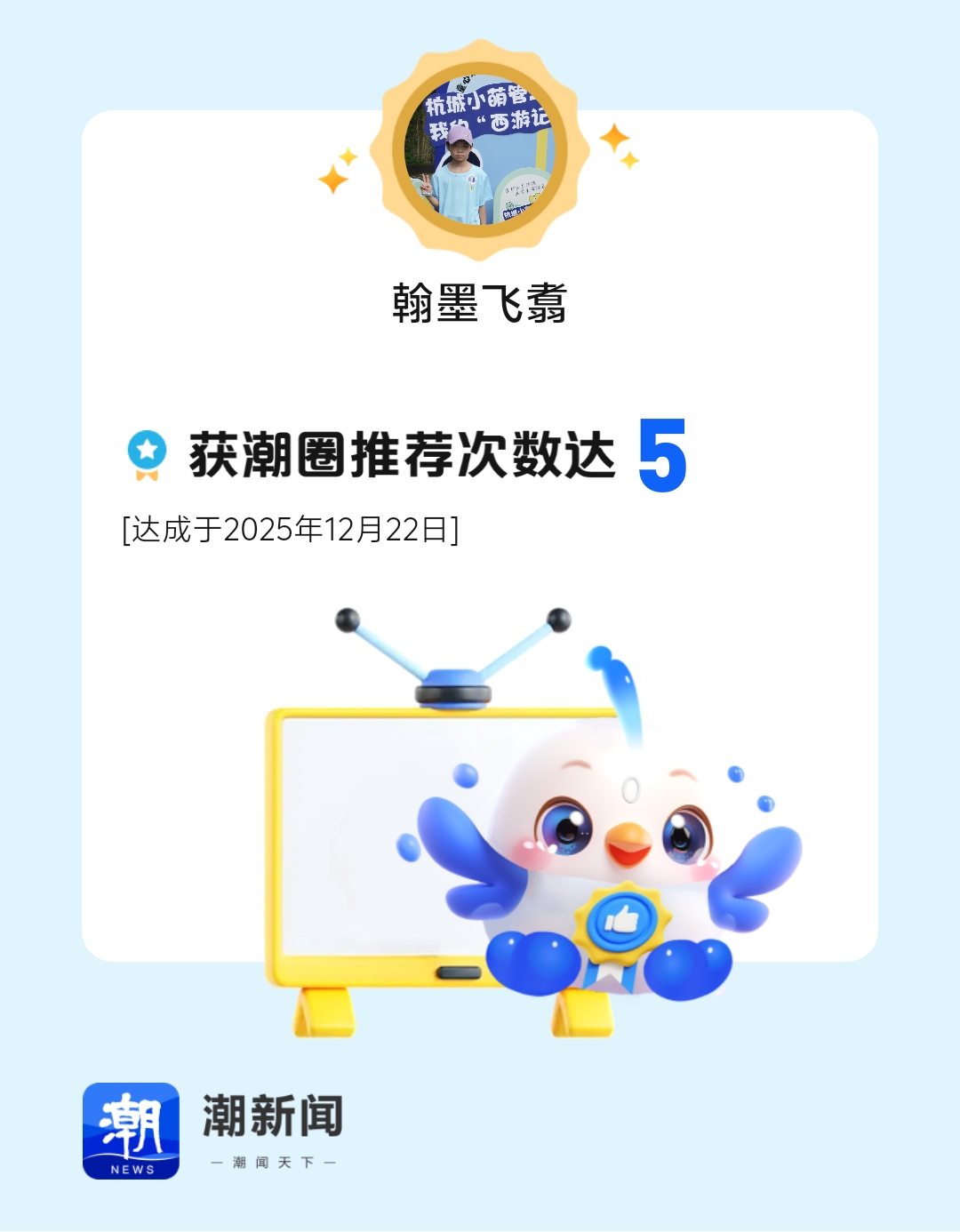 我的作品被潮新闻潮圈频道累计推荐5次,来我的主页看看吧!