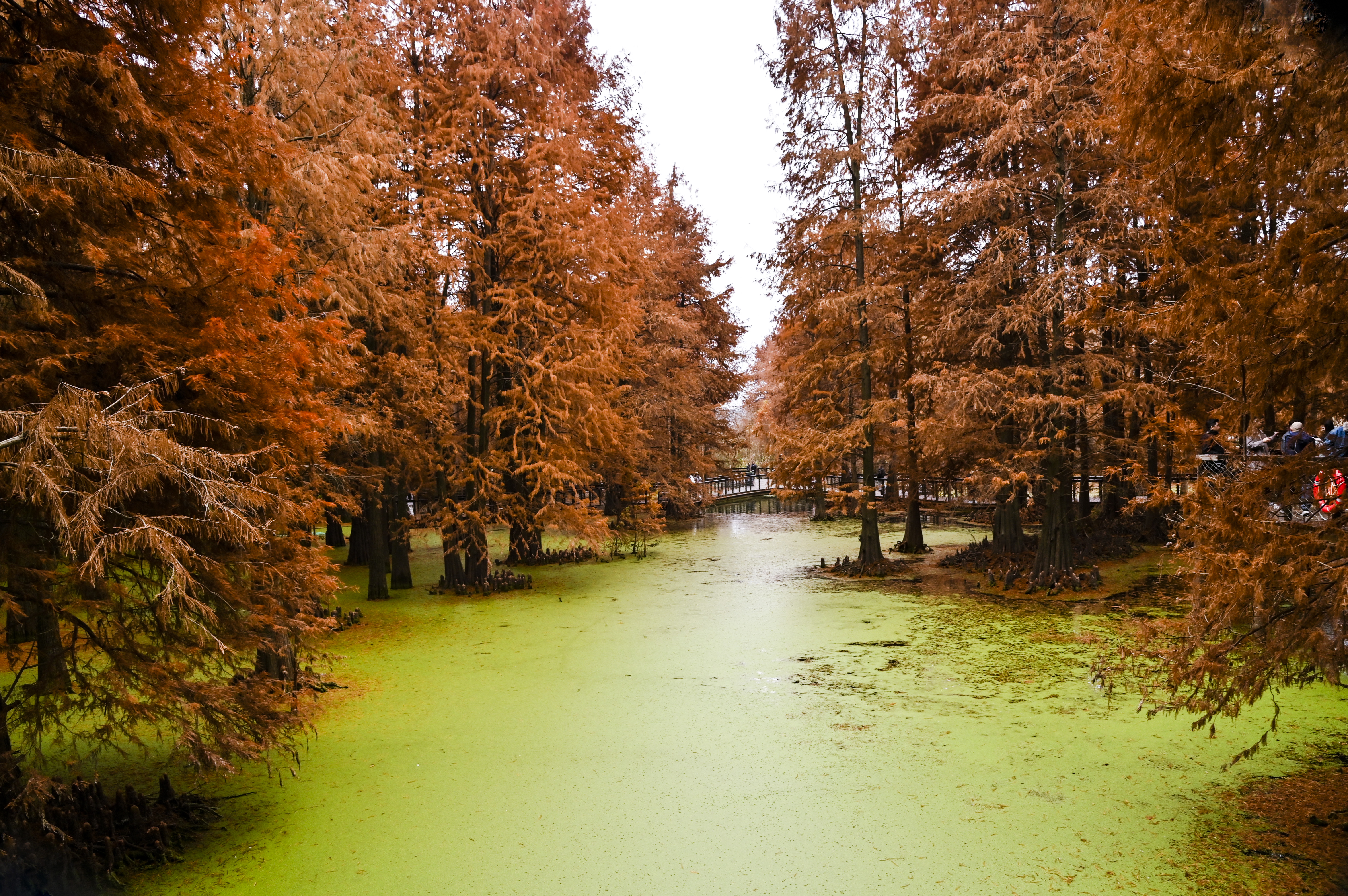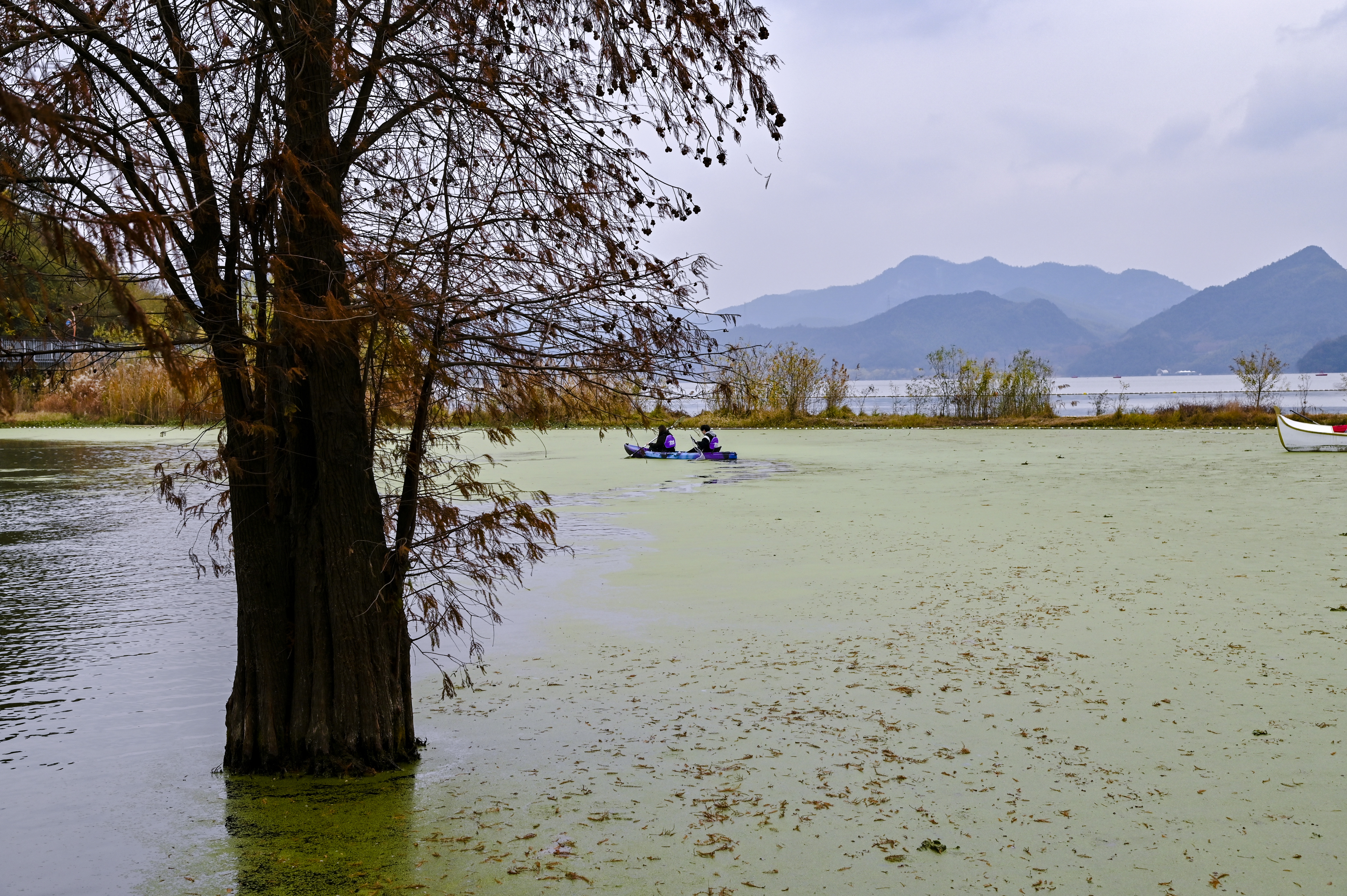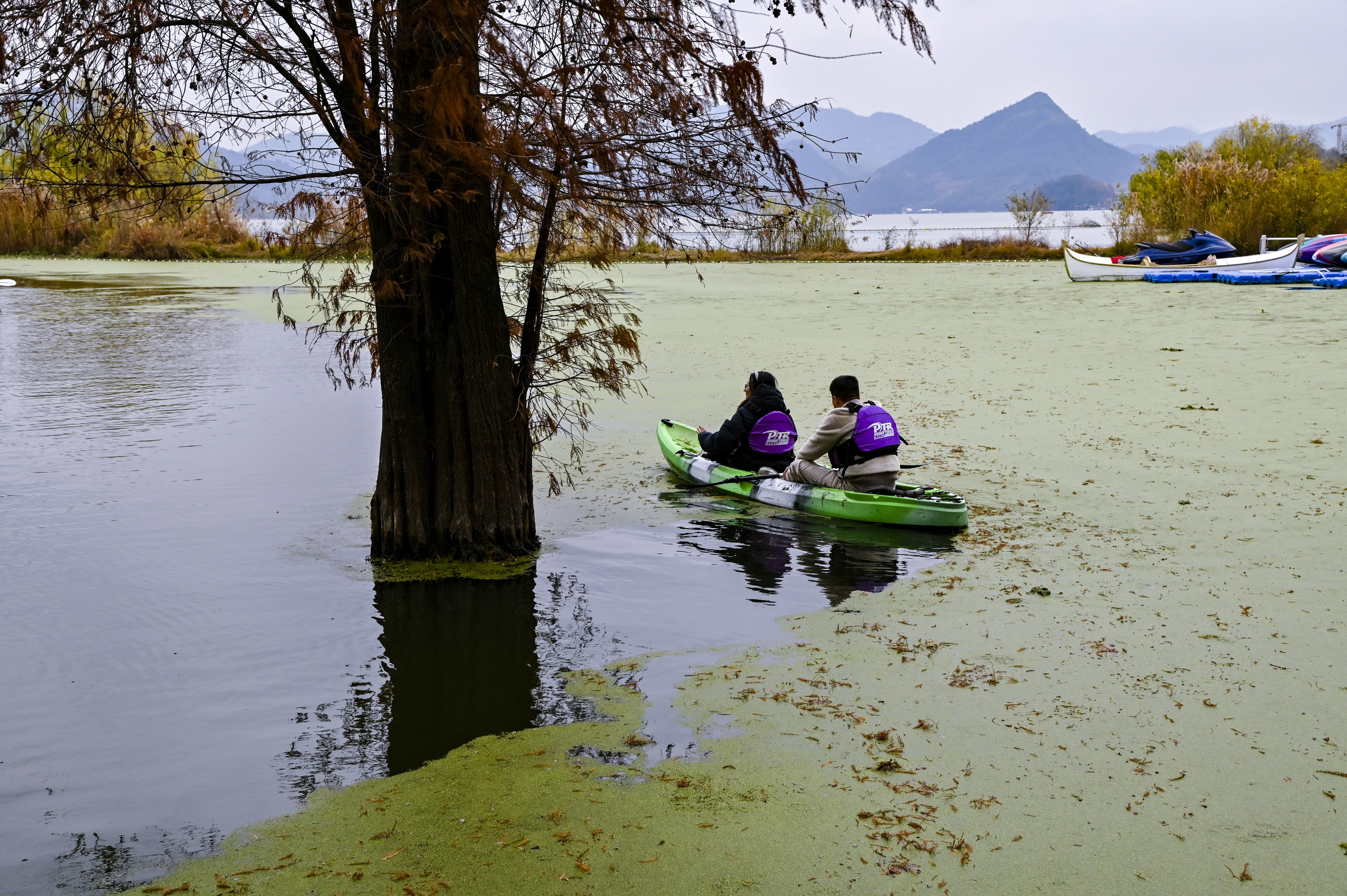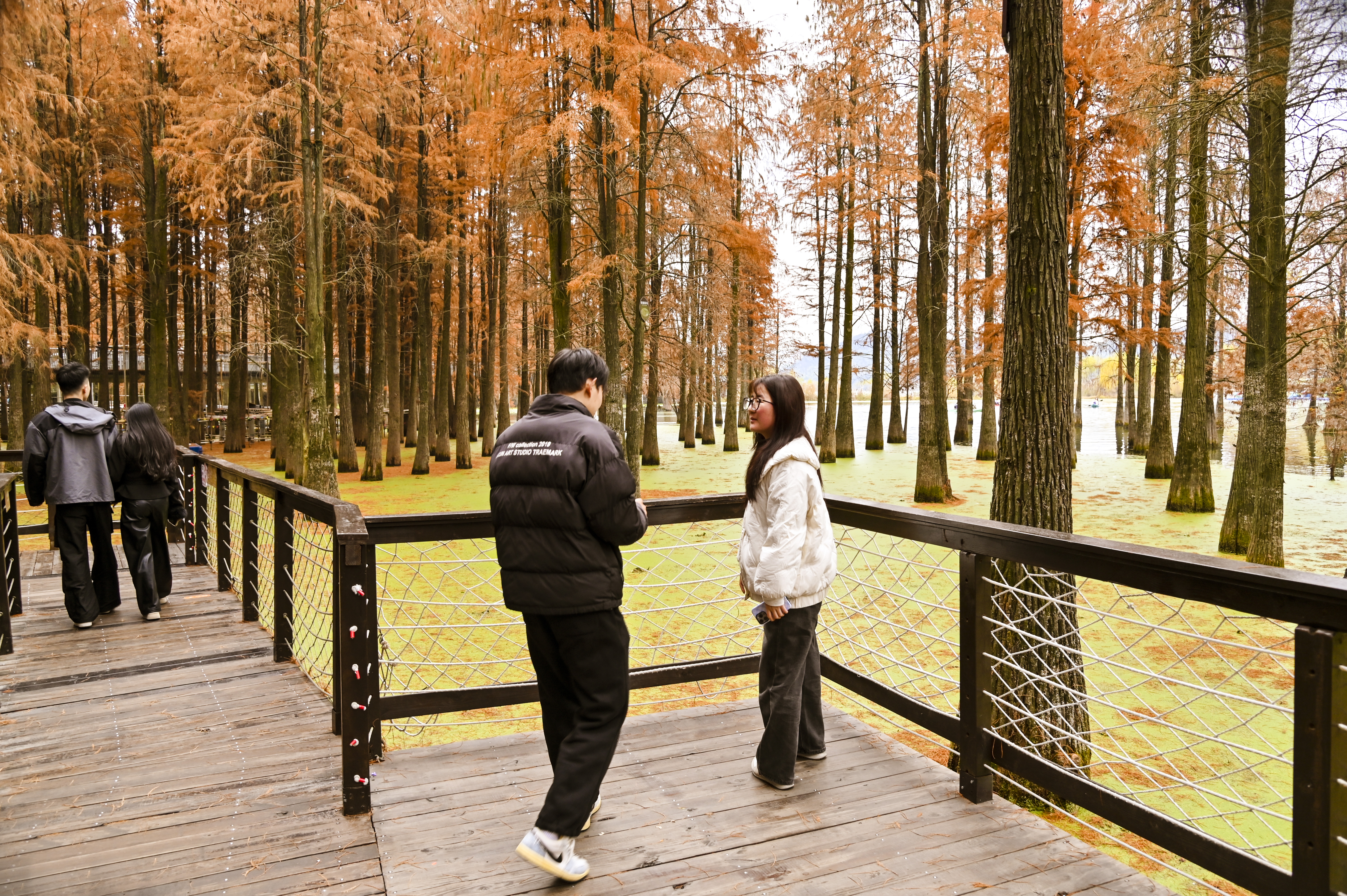 青山湖水上森林公园,红羽绿萍划船🚣🏻♀️美女,点缀密林远近景,湖光山色映红叶,穿行其间不亦乐乎