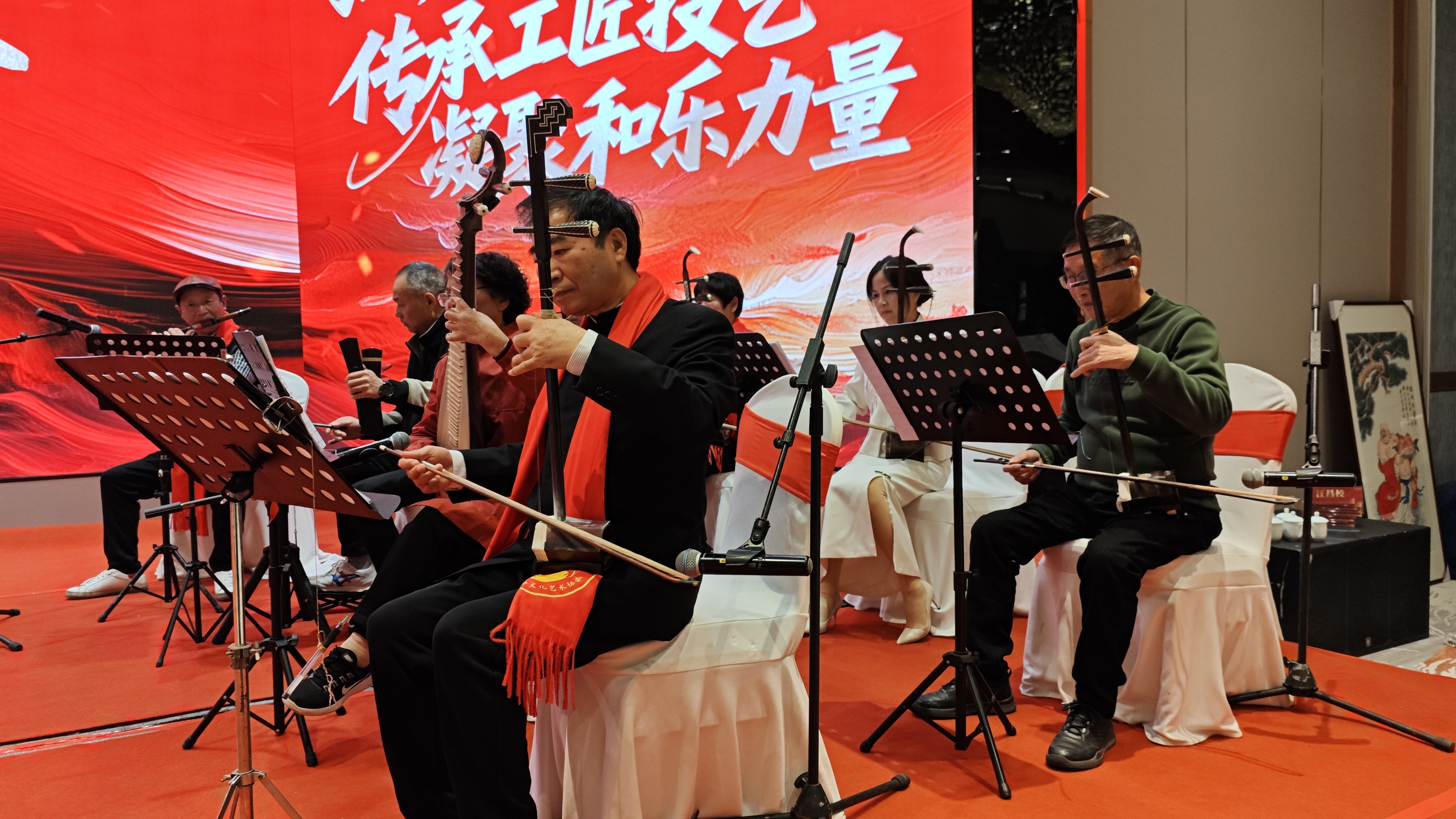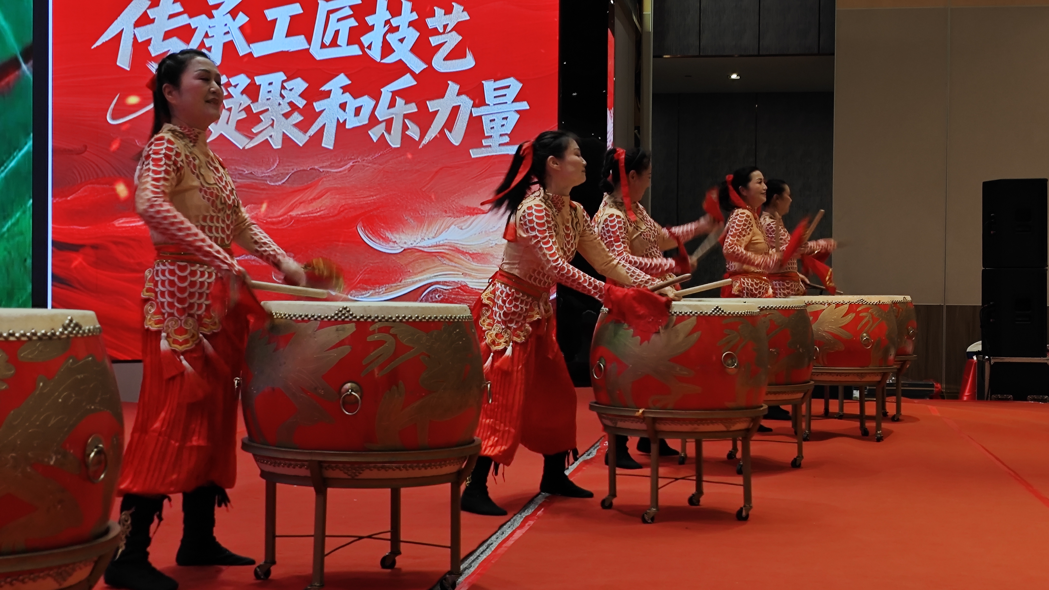 “慈行•匠心•和乐” 奉化区弥勒文化艺术 、工艺美术行业协会2026迎春晚会圆满落幕! 马宜奋徐春妃 12月21日晚,奉化开元名庭嘉元壹号酒店灯火璀璨、鼓乐喧天,“慈行•匠心•和乐”奉化区弥勒文化艺术协会、工艺美术行业协会2026迎春晚会在此圆满落幕。近200名会员代表与社会各界嘉宾欢聚一堂,以鼓声叩春,以歌舞寄愿,在弥勒大爱与匠心温度中迎来2026年新春。 鼓槌翻飞,鼓点如雷。晚会在中华大鼓《好运来》的昂扬节奏中震撼启幕。奉化区布袋弥勒文化艺术协会、工艺美术行业协会会长汪昌校等协会领导登台致辞,回顾一年硕果,展望新年愿景,一句“让匠心与慈行同行,让和乐与时代共鸣”点燃全场热情。 随后,精品节目轮番登场:舞蹈《和乐大同》以曼妙身姿演绎“和合共生”的弥勒精神;民俗《采茶舞》跳出奉化山水的灵秀;歌曲《同愿同行》《欢聚一堂》唱出携手共进的深情;越剧《十八相送》《金玉良缘》低吟浅唱,余音绕梁;二胡独奏《赛马》疾弦如飞,让观众仿佛置身草原;书法大师更现场挥毫,笔走龙蛇,掌声不断。台下闪光灯与喝彩声交织,热浪一浪高过一浪。 晚会期间特别设置的多轮抽奖把气氛一次次推向顶点。奖项名称巧妙嵌入弥勒文化与工艺美术元素……每一份奖品均由协会精心择选,既实用更寓意深远。幸运会员登台领奖,台下手机镜头林立,欢呼声、掌声此起彼伏,温情与惊喜在空气中流动。 “这不仅是一场年会,更像一次回家。” 会员们纷纷感慨。短短两小时,会员们以鼓为号、以舞为诗、以奖为礼,共叙一年辛劳,共绘新年宏愿,充分彰显了协会大家庭的凝聚力与向心力。 鼓声渐远,春意渐浓。伴随着全场大合唱《我们走在大路上》的温暖旋律,“慈行•匠心•和乐”2026迎春晚会圆满落幕,而属于奉化区弥勒文化艺术协会与工艺美术行业协会文化的春天,才刚刚启程。