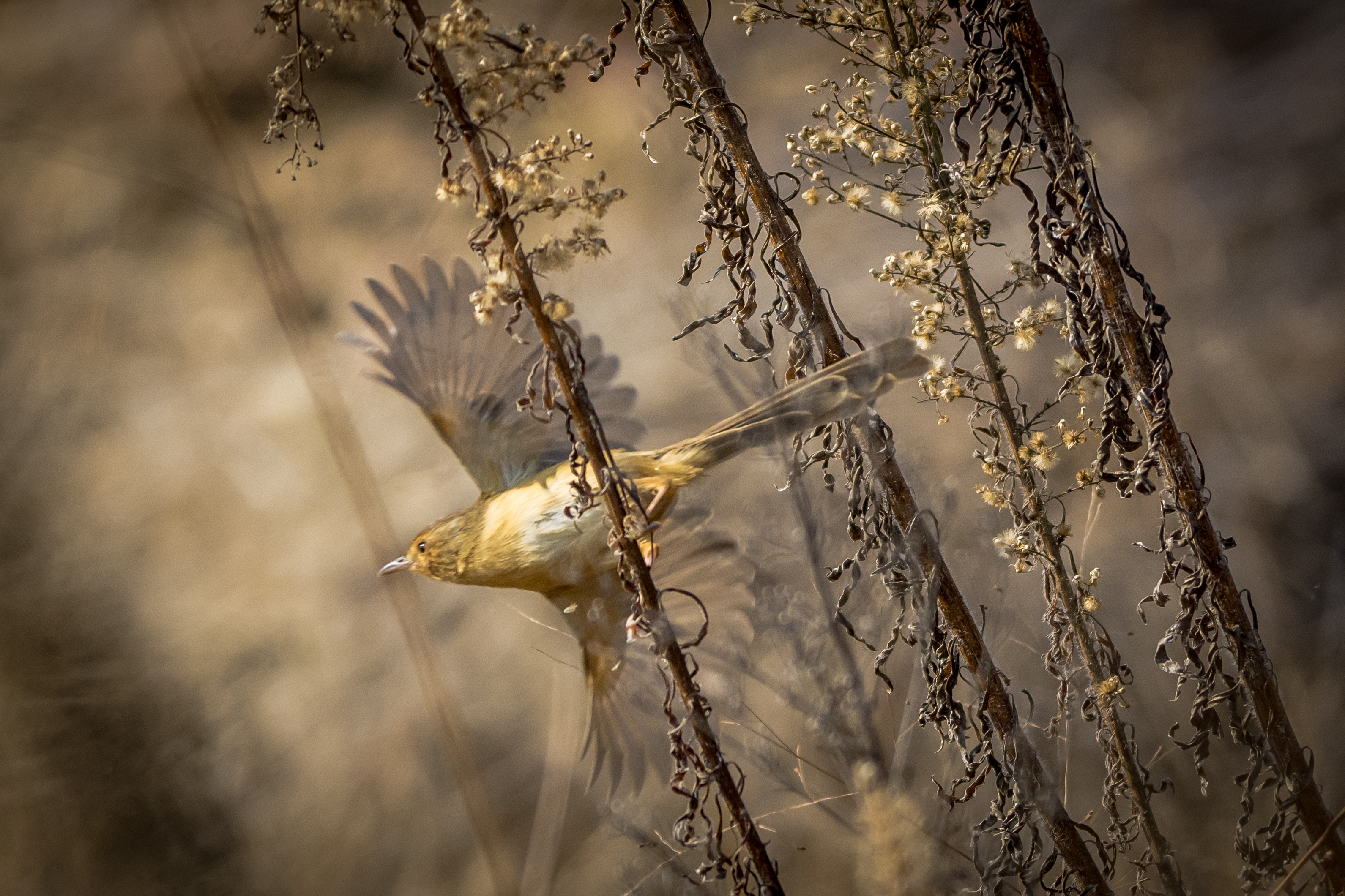 冬枝鹪鹩·枯荣间的舞者 大墅的深冬,万物敛藏。枯枝如墨笔皴擦的线条,缀着残雪般的绒花,却被这赭黄鹪鹩骤然点亮——不是迁徙的信使,是枯荣交界处的独舞。 鹪鹩振翅时,翅尖扫落陈年的花絮,像抖开一捧碎金。爪尖紧扣寒枝的刹那,干枯的藤蔓竟泛起弹性的弧光,仿佛苍老的骨骼里仍藏着春的记忆。浅褐胸腹贴着阳光的温度,尾羽拖曳出流动的金线,在灰褐色调的背景里,洇开一滴未干的釉彩。 这哪里是觅食的仓促?分明是鹪鹩在冬的宣纸上,以羽翼为笔,蘸着残存的暖意,写下的一行小令。待翅影掠过,枯枝仍在轻颤,而那抹灵动,已融入大墅的暮色,成为时光也偷不走的诗行。
