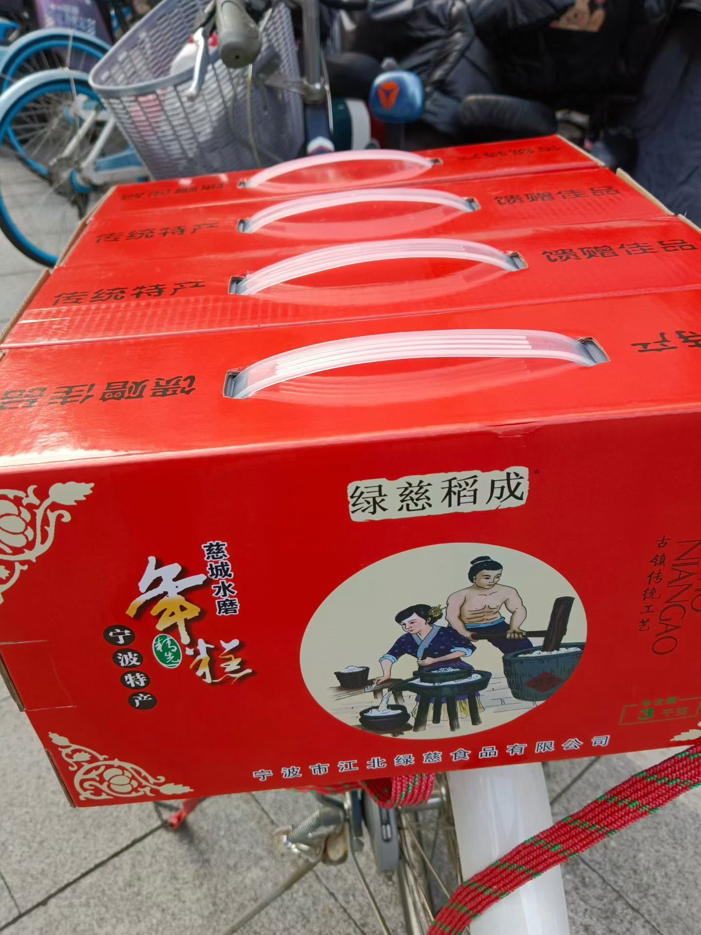 一大早宝国叔叔送年糕给我家。年糕好,年年高[玫瑰]……