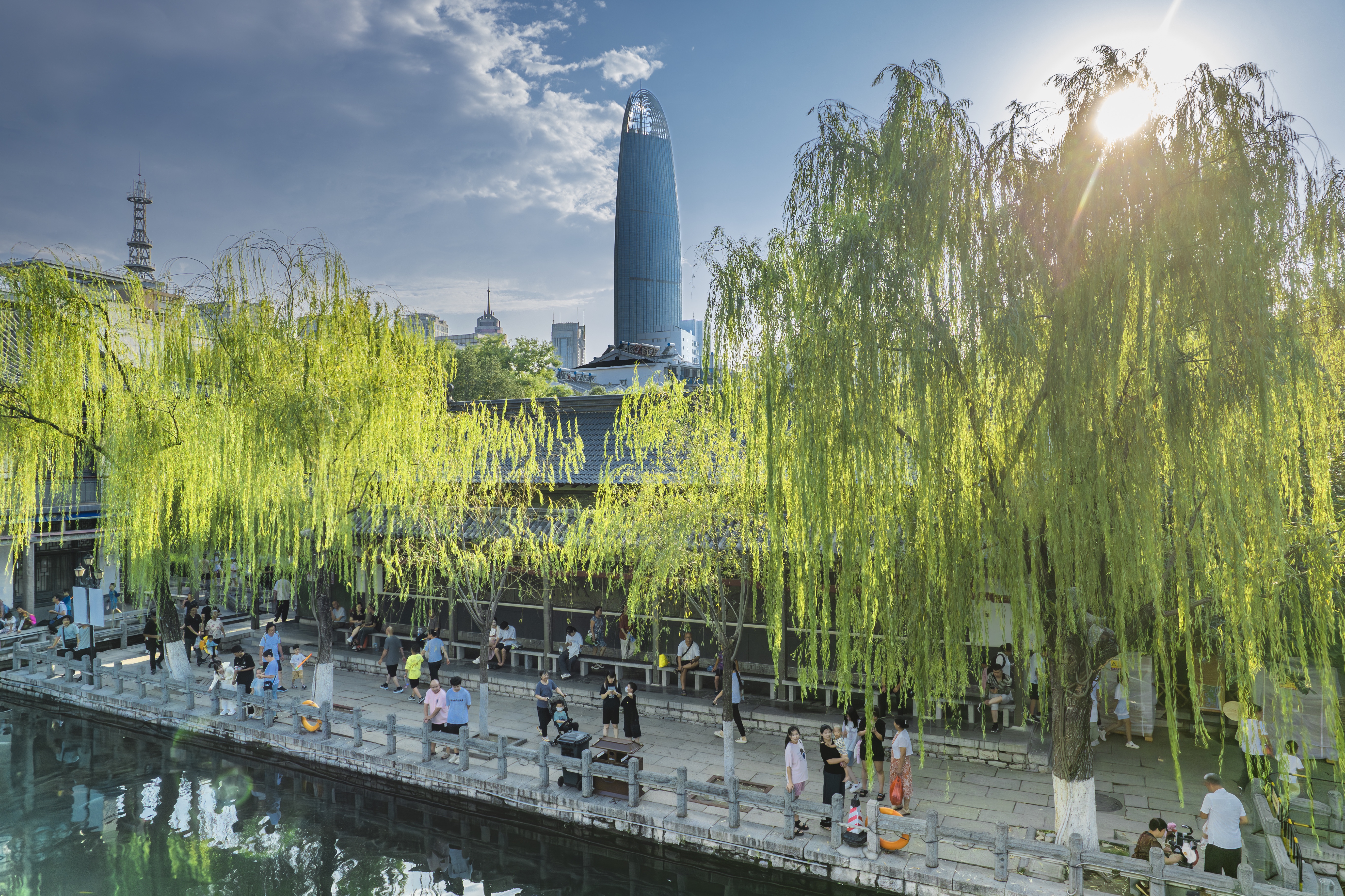 济南五龙潭名士阁与金龙大厦同框 #摄影#