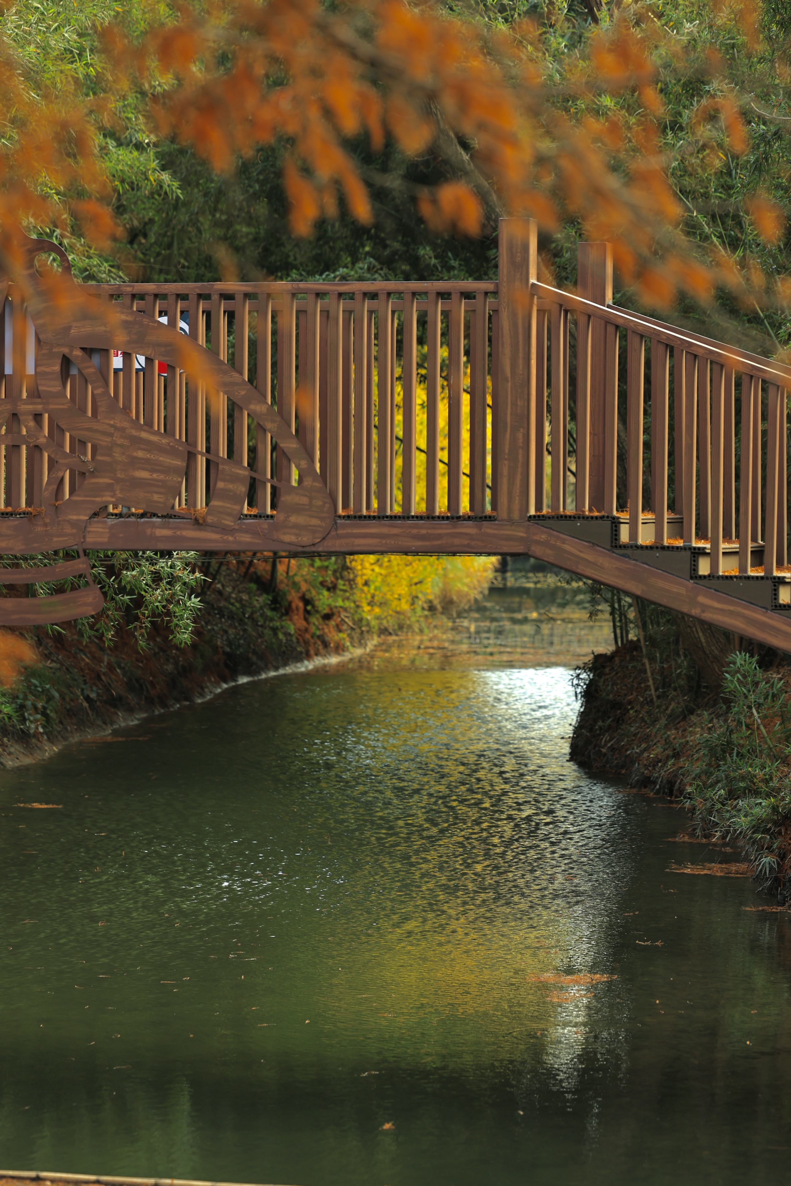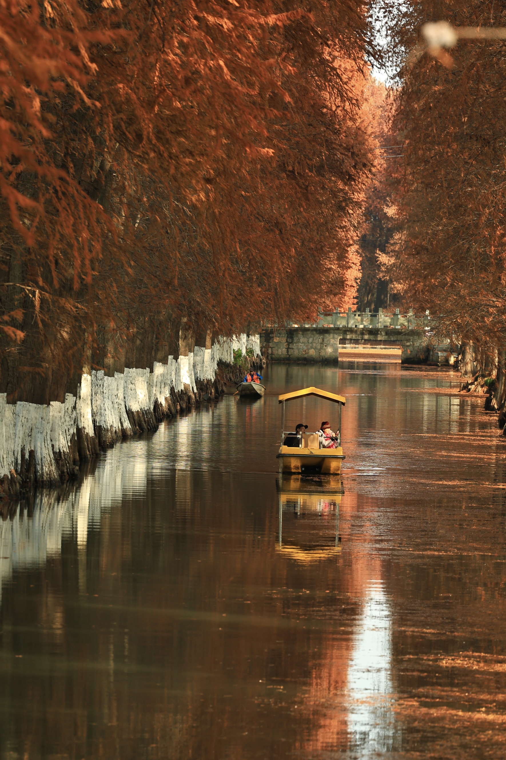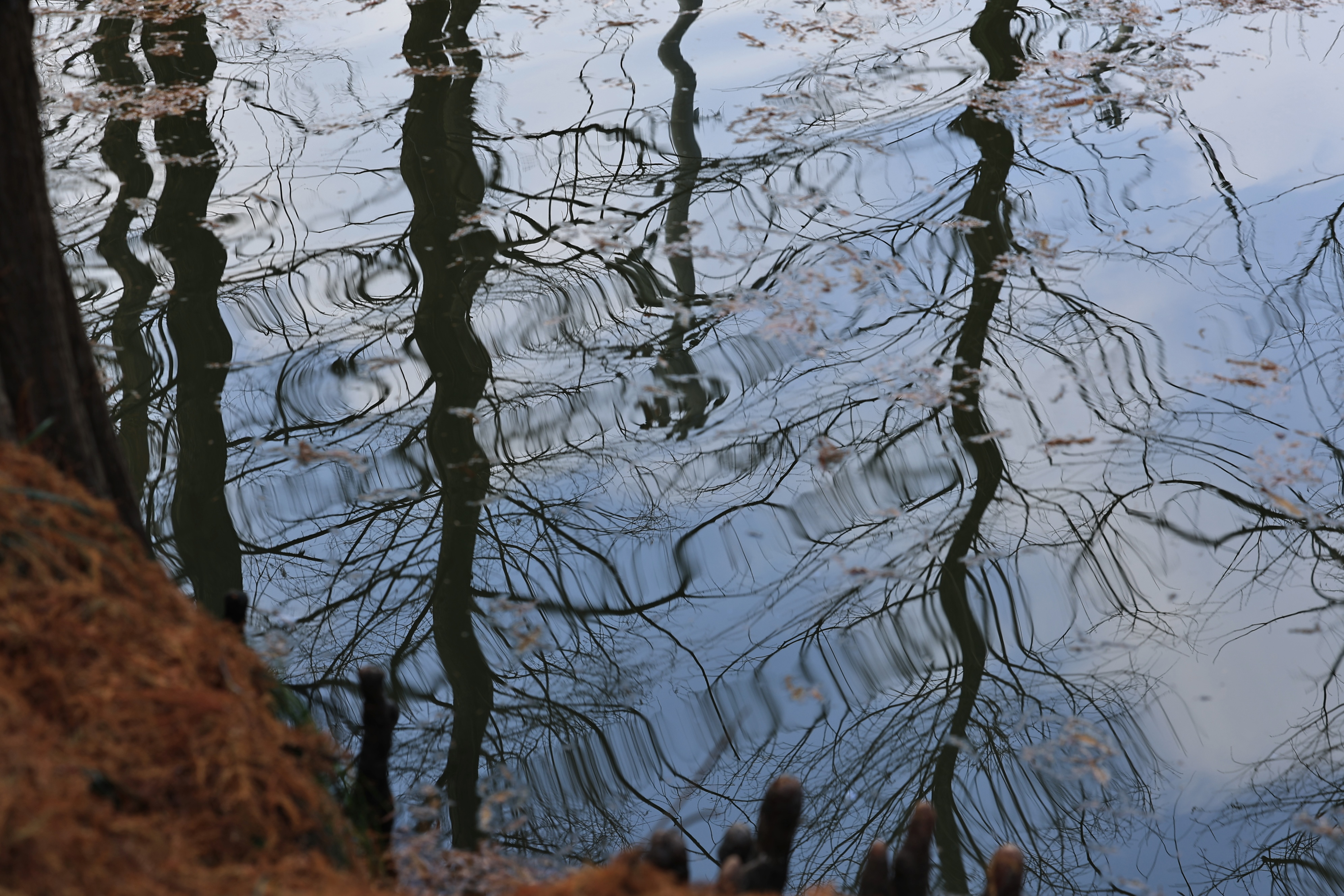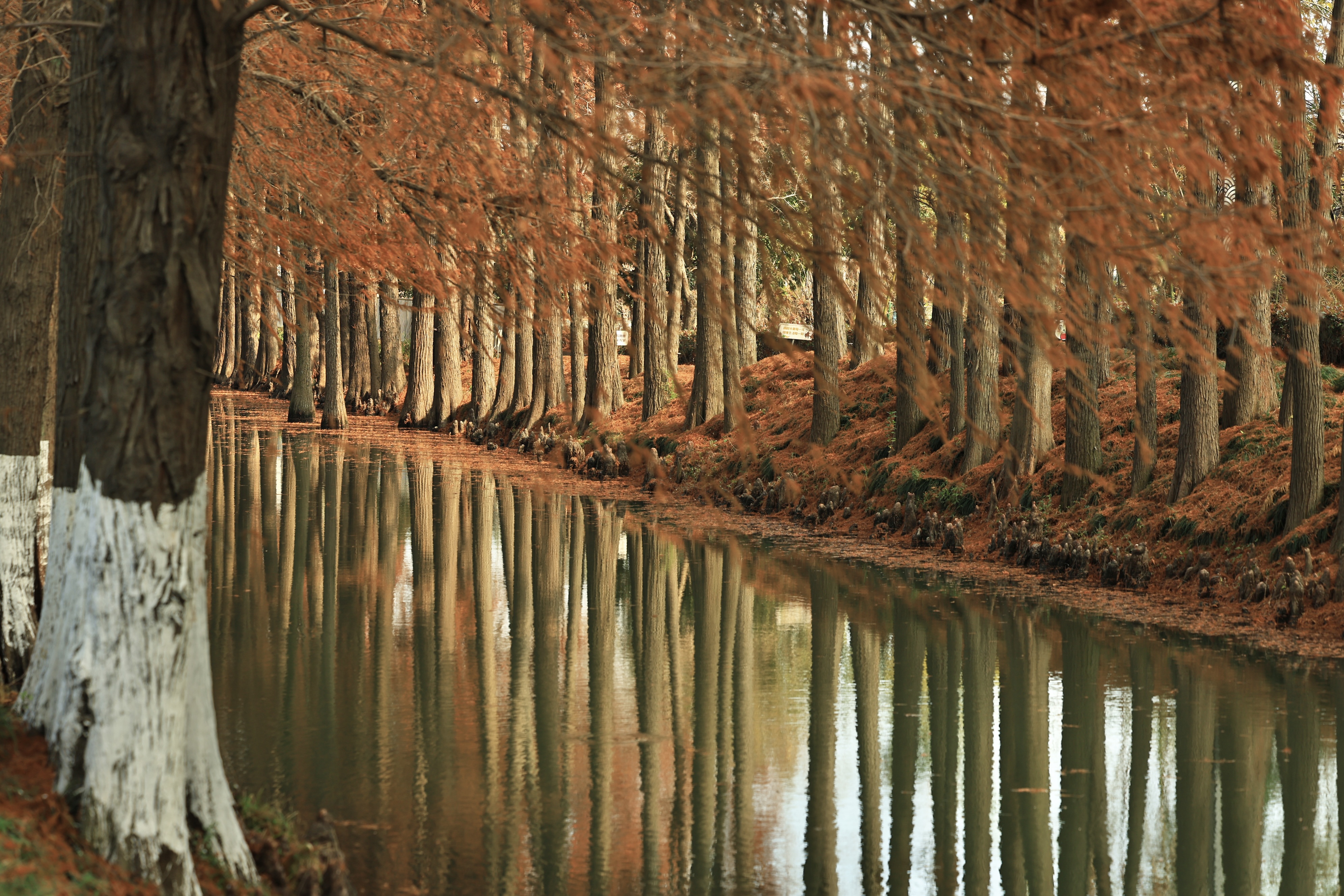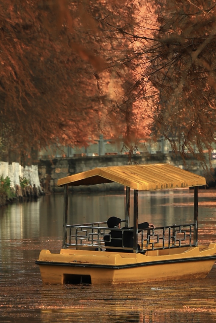 良渚村里的水杉叶,一半在树上,一半在水里。