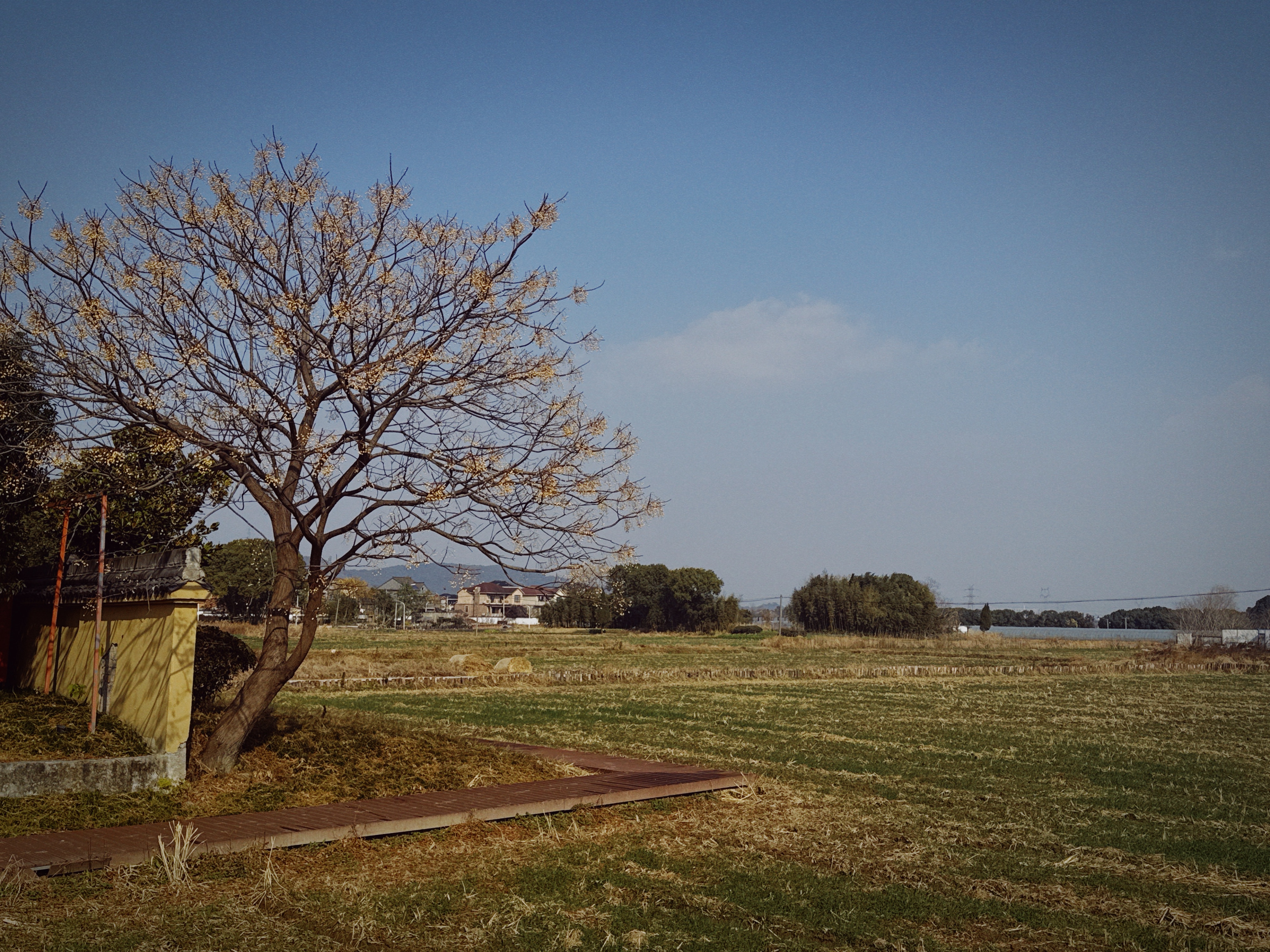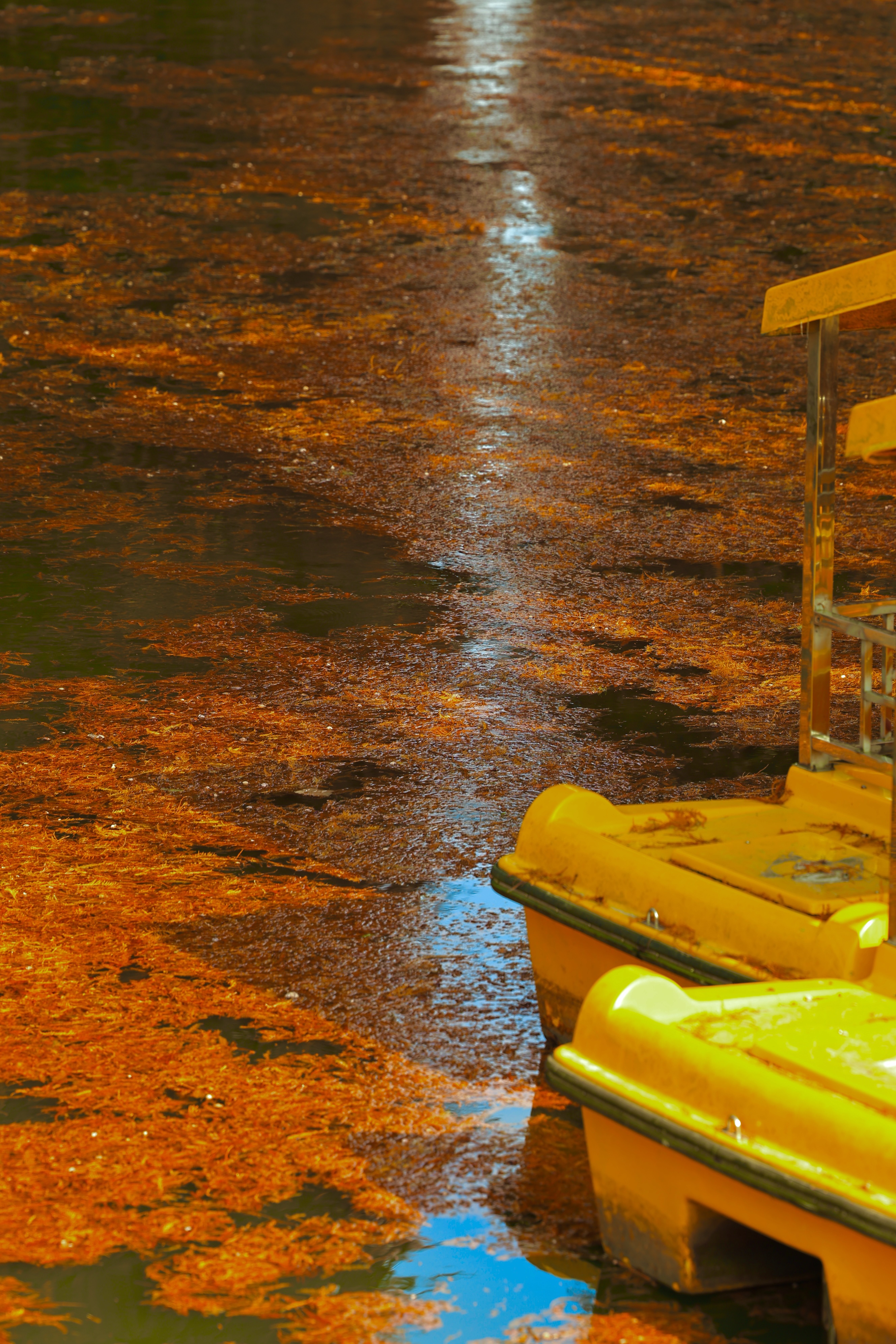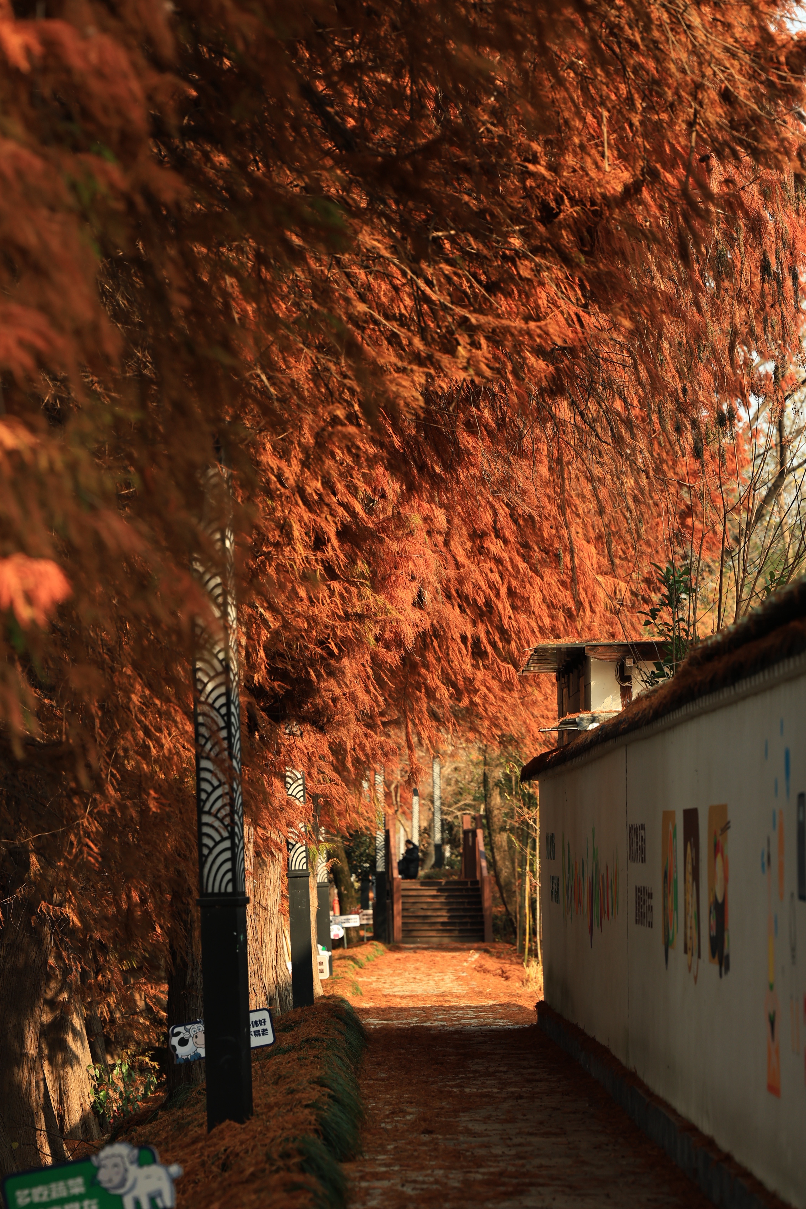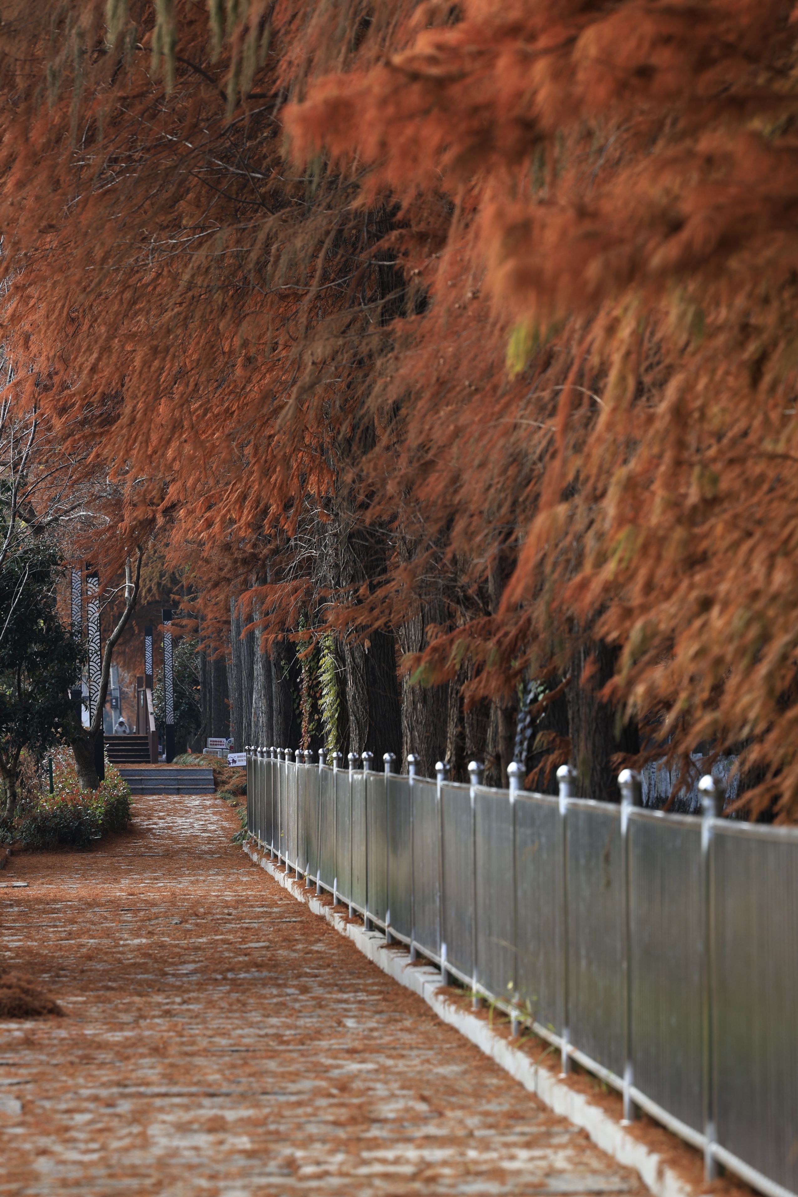 良渚村里的水杉叶,一半在树上,一半在水里。