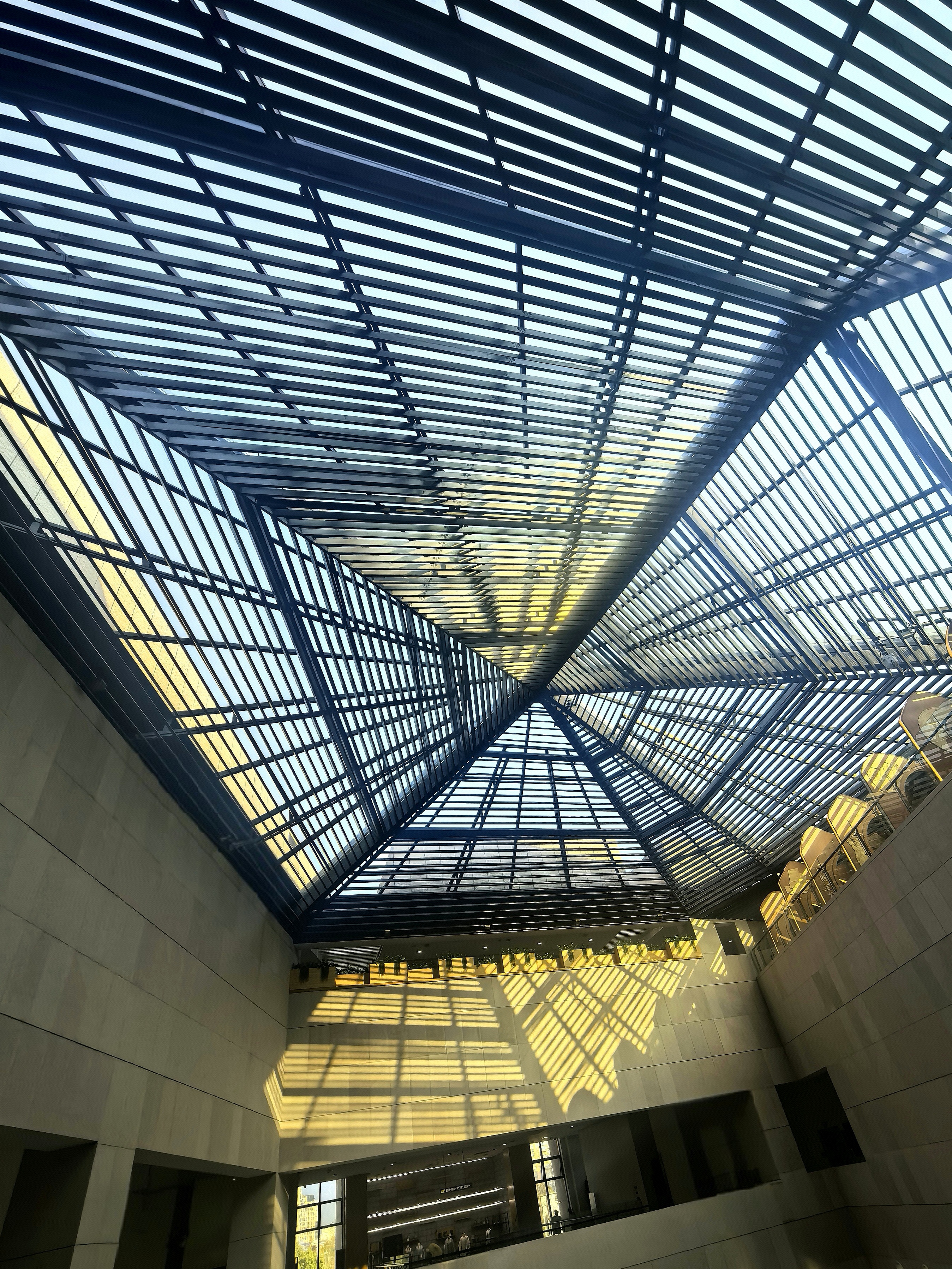 在永宁江潺潺水声的轻抚下,黄岩博物馆宛如一颗温润的明珠,静静镶嵌于江畔。它的设计灵感源自“山水台州”的悠远意境,青灰色的坡屋顶层层叠叠,恰似山间袅袅升腾的岚气,带着几分空灵与飘逸;而那通透的玻璃幕墙,在阳光的映照下,宛如粼粼波光闪烁的江水,灵动而富有生机。整座博物馆总面积约1.6万平方米,规模恰到好处,既有着大气磅礴的格局,又不失细腻温婉的韵味。 这里已然是一座藏满故事的宝库,馆藏文物多达8474件/套,其中珍贵文物就有364件/套。每一件文物都像是一位沉默的历史讲述者,东汉青瓷五联罐,造型古朴独特,仿佛在诉说着那个遥远时代的工艺智慧;北宋青瓷熏炉,散发着温润的光泽,似在轻吟着往昔文人雅士的闲适生活。2020年12月,它凭借着深厚的文化底蕴与独特的魅力,成功入选国家二级博物馆名单,这无疑是对它价值的高度认可。 踏入馆内,仿佛穿越了时空的隧道,历史厅、书画厅、青瓷厅等六大展区有序铺陈开来。展陈空间顺着流畅的参观路线渐次抬升,每一步的迈进,都像是翻开了一页页立体的黄岩文明史,那些尘封在岁月里的故事,一点点在眼前鲜活起来。中庭的采光井宛如一扇通往天际的窗口,将温暖的天光引入馆内,照亮了盘旋而上的展廊。在这柔和的光影交织中,千年文物仿佛被赋予了生命,它们静静地伫立在那里,在光影中轻轻呼吸,与每一位参观者进行着一场跨越时空的对话。