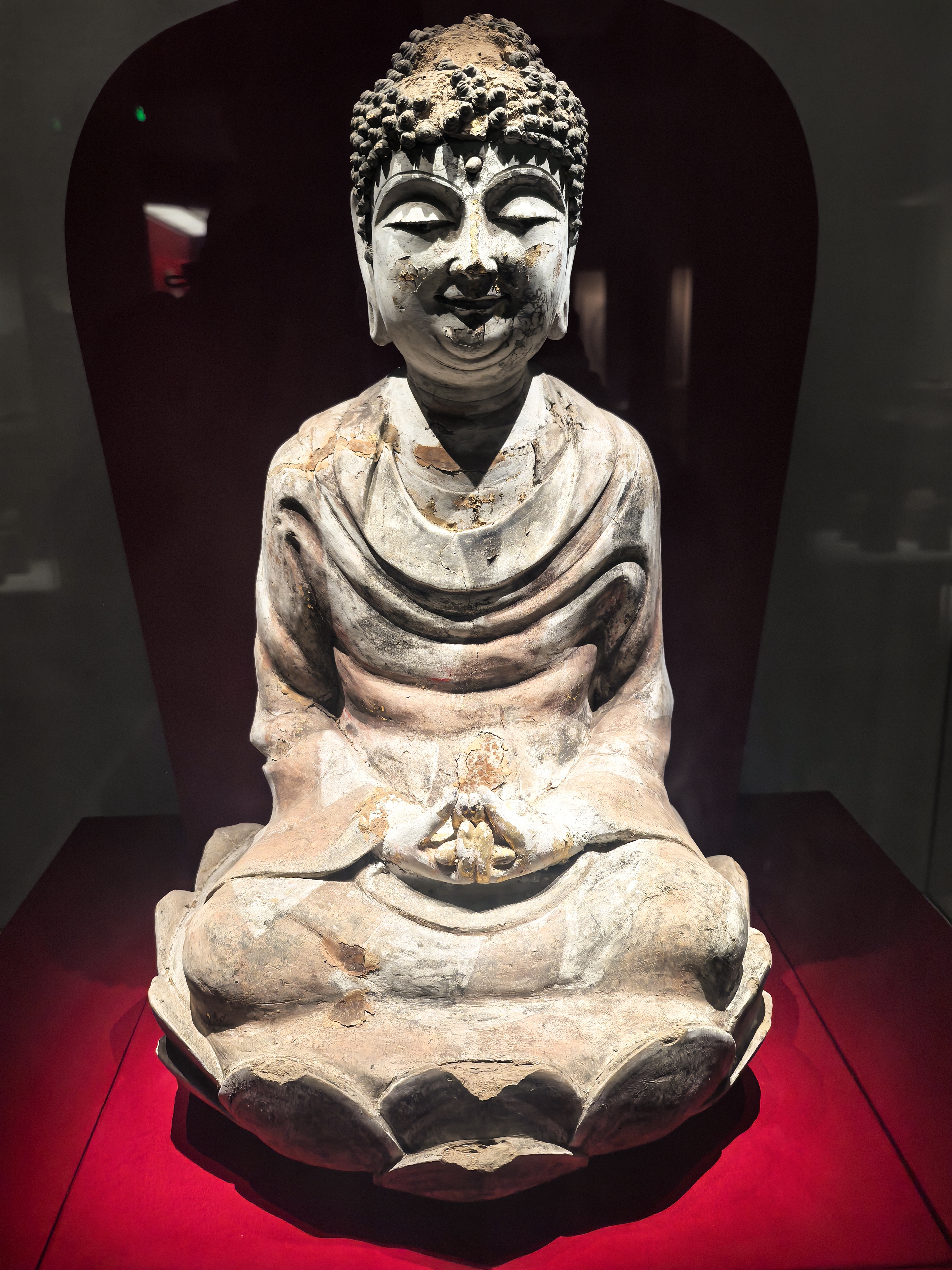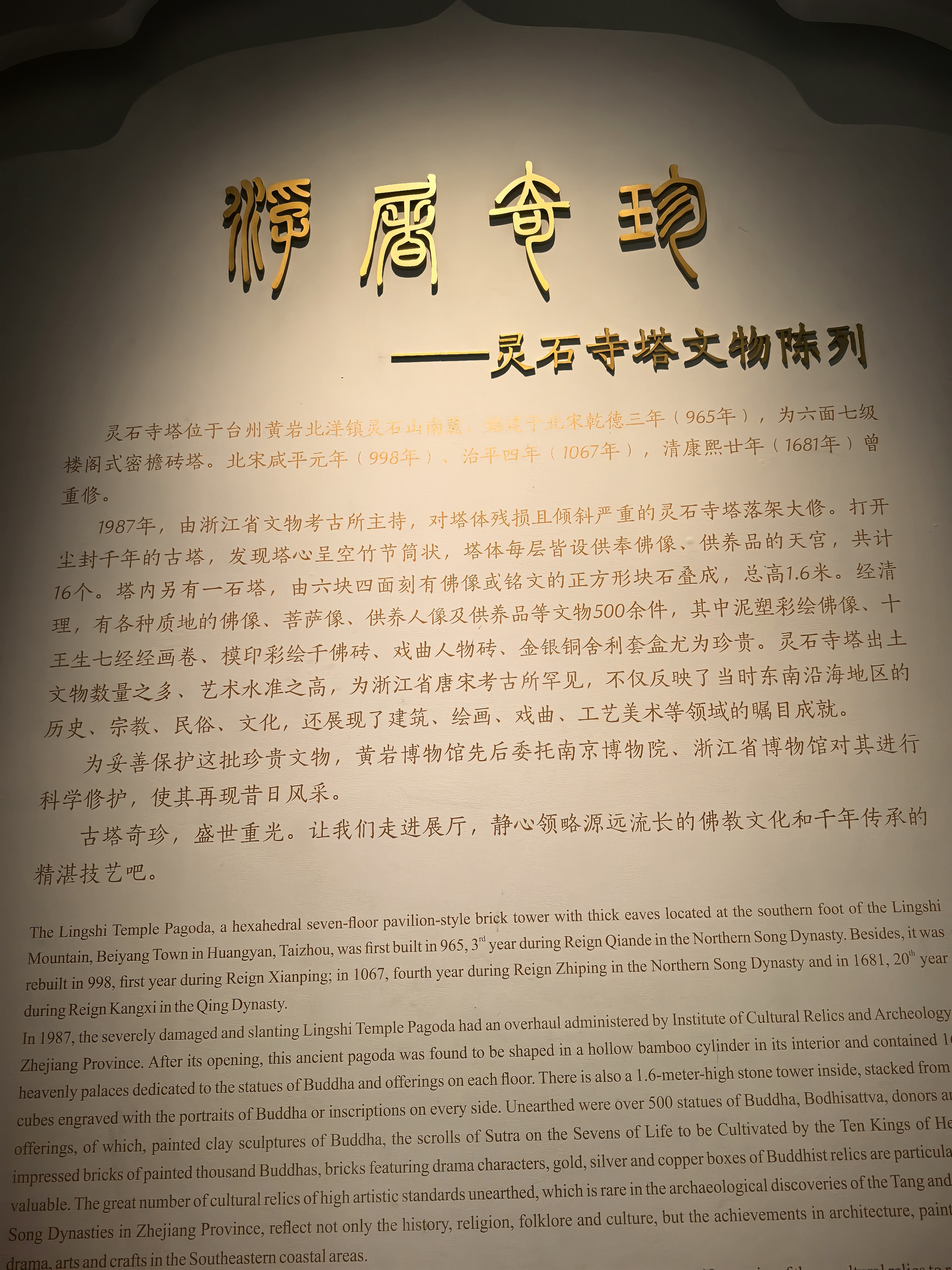 步入黄岩博物馆时光长廊,历史的帷幕缓缓拉开。东汉青瓷五联罐静静伫立,这件被誉为“中国陶瓷界老祖宗”的国宝,用青绿釉色讲述着原始瓷向瓷器过渡的密码。罐身堆塑的蚕、人、狗、熊、鸟,层层叠叠,是东汉先民对天地生灵的朴素信仰。最难得的是,这件诞生于黄岩窑的器物,在西汉以前多为陶器,而它却以瓷器的身份,敲开了东汉青瓷的大门。 北宋沙埠窑青瓷香炉散发着宋代文人的雅韵。1987年出土于灵石寺塔四层北天宫,这件高19.5厘米的香炉,炉盖以十七组忍冬纹连环构成,镂空、刻花、浮雕技艺并施,内壁墨书"咸平元年"纪年铭文。当香火从叶间逸出,宋人“焚香、挂画、插花、品茗”的四大雅事便在这青黄釉色中徐徐展开。这是宋代青瓷的巅峰之作,也是“千峰翠色”的秘色记忆。 南宋景德镇窑影青釉印花粉盒,盖面缠枝牡丹纹流转生姿。釉色莹润如冰,薄如纸,声如磬,在光线下剔透通明,釉里藏花。这种"雨过天青色"的影青瓷,是宋代景德镇的独创,白中闪青,青中带白,将宋人“素肌玉骨”的审美追求发挥到极致。粉盒虽小,却承载着宋代女性“对镜贴花黄”的精致生活。 南宋鎏金铜龙昂首挺立,鳞爪分明,金辉犹存。这件曾为黄岩文庙礼器的铜龙,是宋代皇家气韵的象征。龙首高昂,身姿矫健,每一片鳞片都闪烁着工匠的匠心独运。在宋代金石学兴起的背景下,这样的仿古铜器既是祭祀礼器,也是文人雅士书斋中的清雅摆设,将庙堂重器化为生活情趣。 恒温展柜里,赵伯澐墓出土的丝绸服饰静静诉说着南宋的风雅。2016年5月,这座800年前的墓葬重见天日,出土的76件丝绸文物被誉为“宋服之冠”,它们不仅是浙江从丝绸之源走向丝绸之府的重要见证,更完整展现了南宋宗室成员的礼仪性服饰及日常穿着。 最令人惊叹的是交领莲花纹亮地纱袍和对襟双蝶串枝菊花纹绫衫。纱袍以轻薄通透的纱罗制成,通体暗花是莲花纹,北宋理学家周敦颐《爱莲说》中“出淤泥而不染”的意境,在这件纱袍上得到了完美诠释。 这些文物从东汉到南宋,跨越千年,串联起黄岩“小邹鲁”的文脉传承。它们不仅是历史的见证,更是宋韵文化在黄岩这片土地上的生动注脚,让后人得以窥见那个风雅时代的精致与辉煌。