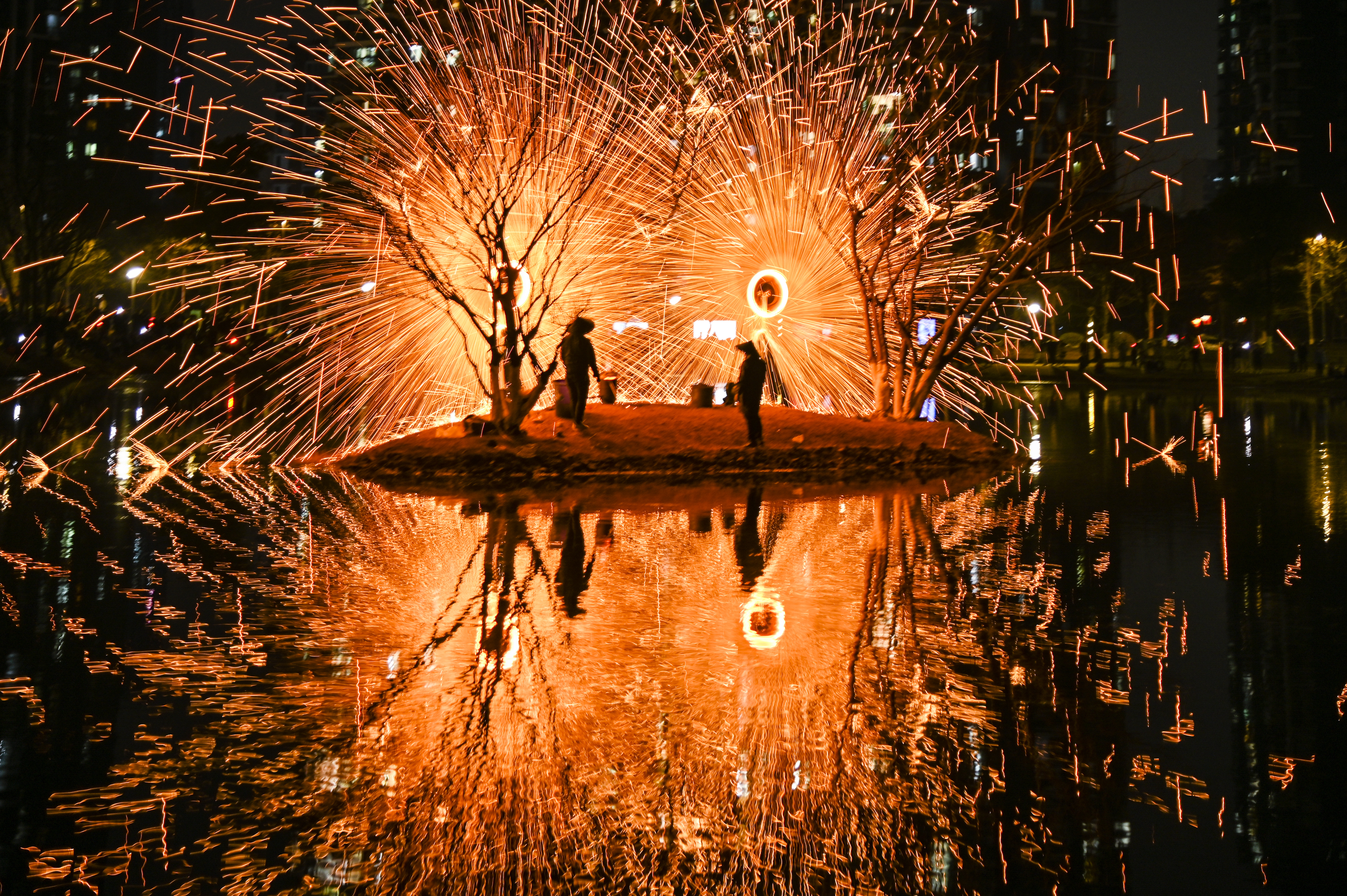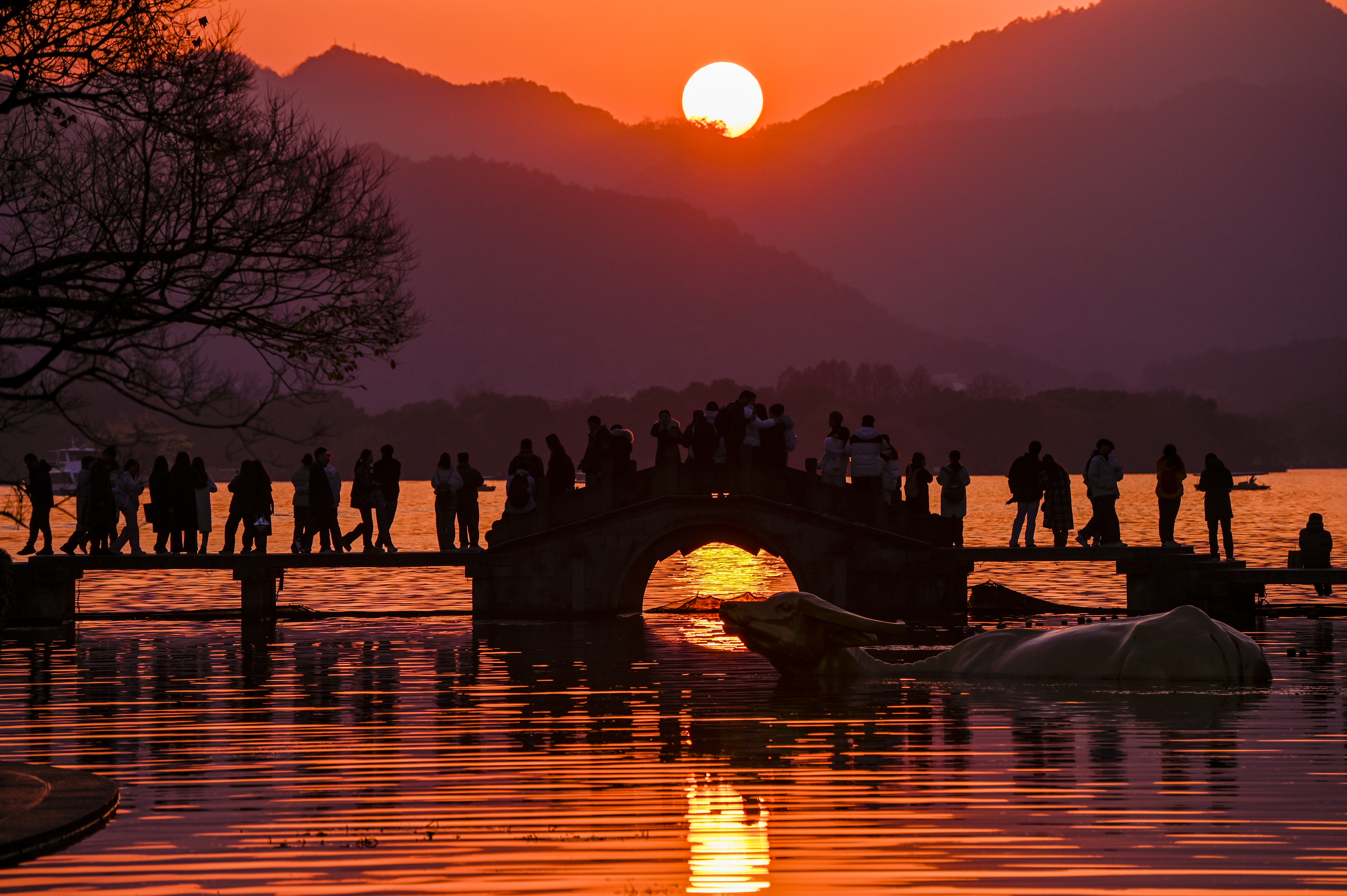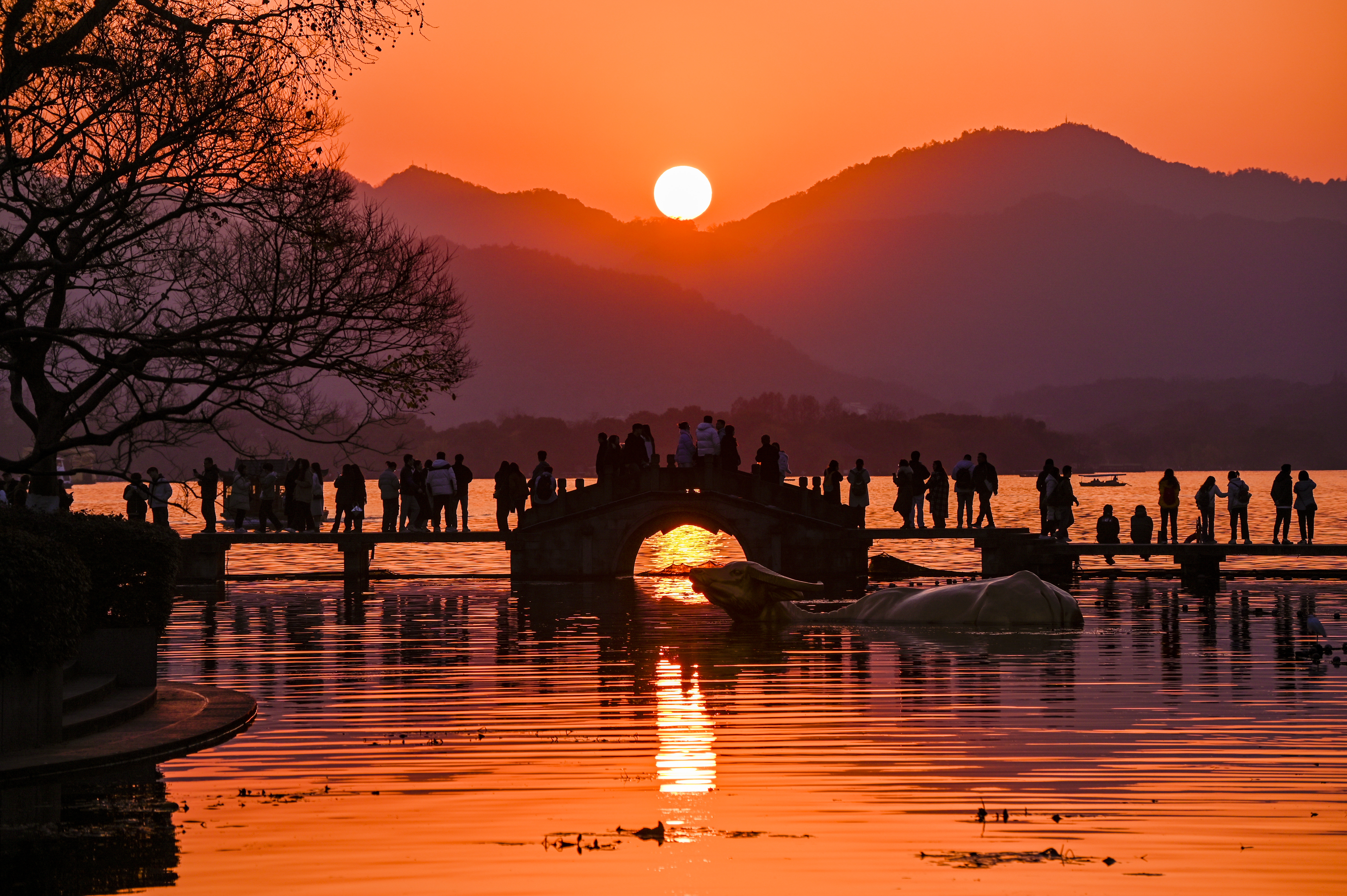 2024年最后的落日开启新年好!新年的日出迎接新年快乐!铁花飞舞彩灯迎新年,国泰民安万家灯火灿烂,融入自然黛色参天,梅花把春报,静待春暖花开。