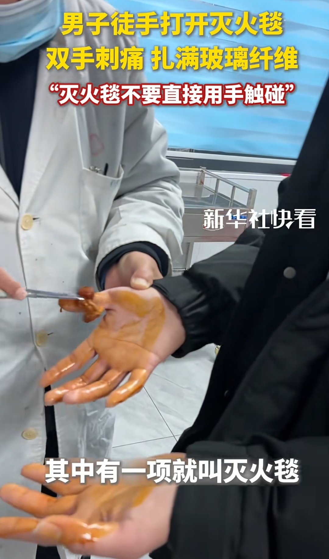 第一次知道,原来灭火毯不能直接用手拿,上面都是玻璃纤维,会扎伤手✋
