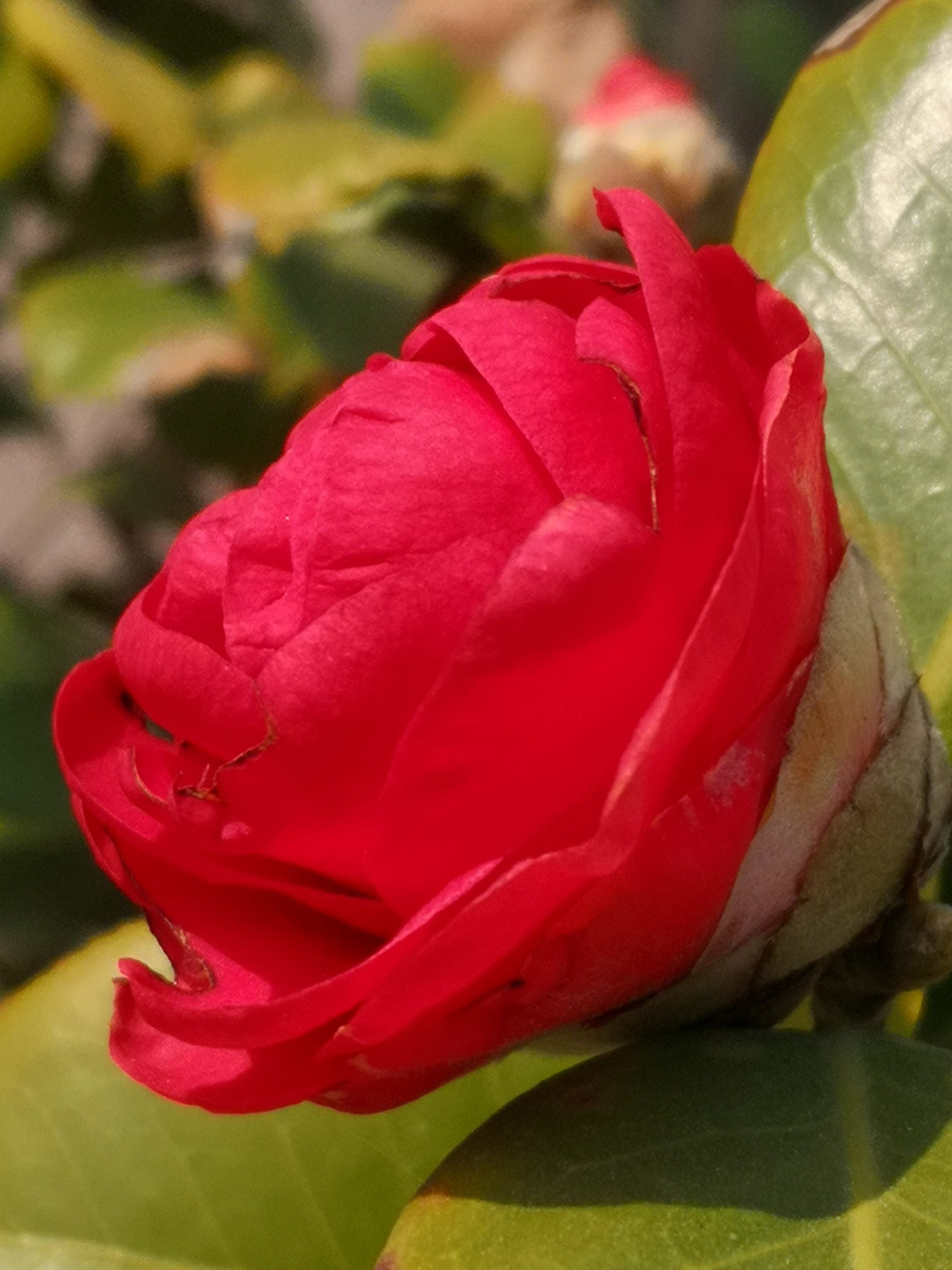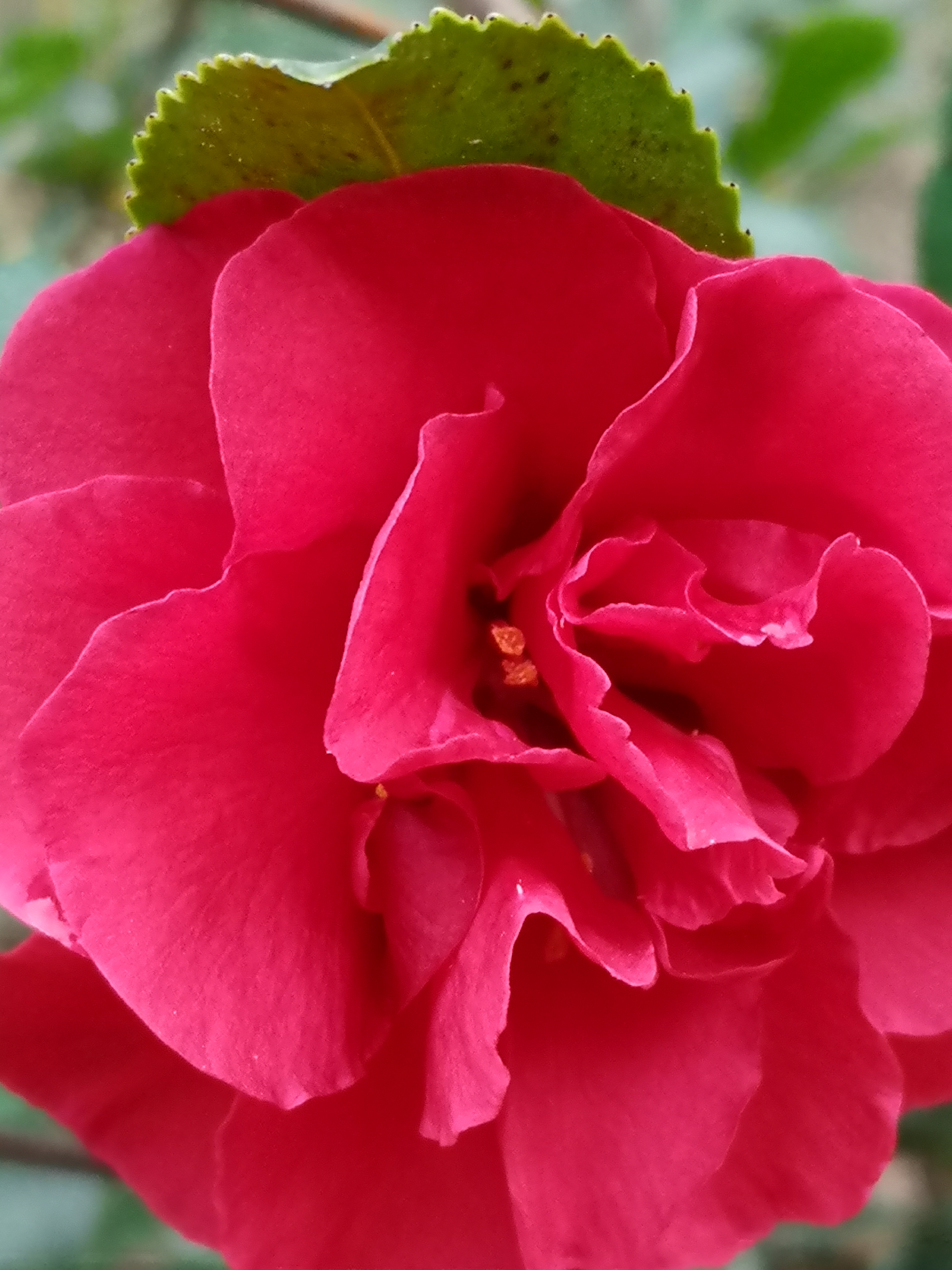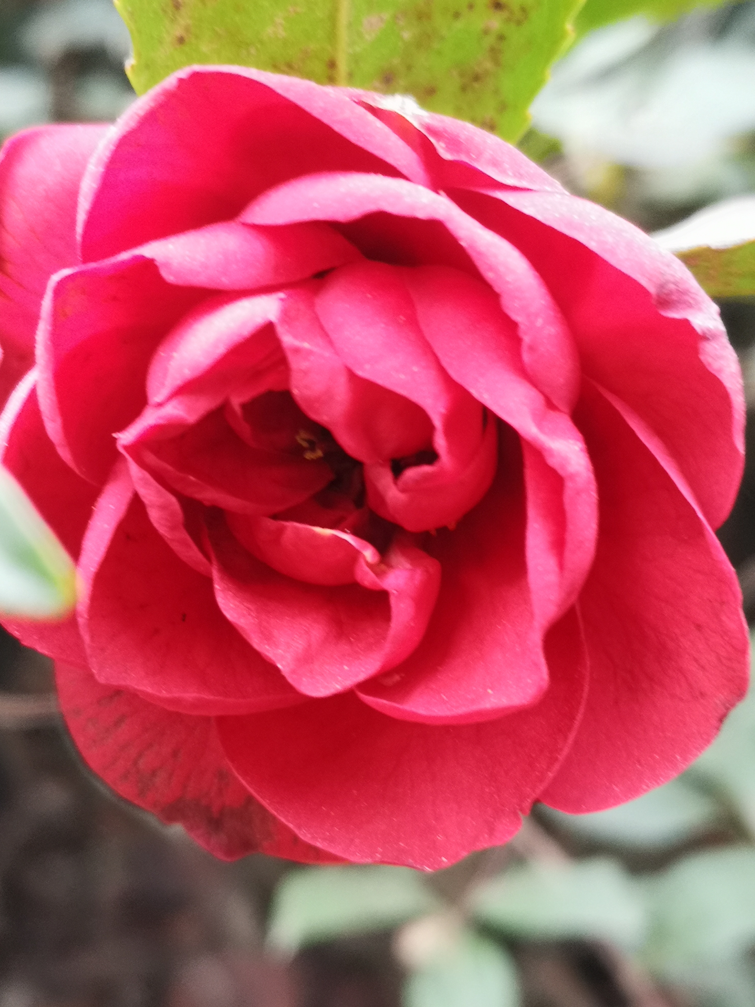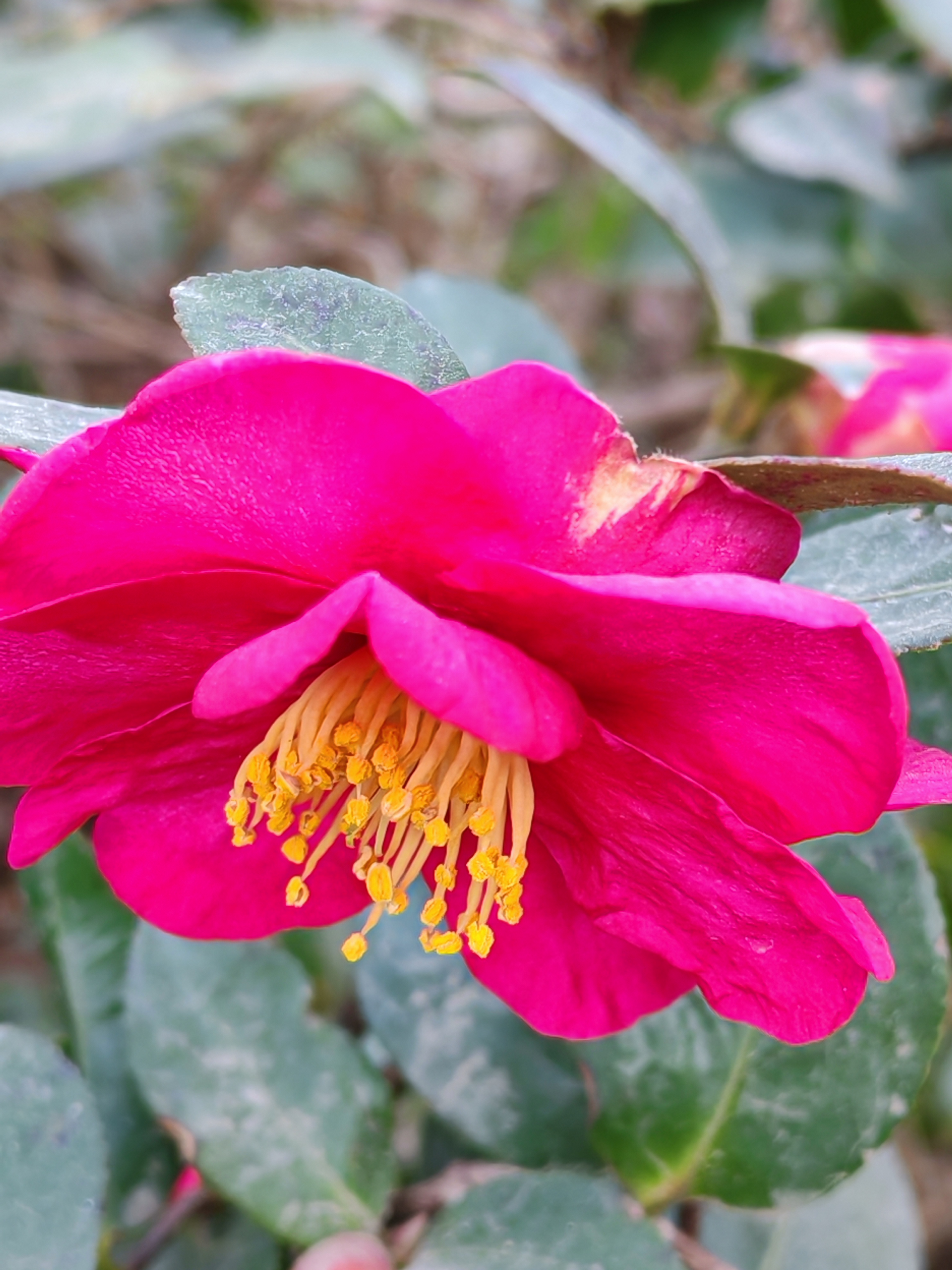 山茶花 冬月千山万壑眠, 疏枝斜影落溪闲; 绿林层暖疑春色, 无助蜂蝶傲雪颜。