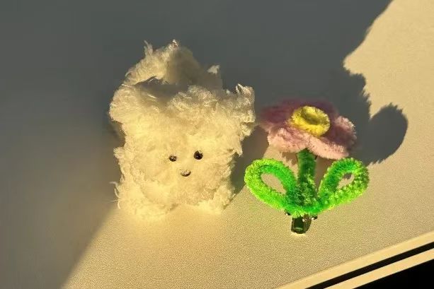 阳光洒在校园的桌角,扭扭棒在指尖缠绕出毛茸茸的小美好,这一方手工天地里,藏着属于校园生活的温柔与童趣。