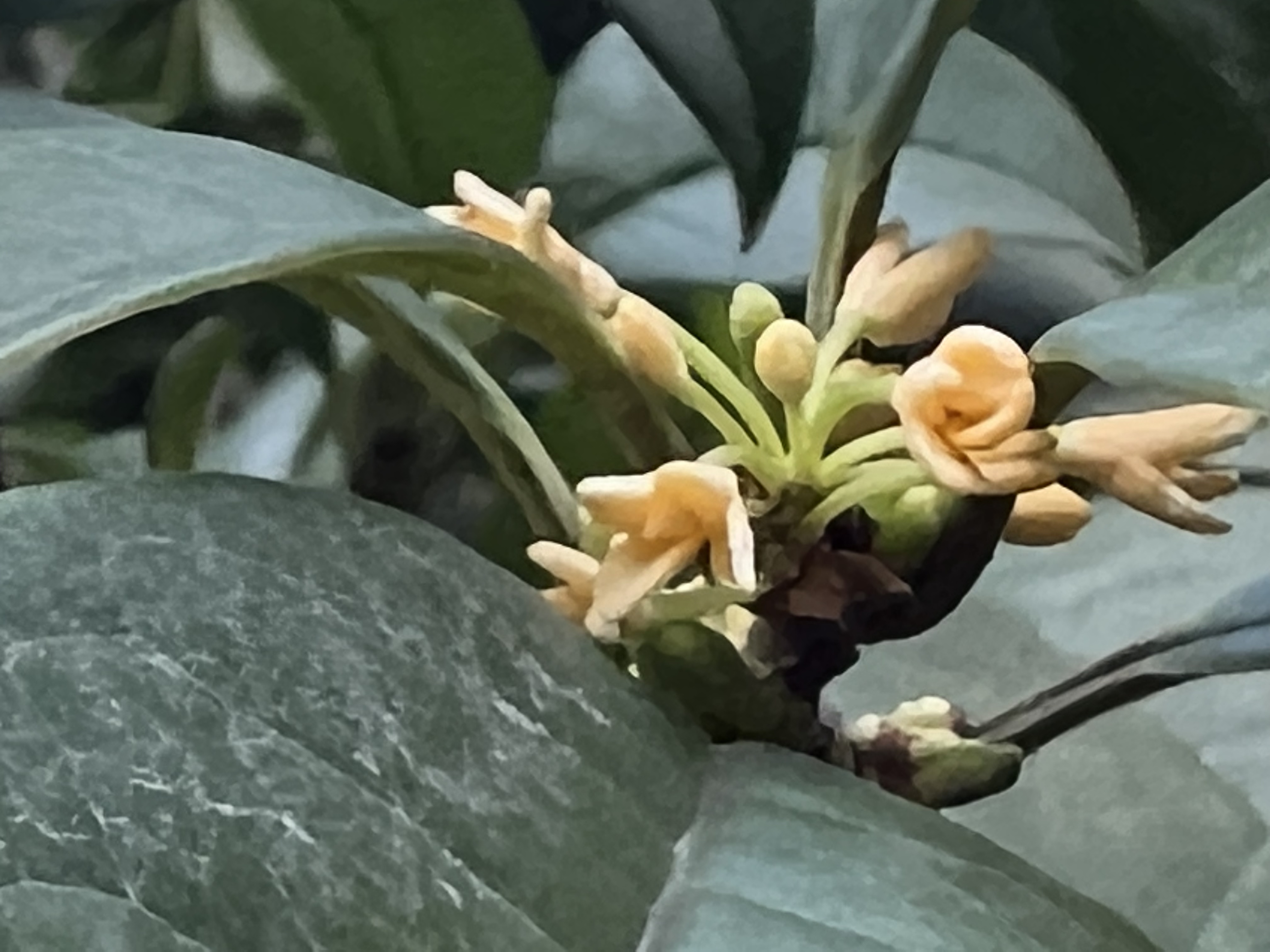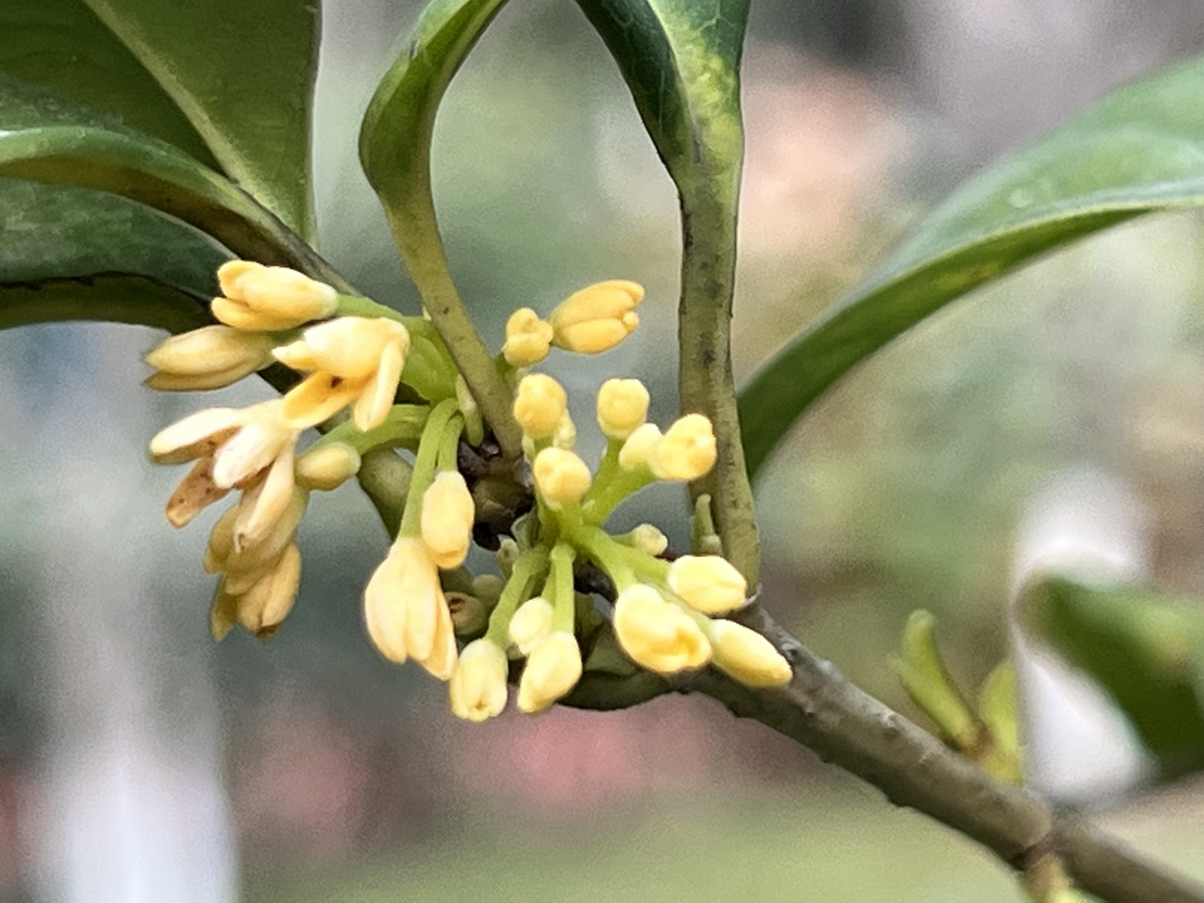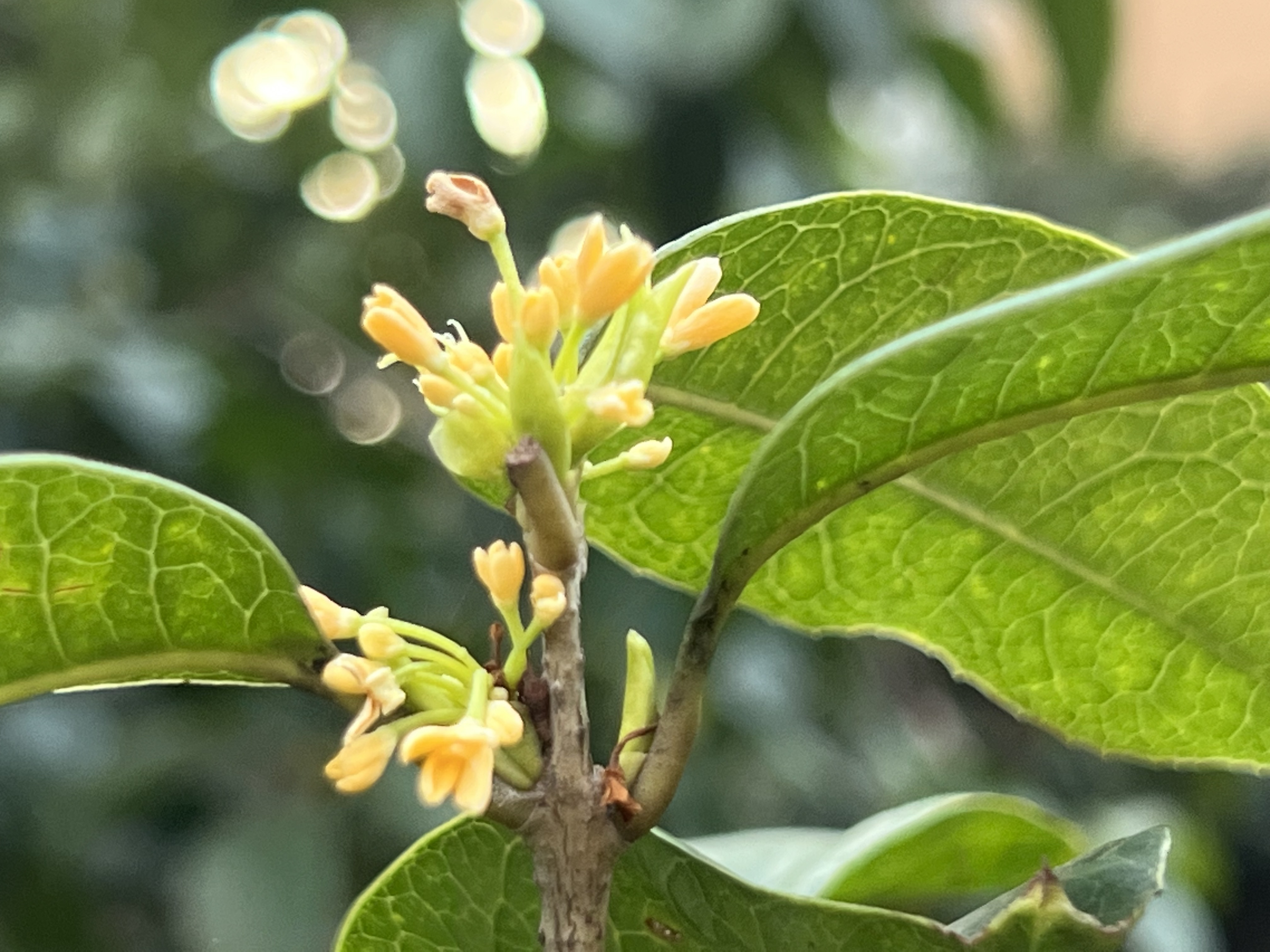 小区漫步,清冷的空气中,闻到一股花香,发现桂树花开金黄,想起郁达夫的文章《迟桂花》。