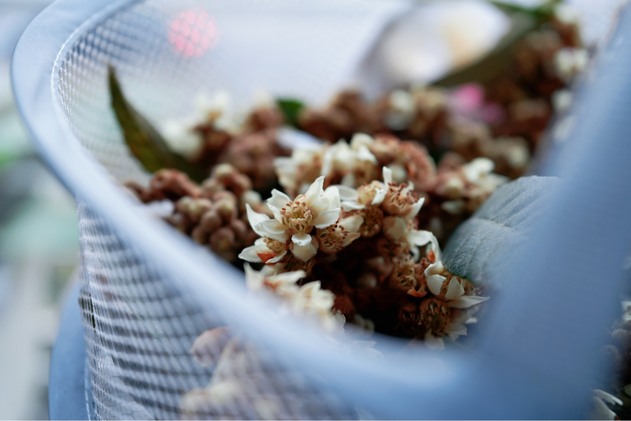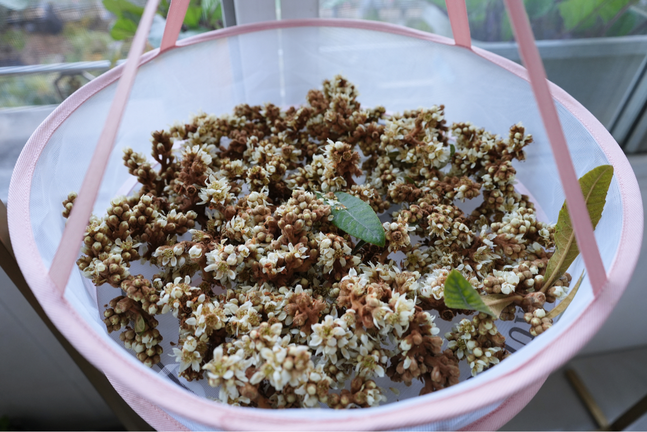 秋深冬近,塘栖枇杷花悄悄绽枝头。摘几朵煮茶,暖乎乎一杯!