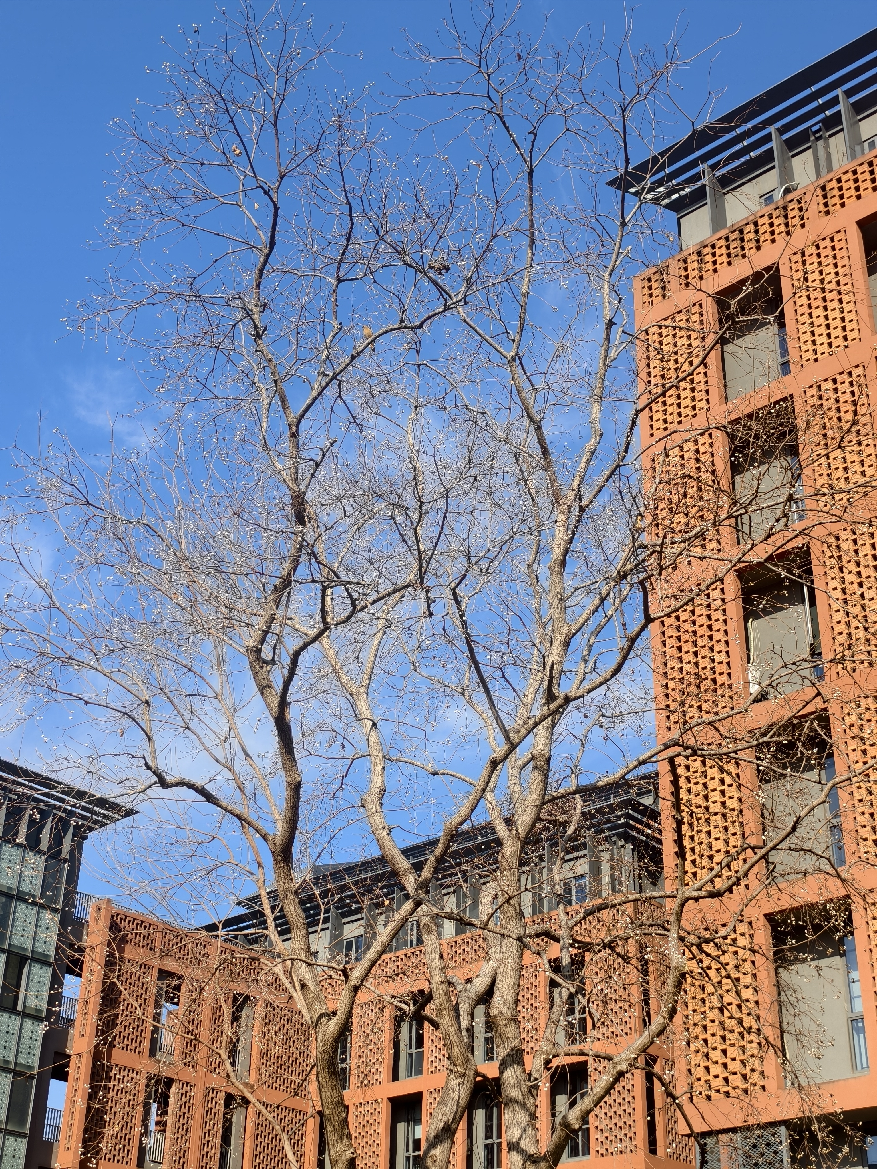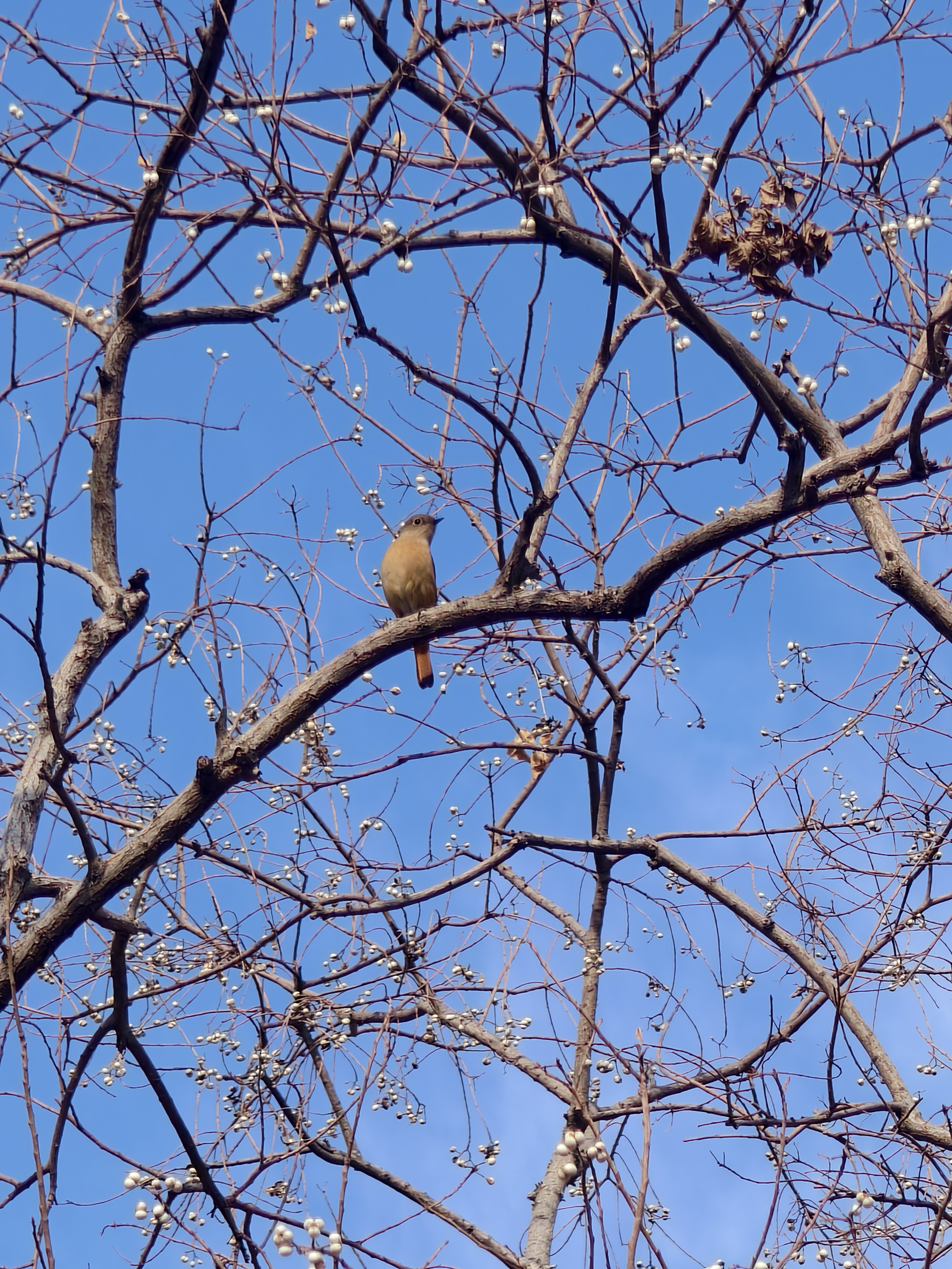 中午.浙大紫金港校区 .乌桕树 .白色乌桕果 .可爱的小鸟 百度上识别了一下,说是雌性的北红尾鸲(音同“渠”)。