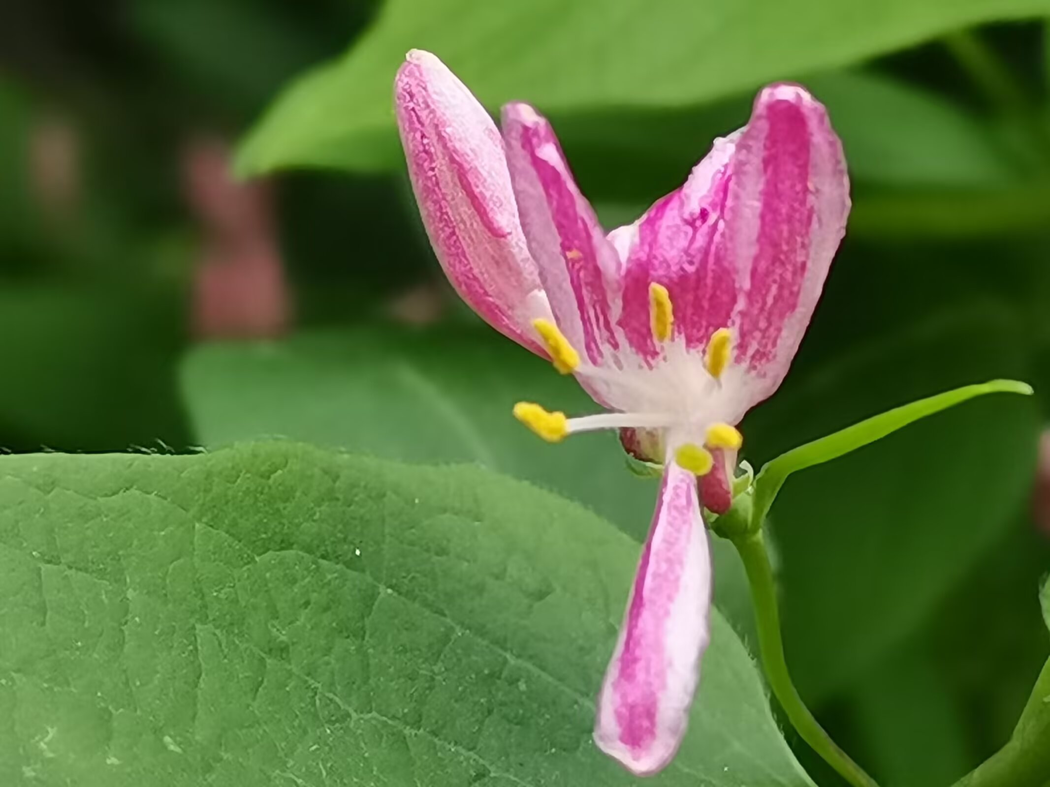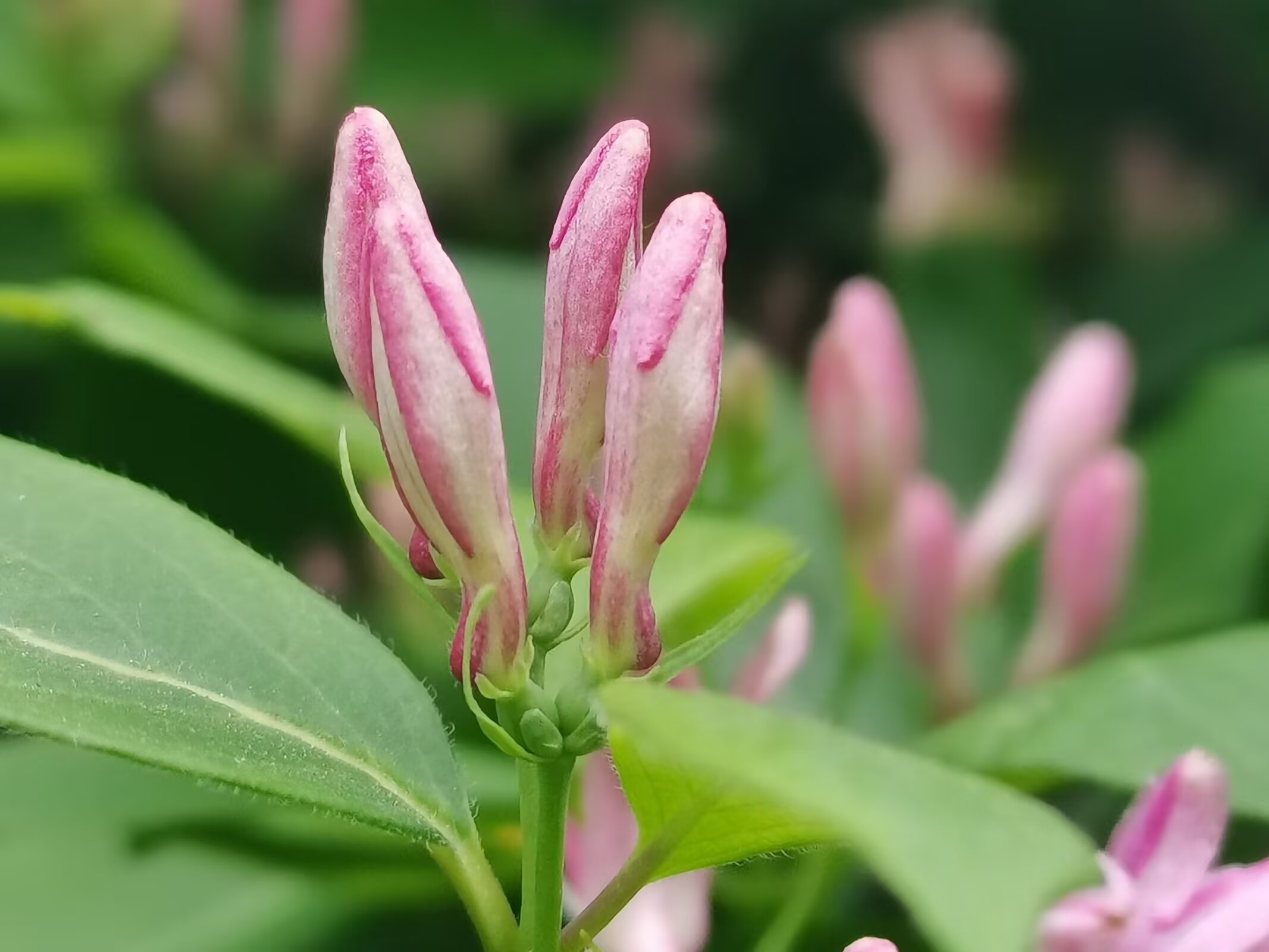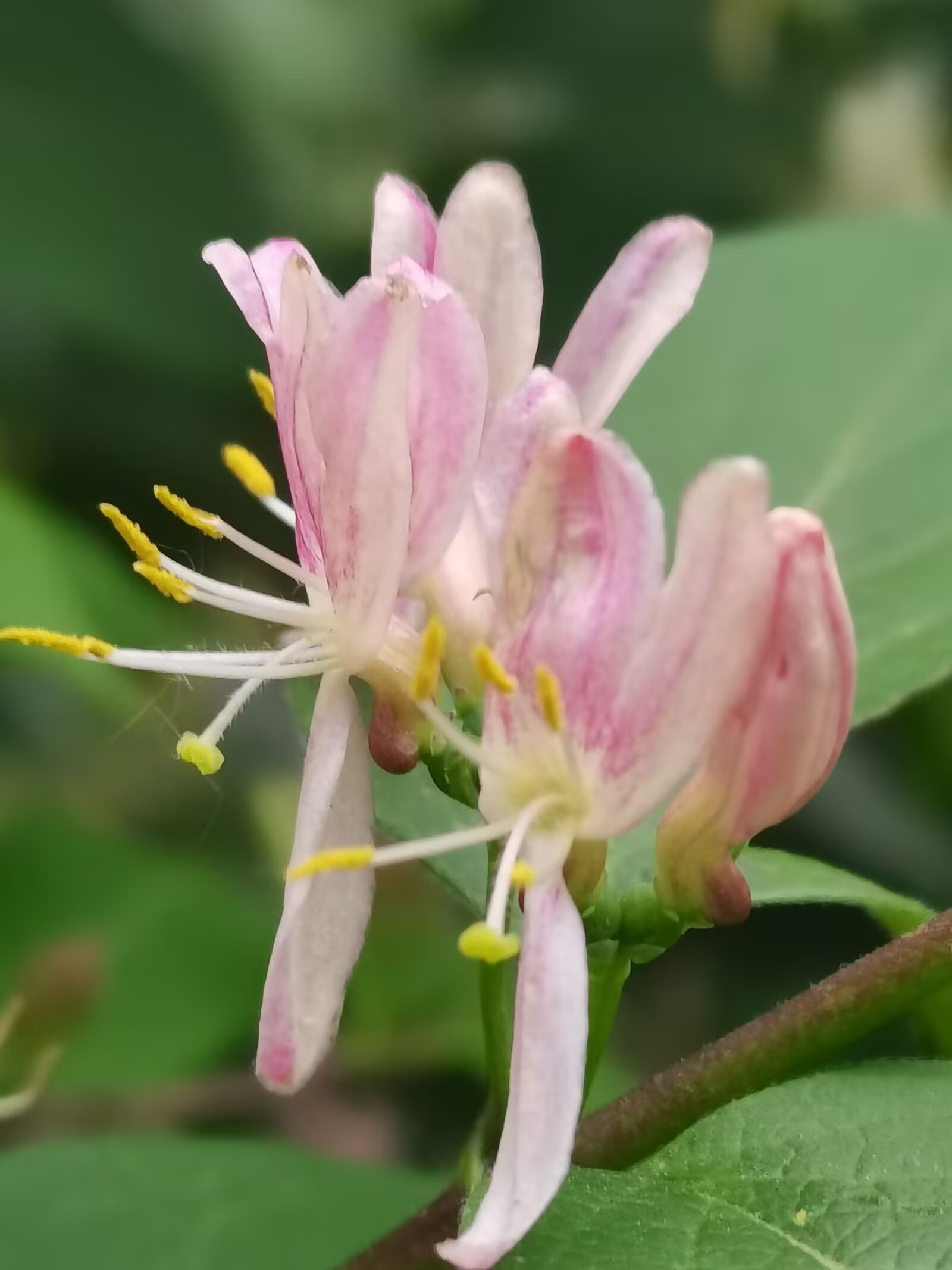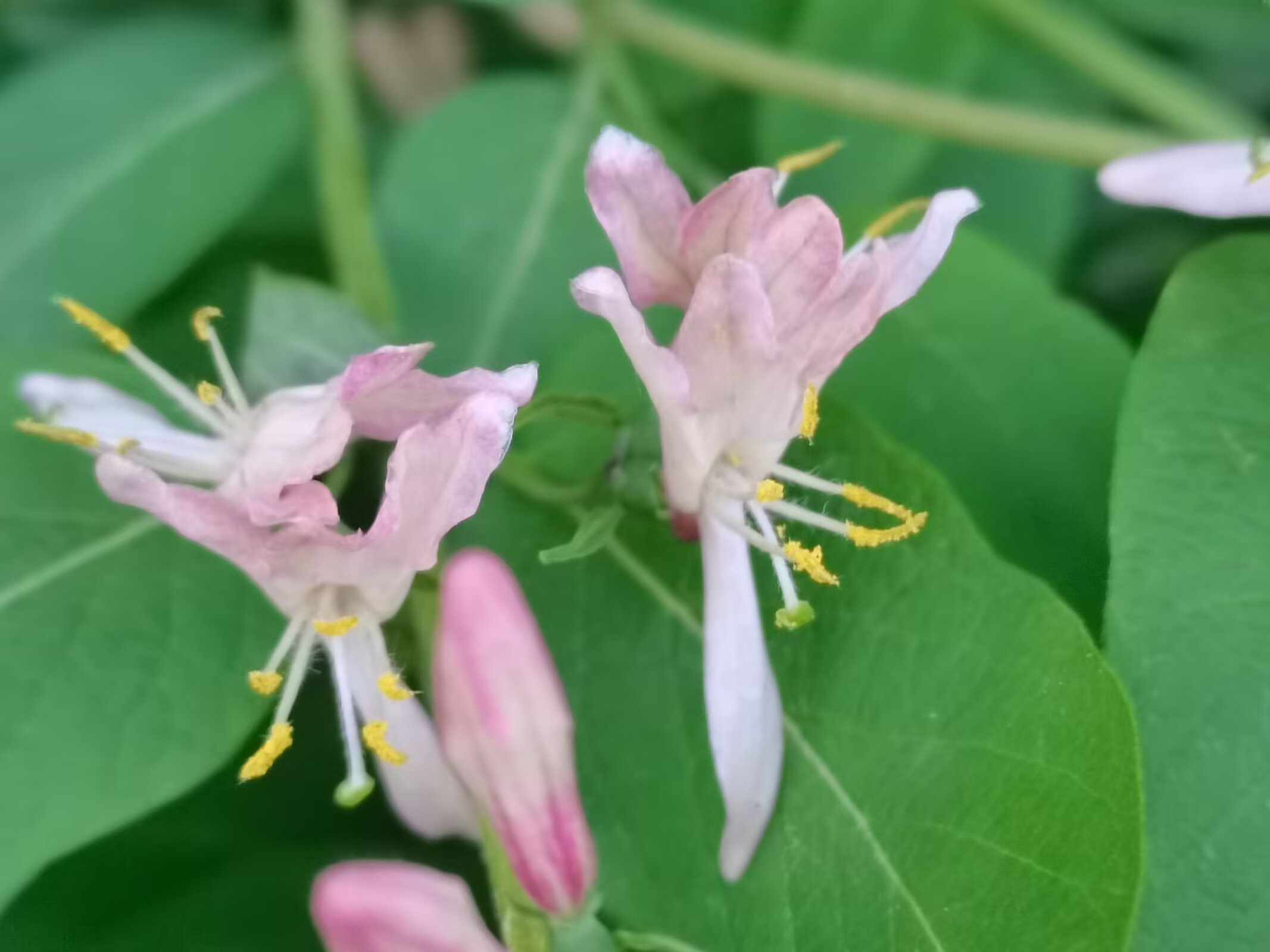 金银木,不是金银花哦。 金银木(学名:Lonicera maackii,又称金银忍冬)是忍冬科忍冬属的落叶灌木,高可达6米,原产于东亚,在我国南北各地广泛分布。 花期为4-6月,花朵初开时多为白色或粉色,后逐渐变为黄色或淡红色;果期8-10月,结红色球形浆果(浆果有毒,不可食用) 它适应性强,耐寒、耐旱、耐贫瘠,常作为园林绿化树种,也能吸引鸟类,兼具观赏与生态价值。 金银木与金银花的核心区别 1. 植株形态 - 金银木:直立灌木,枝干挺拔,无攀援特性。 - 金银花(学名:Lonicera japonica,又称忍冬):常绿/半常绿藤本,茎干细长,需依附支撑物攀援生长。 2. 花果特征 - 花色:金银木花色从白/粉转黄/淡红;金银花从白色转金黄色。 - 果实:金银木为红色成簇浆果;金银花为黑色稀疏浆果。 3. 叶片与用途 - 叶片:金银木叶片宽大厚实;金银花叶片狭长纤薄。 - 用途:金银花的花是传统中药材,可泡茶;金银木的花药用价值低,主要作观赏。