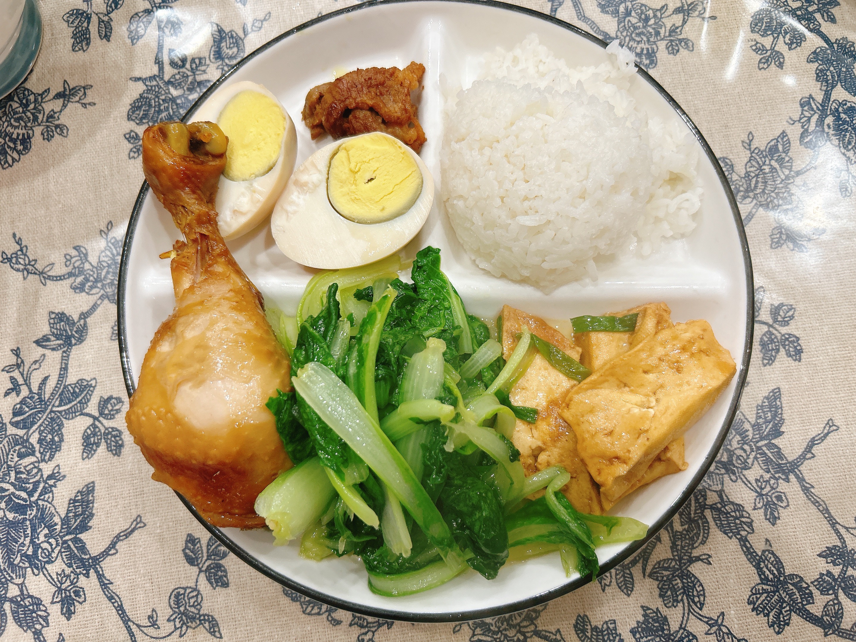 午餐:一拳头米饭+鸡蛋+鸡腿+青菜+豆腐 在自己的小小世界,将简约、舒适、自在,写入日常的生活标签,在行进中,感受惬意。