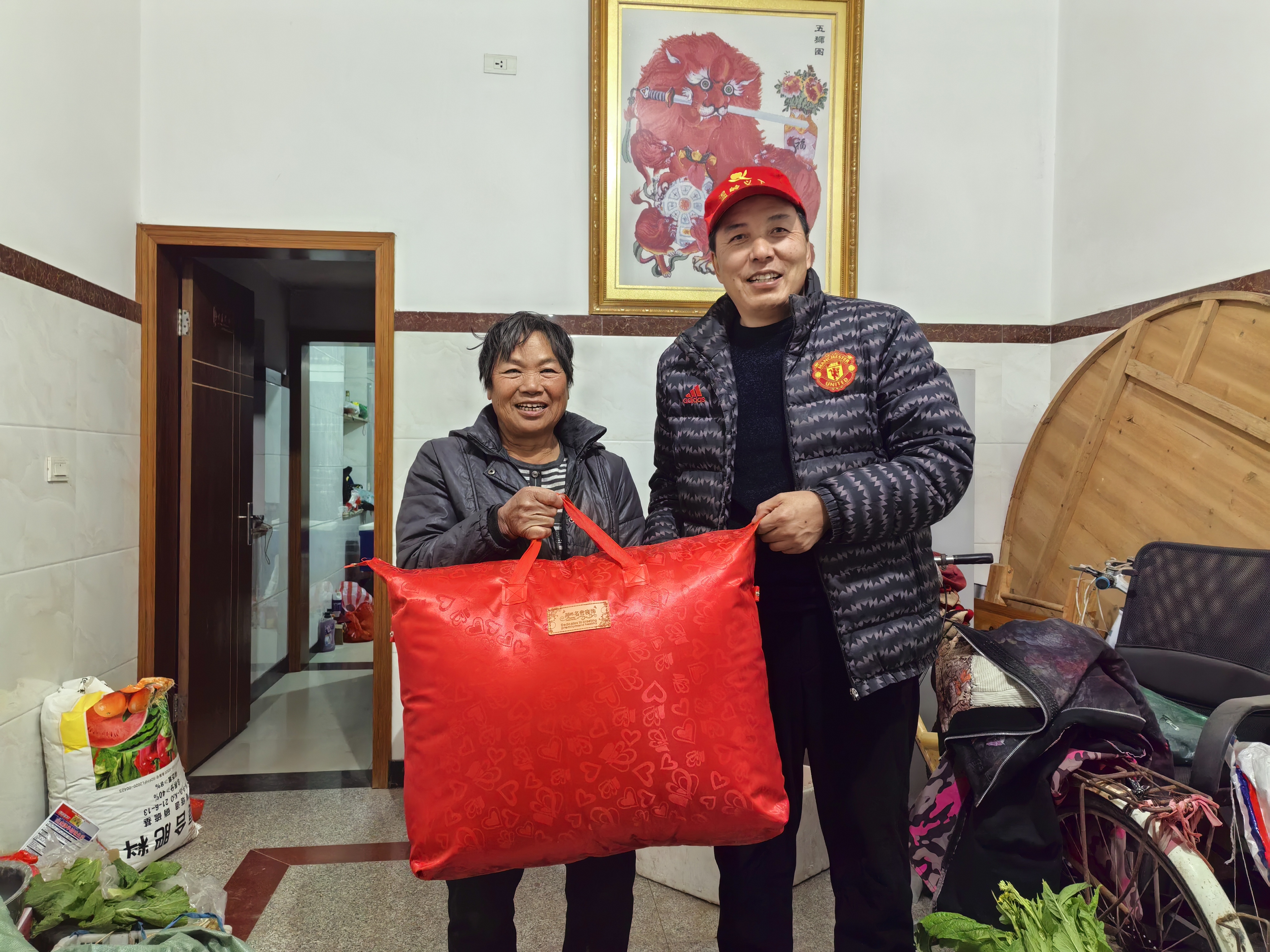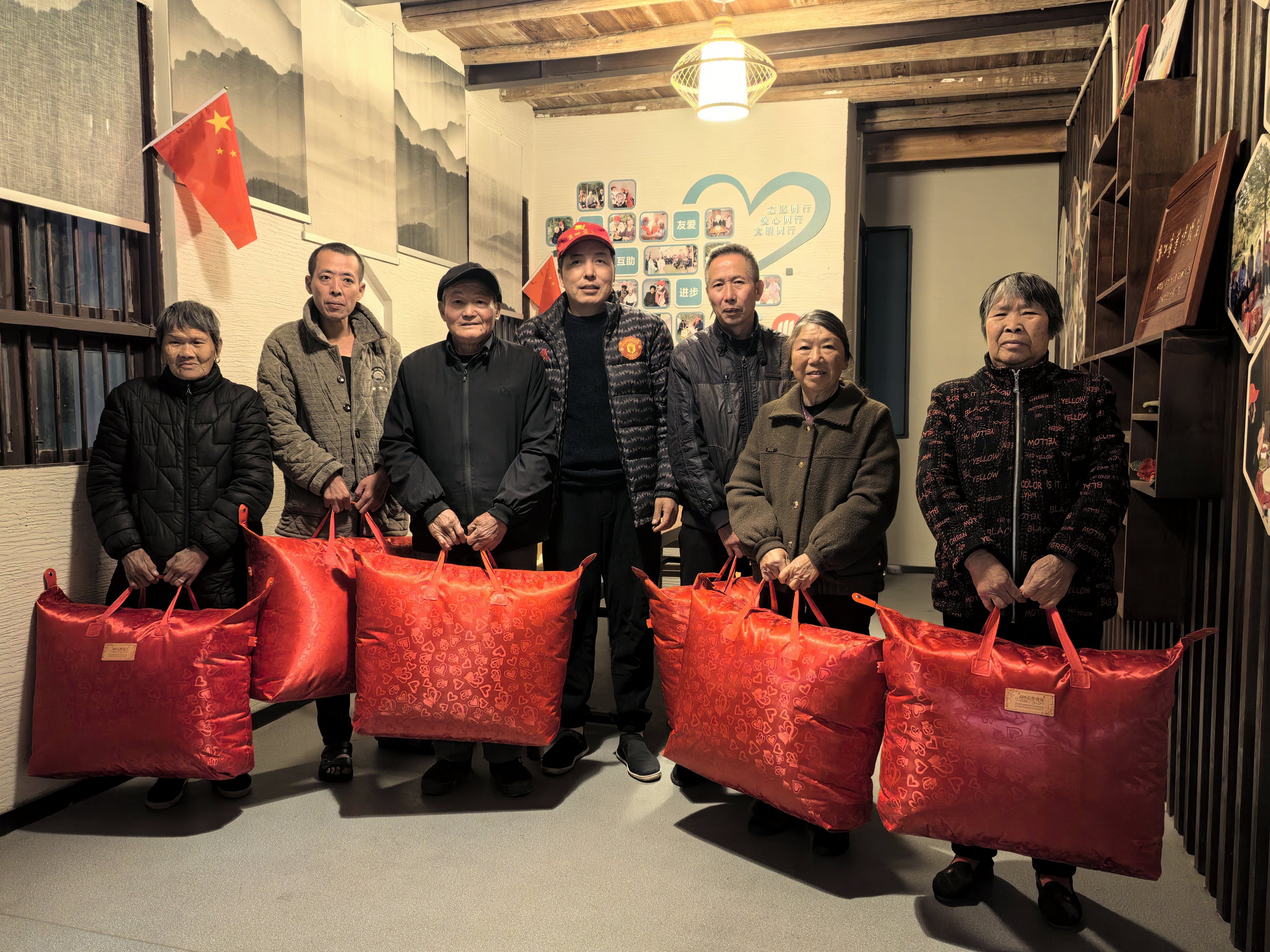 12月30晚上,走进城南镇寨门村雷锋站(城南义工队队部),以及国庆新村,慰问张妙法、张根青等七位退伍老兵以及军属。(保暖被芯七床由温岭市退役军人事务局提供)