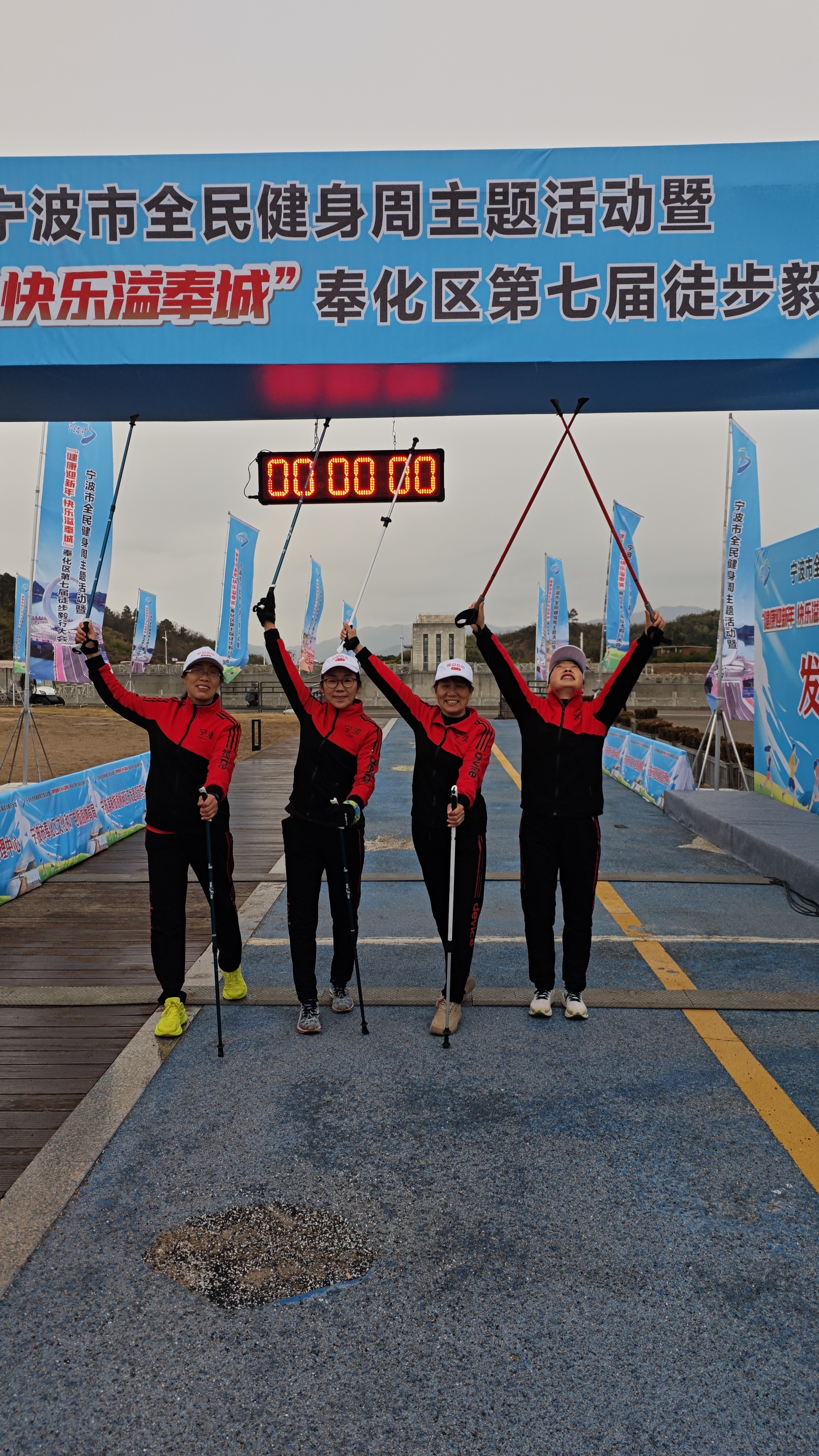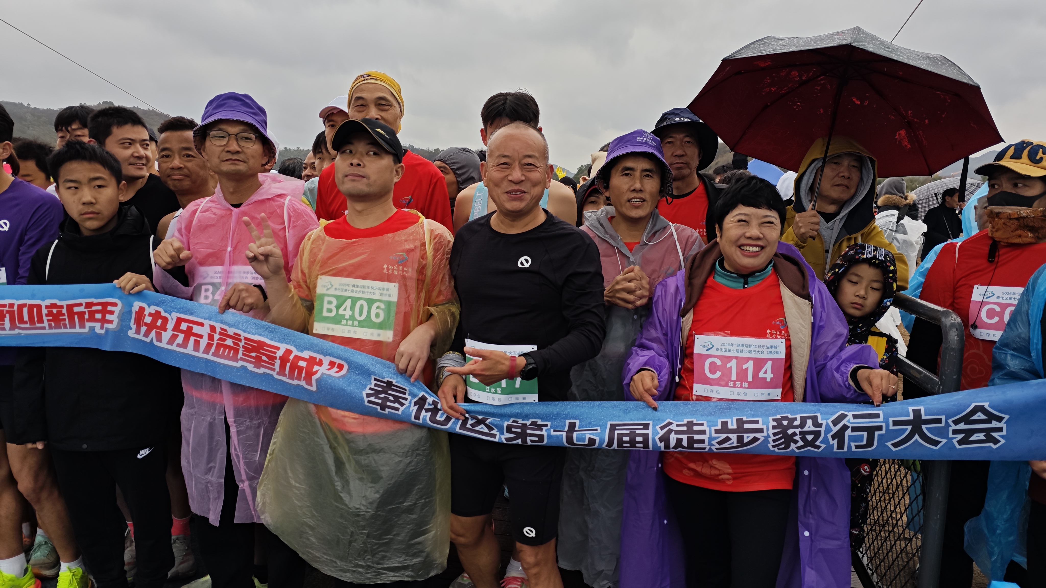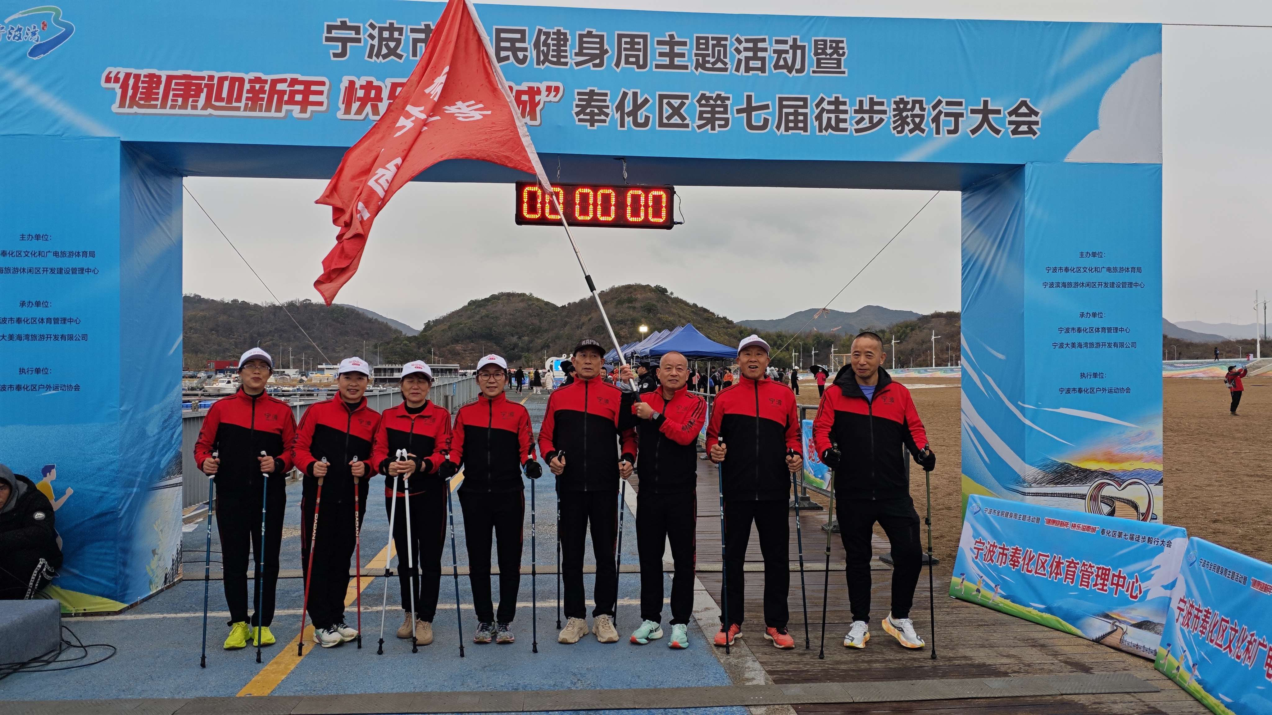 奉化第七届徒步毅行大会燃动天妃湖 ——奉化老年长跑队积极组队参与 勇夺佳绩 马宜奋 2026年1月1日上午,由奉化区文化和广电旅游体育局、宁波滨海旅游休闲区开发建设管理中心联合主办,区体育管理中心、宁波大美海湾旅游开发有限公司承办,区户外运动协会执行的宁波市全民健身周主题活动暨“健康迎新年 快乐溢奉城”奉化区第七届徒步毅行大会在宁波湾天妃湖东堤正式开跑。来自全区机关、企业、户外俱乐部及社会各界的2000余名运动爱好者,沿着13.8公里的“山海福道”激情出发,用脚步丈量“东海福地”的生态画卷,开启2026年第一缕运动曙光。奉化老年长跑队组织10多名队员积极参与跑步组和徒步组,并获得了较好的成绩。 本次活动以“健康迎新年 快乐溢奉城;祈福天妃湖,福运满征途”为口号,设置跑步组与徒步组两大组别,线路精心串联天妃湖东堤、福桥、鸿峙村、生命之环等核心节点,全长13.8公里,让参与者在运动中深度感受这座“东海福地”的生态之美与文化底蕴。上午9点,发令笛声划破天妃湖的宁静,选手们冲出起点。在浩浩荡荡的“彩色长龙”中,一支“银发方阵”格外引人注目——奉化老年长跑队10余名队员统一佩戴队徽,分赴跑步组与徒步组双线作战。风雨交加里,他们步履铿锵、斗志昂扬,用速度与坚持诠释“健康无关年龄”的体育精神。“老当益壮,宝刀未老!”59岁的队长江水军率先冲过终点,以58分36秒夺得跑步组第37名,在800余名竞速高手中为老年队赢得新年首块“荣誉勋章”。而在徒步组,其余队员提前半小时完成13.8公里全程,边走边拍,一路打卡“福桥”“生命之环”等网红节点,成为移动的风景线。 “今天是2026第一天,和队友在天妃湖迎朝阳、迎新年,特别有意义!”冲线后,江水军与队友们合影留念,笑意写在每一道皱纹里。“我们希望通过迎新徒步,把‘体育+旅游+文化’深度融合,让更多队员走出家门、拥抱自然,用脚步丈量家乡之美。”奉化区老年长跑队负责人表示。