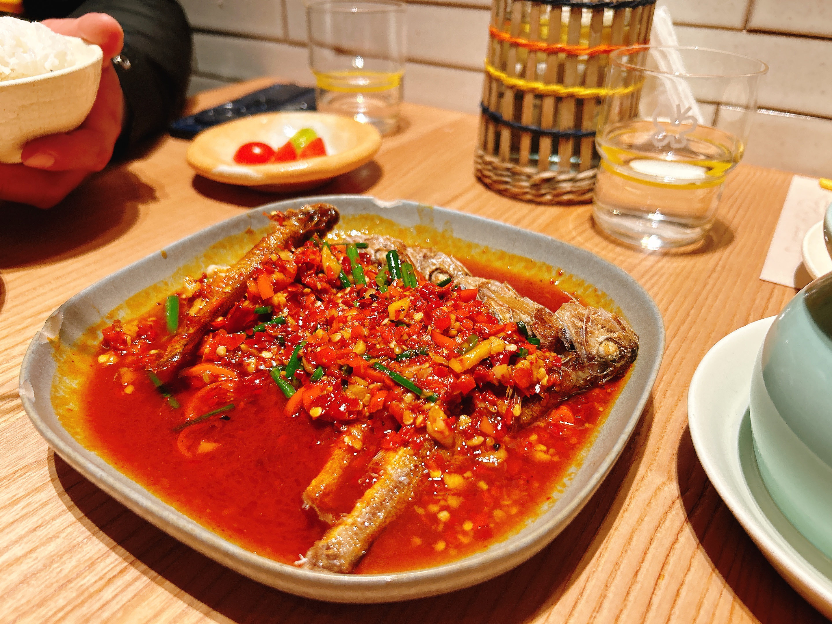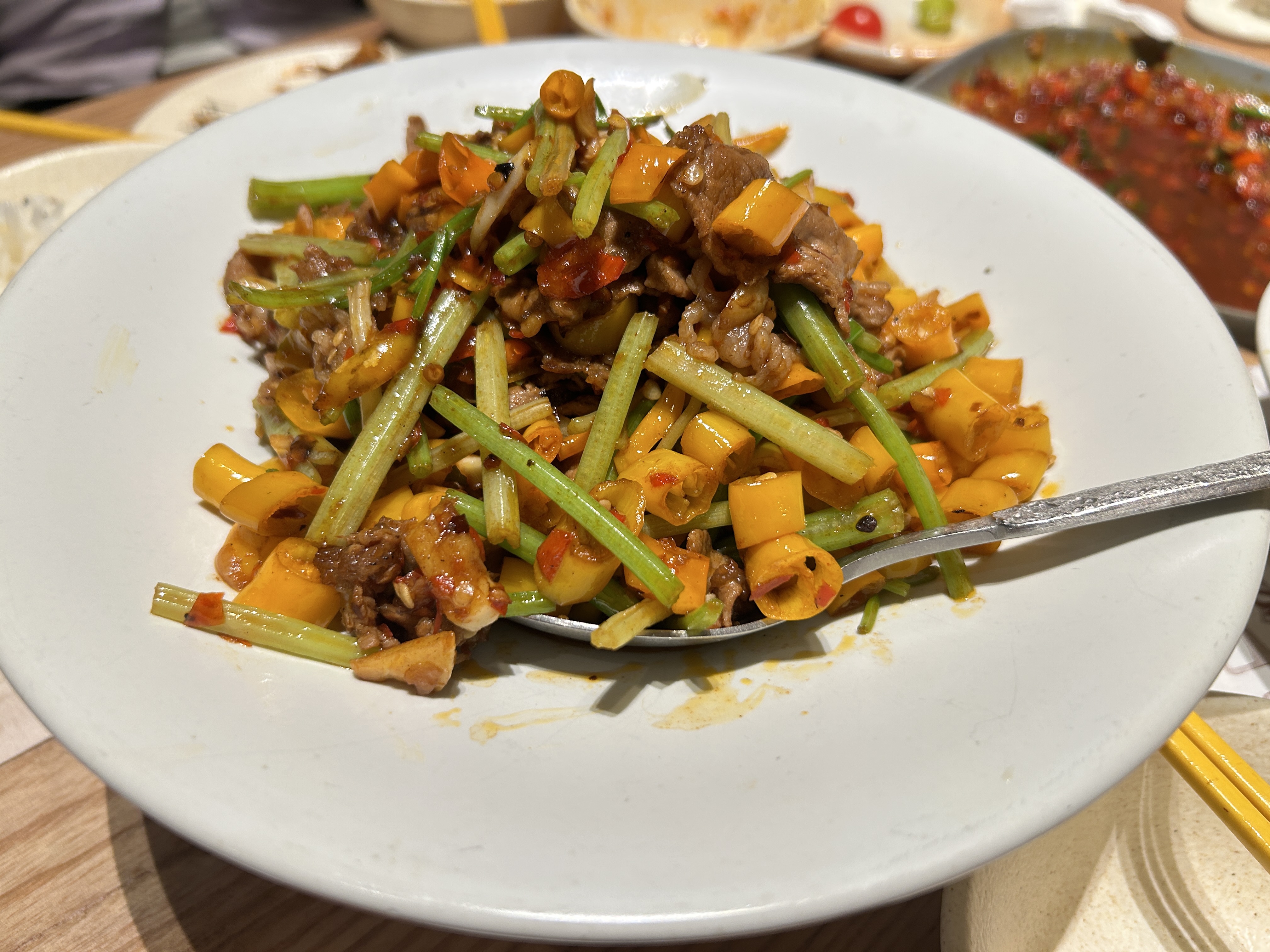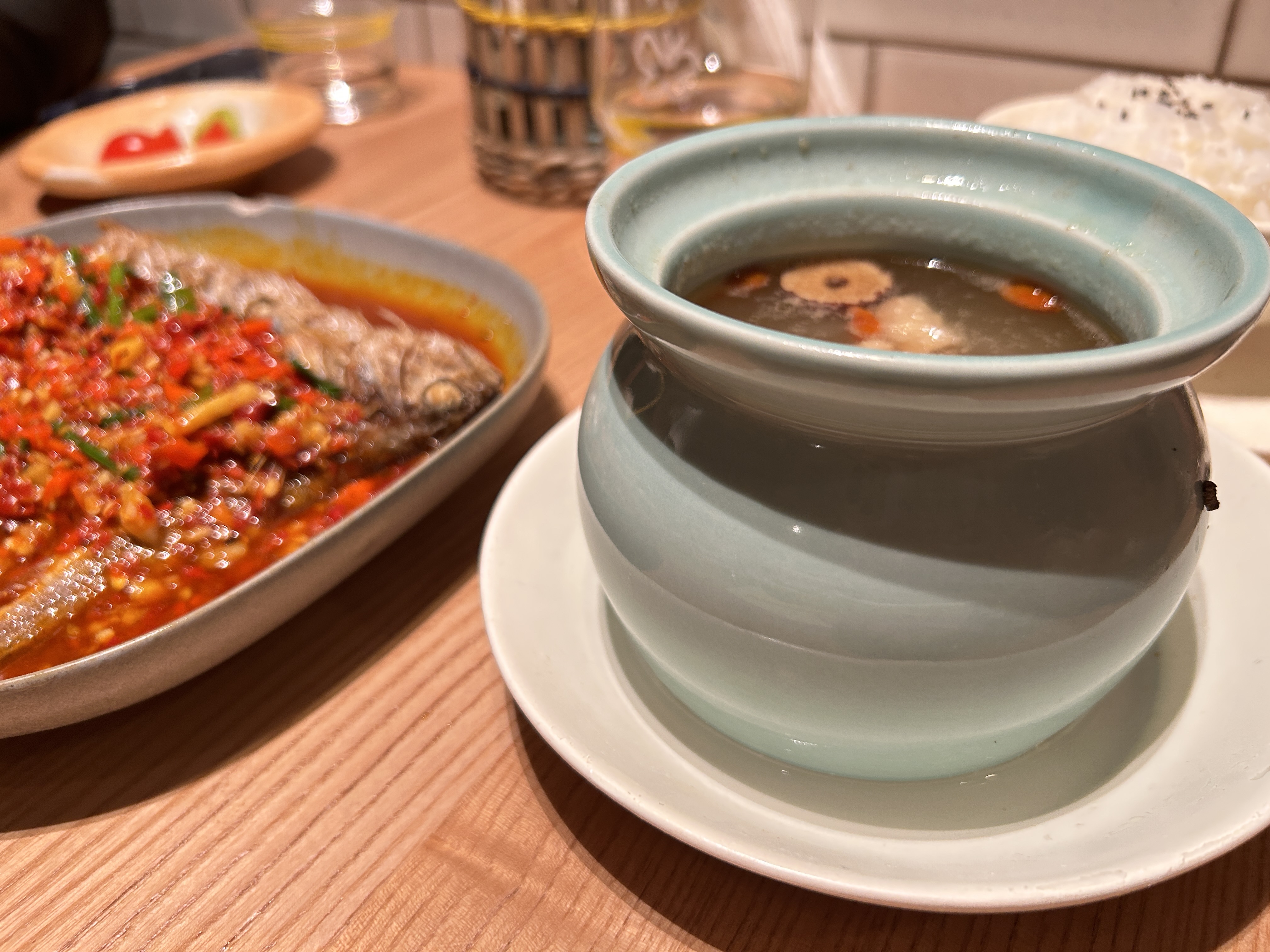 新年也要好好吃饭呀! 今天吃的胡恰|景德镇江西菜,排了好几个小时的队才等到 每个人点了一个自己爱吃的菜 今日餐单: 红枣鸡汤 辣椒浸黄鱼 吐司辣椒牛肉 芹菜辣椒小炒黄牛肉 闺蜜慕斯蛋糕