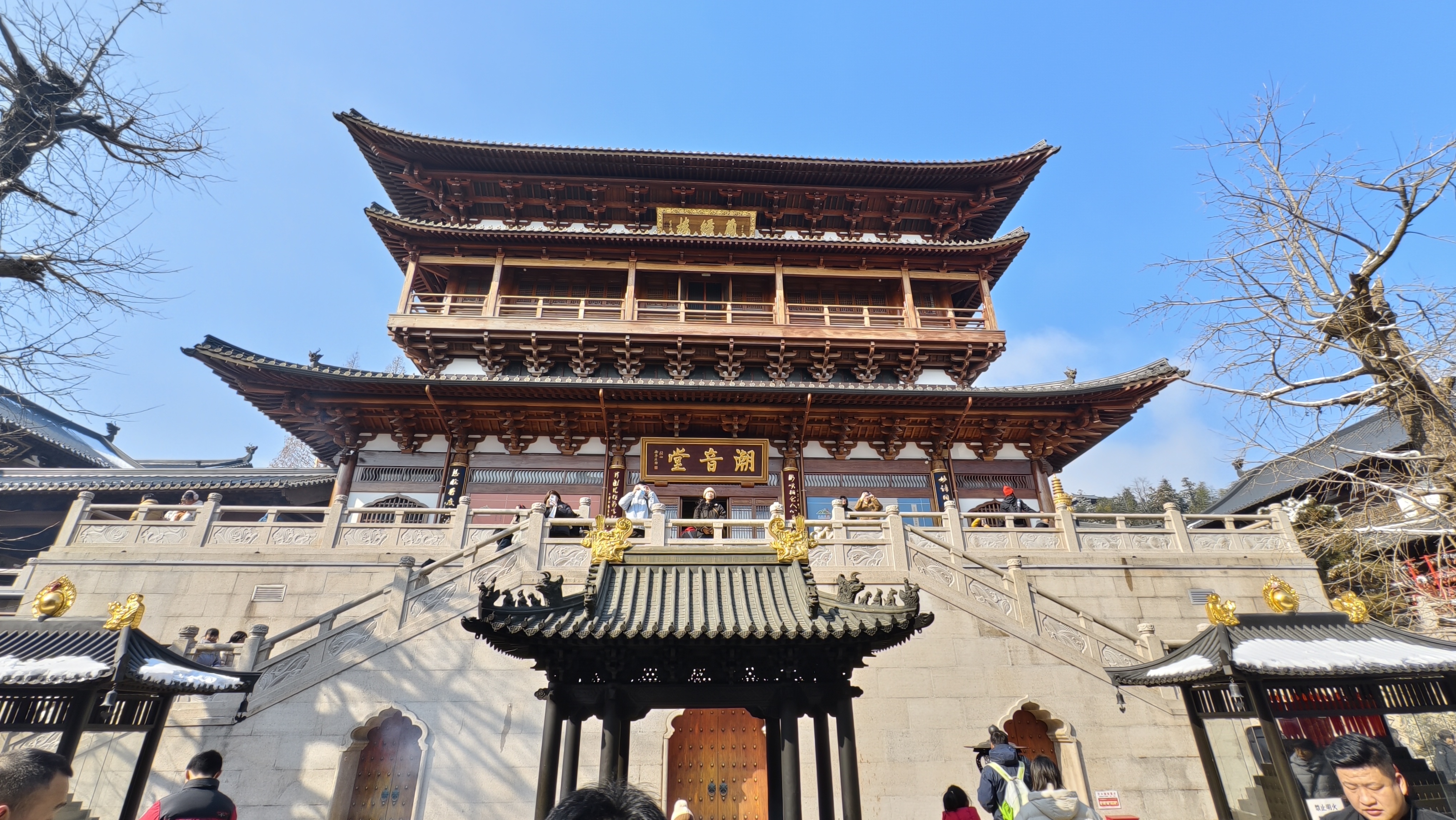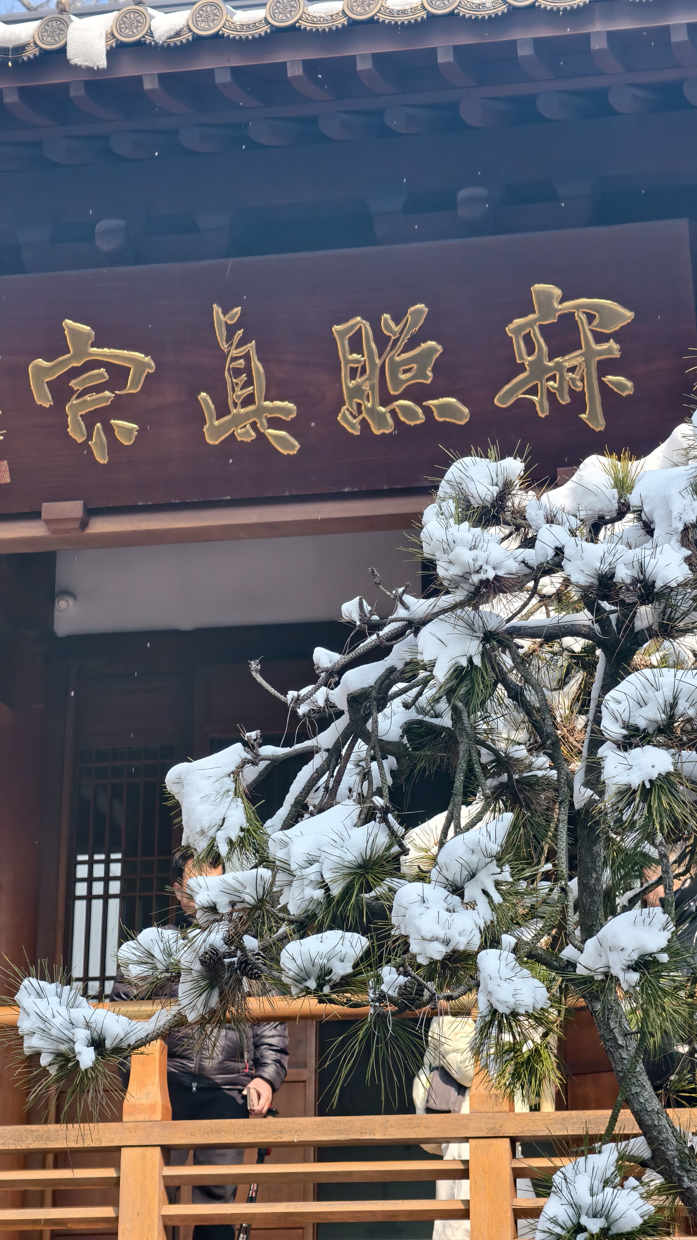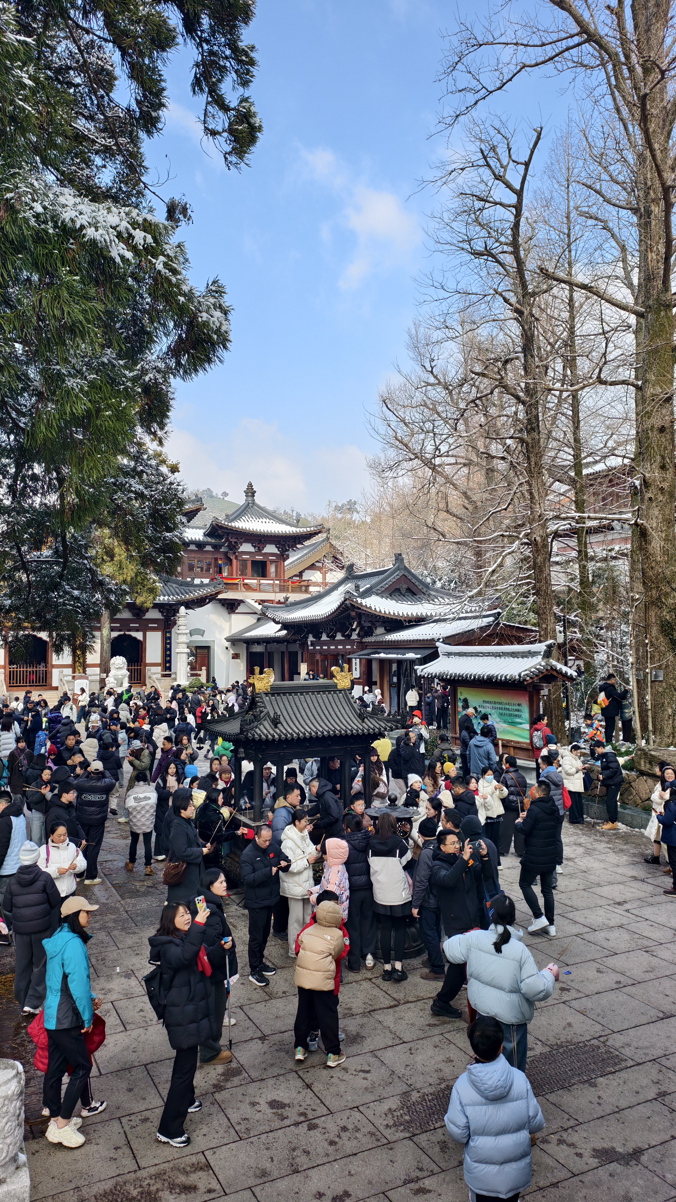 径山寺元旦喜降瑞雪,皑皑白雪裹古寺,引得八方祈福游客沉醉不已,甘愿排队数小时,只为赴这场雪落禅境的美好,满心皆是欢喜~