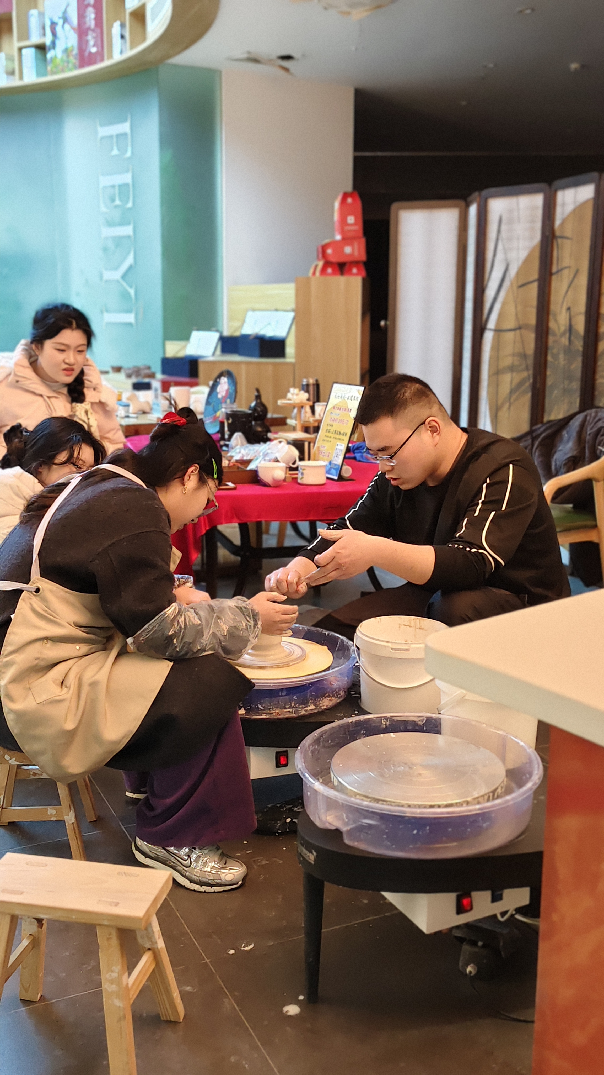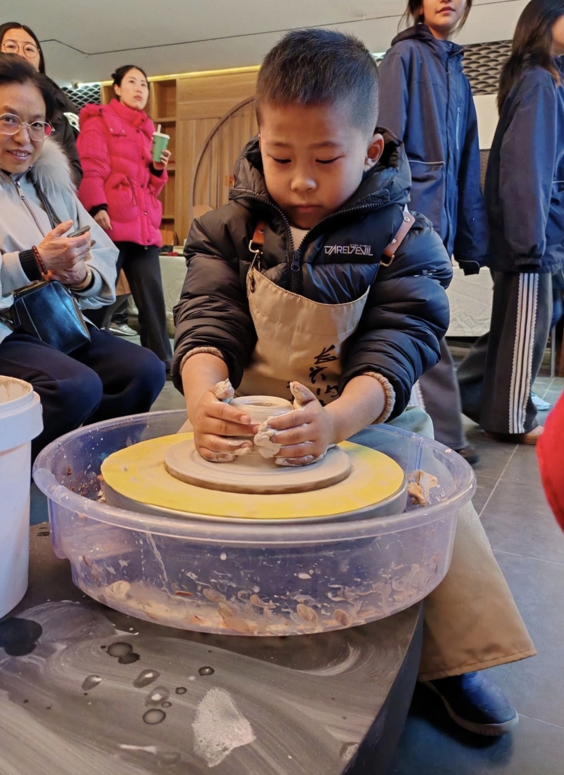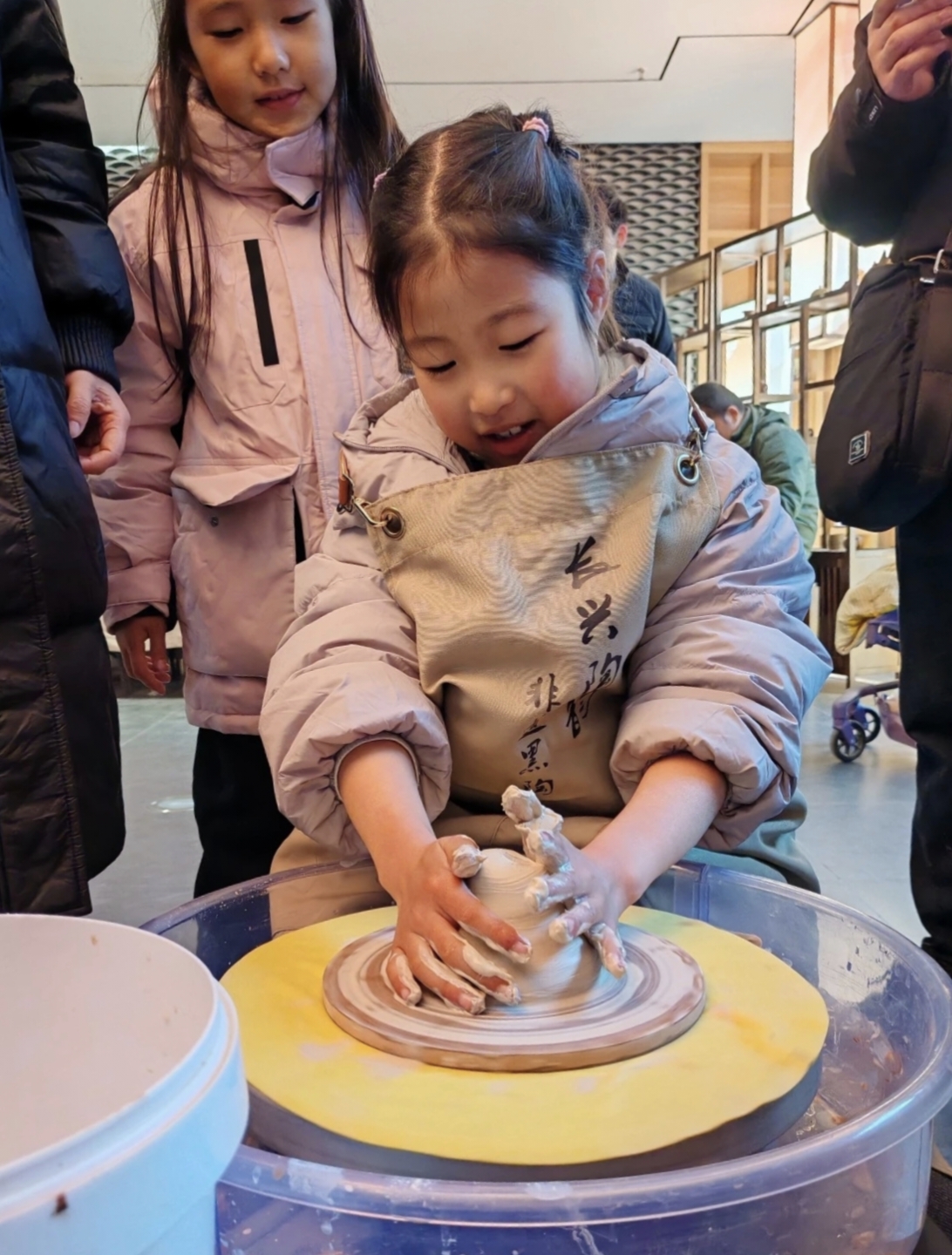 小满姐姐打造青少年非遗传承新体验:龙之梦长兴非遗生活馆亲子手作受家长热捧。 馆长小满姐姐精心策划,邀请长兴紫砂、长兴陶韵非遗黑陶传承人李睿洋、香樟木水墨画三位非遗传承人走进馆内,推出“非遗手作·匠心传承” 黑陶技艺大师指导家庭协作完成陶胚雕刻,让孩子们在陶坯上自由创作,让大家有一份属于自己的作品 精心设计:当非遗遇见亲子互动 本次活动,小满姐姐与三位非遗传承人反复沟通,将复杂的工艺简化成适合不同年龄段孩子操作的体验项目。