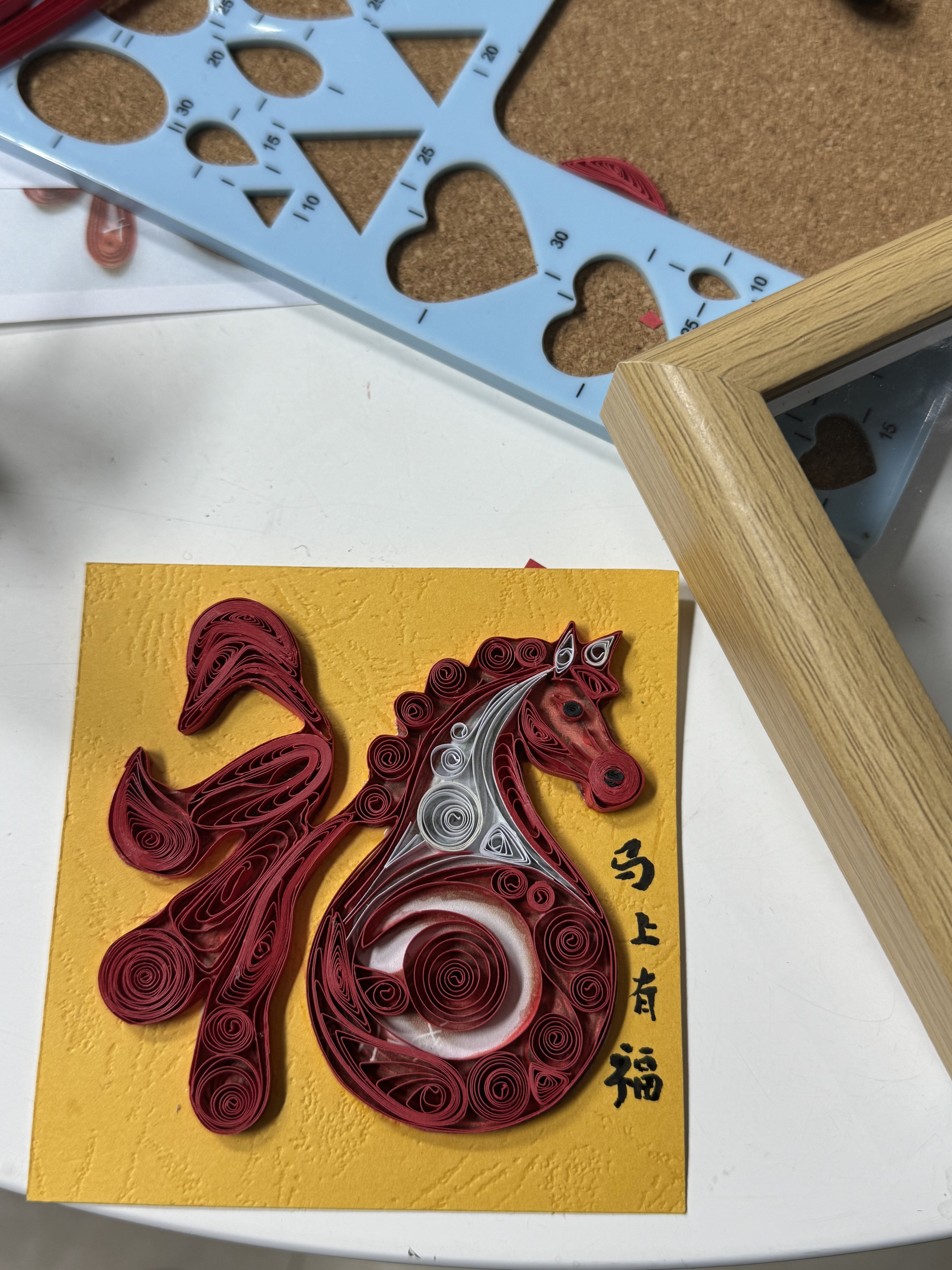 衍纸作品“马上有福”做了 4 个小时,竟然是小小的😳