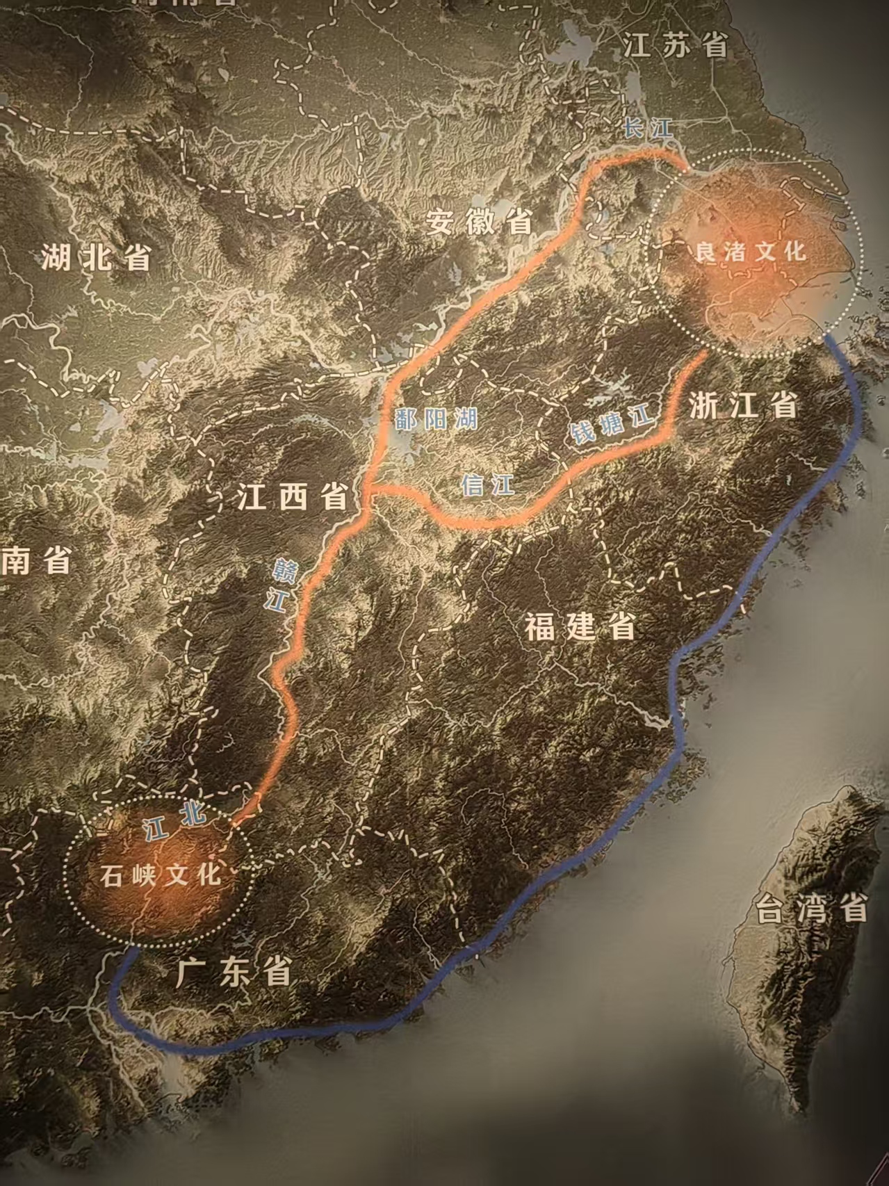 早在五千年前的新石器时代,江南与岭南地区便有了交流。从良渚到石峡,沿赣江过南岭的大庾岭进入珠江的北江流域。 良渚文化与石峡文化,是古国时代最亮的星,在玉器、石器和陶器上具有一定共性。二者均为中华文明“多元一体”格局中的重要根系,它们是如何进行交流呢? 1️⃣沿着长江进入鄱阳湖一赣江水系,向南跨越南岭抵达粤北地区。 2️⃣通过钱塘江流域或金衢盆地进入赣江流域3️⃣沿东海、南海海岸线跳跃式前进的交流路线。粤东海丰县、香港涌浪遗址曾出土良渚风格玉琮。 4️⃣通过中间地带的文化(如江西的樊城堆文化、好川文化)逐段传递,且不断与本地文化融合。