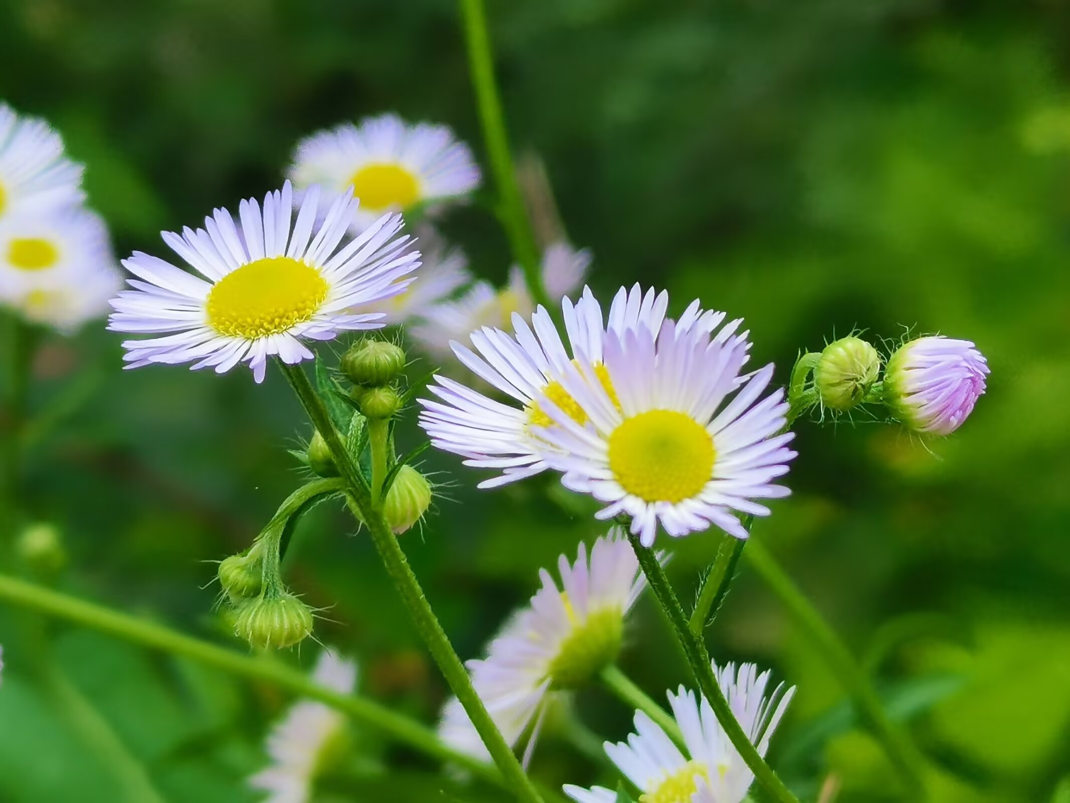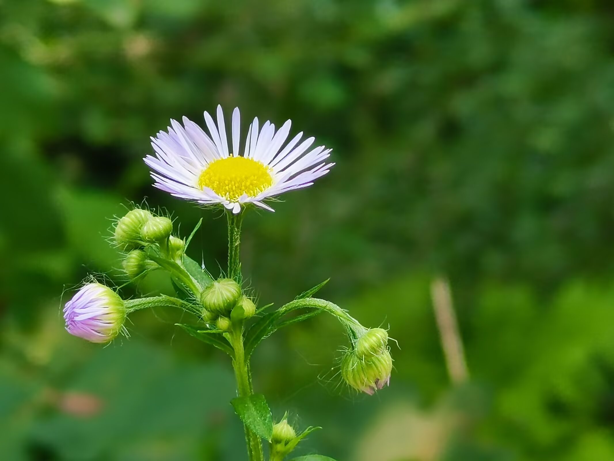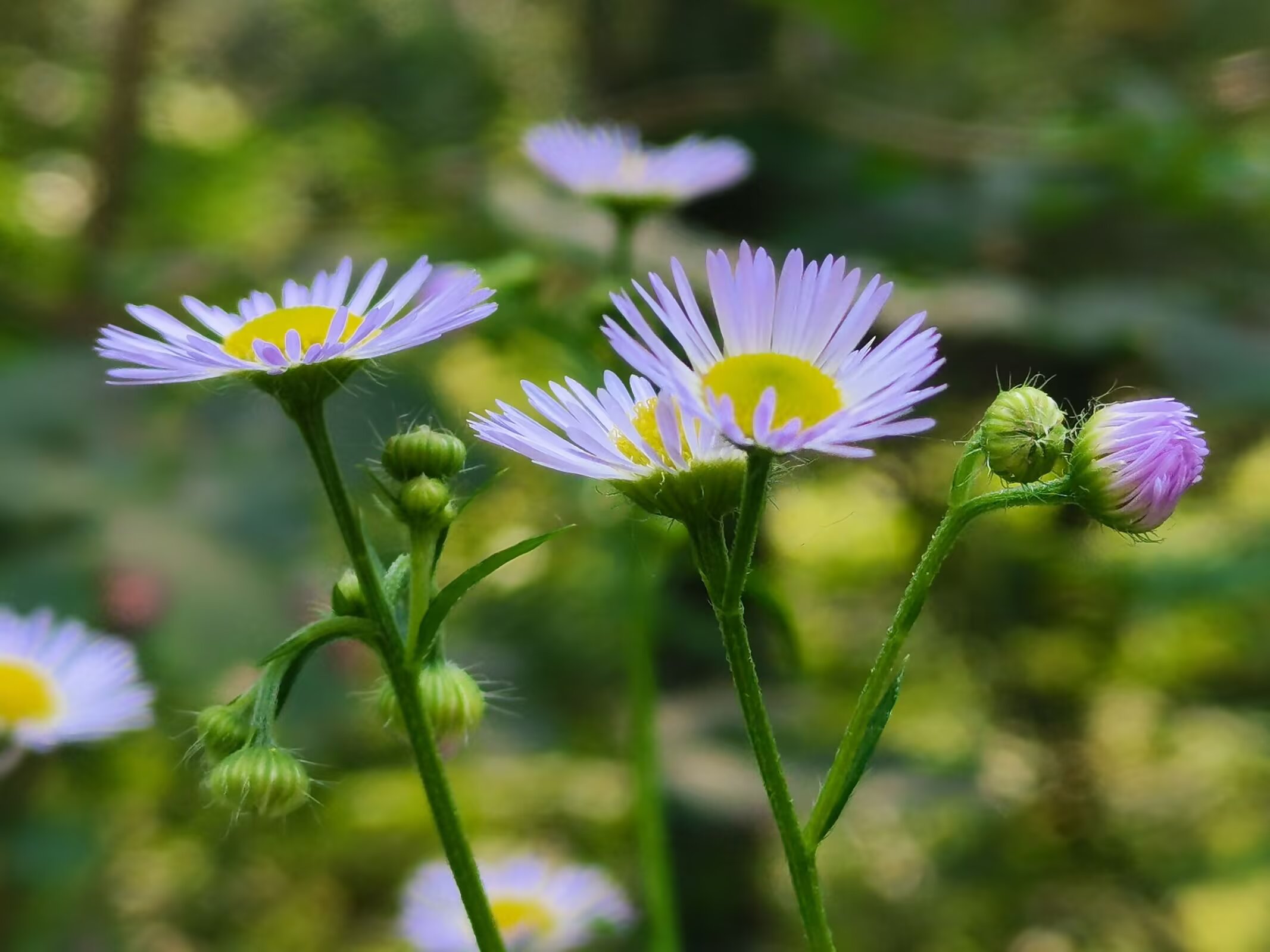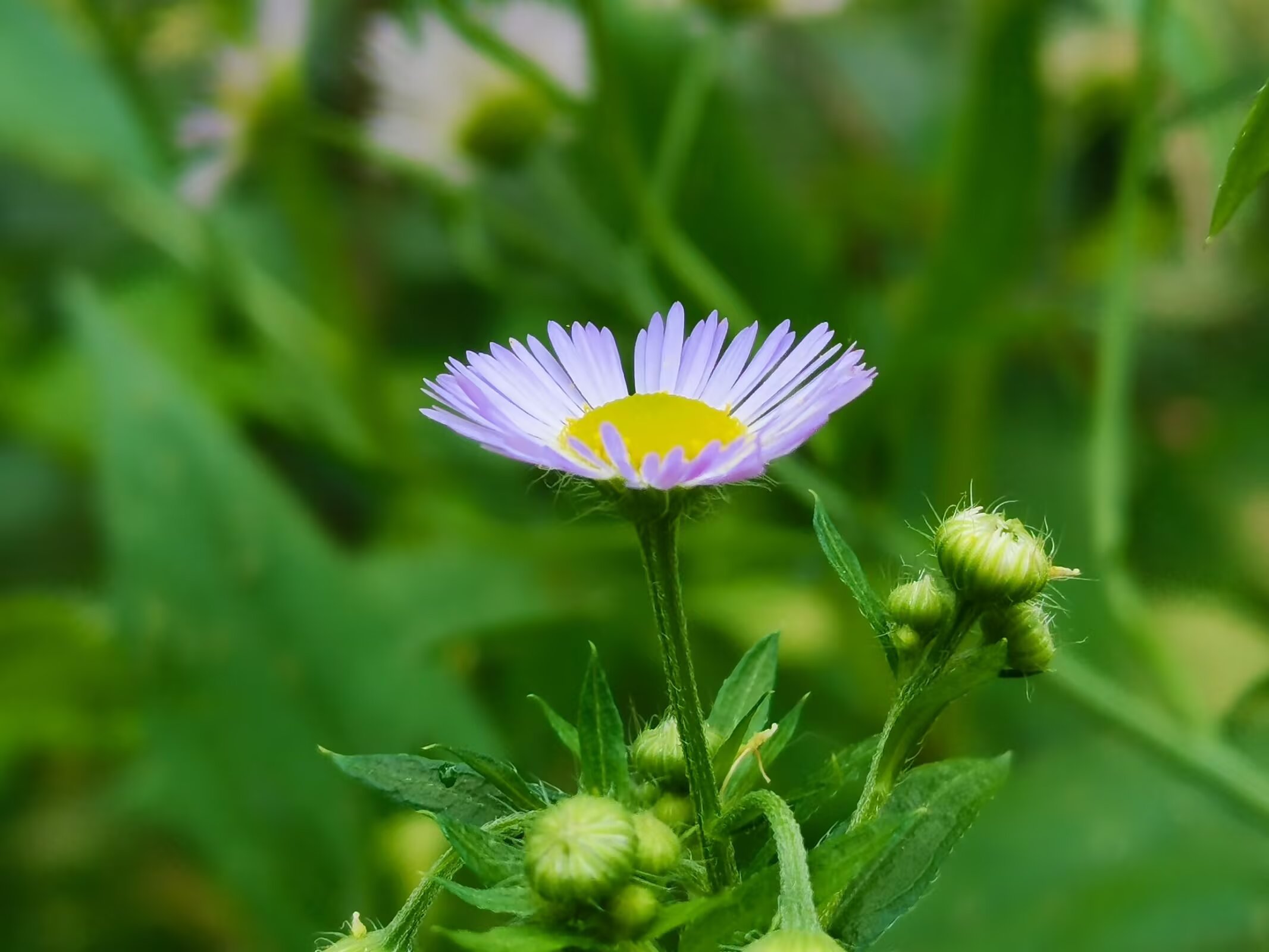 一年蓬,也常被称作千层塔、治疟草、野蒿,是菊科飞蓬属的一年生或二年生草本植物。 1. 形态特征 株高30–100厘米,茎直立且被硬毛;基部叶为长圆形或宽卵形,中部和上部叶呈披针形,边缘有齿裂;头状花序排列成圆锥状,外围舌状花为白色或淡蓝紫色,中央管状花呈黄色,花期6–9月,果期7–8月。 2. 分布与生长习性 原产于北美洲,1886年在上海首次被采集,如今几乎遍布中国温带和亚热带地区,常见于路边、旷野、山坡及农田边缘。它适应性极强,耐贫瘠,种子借冠毛随风传播,落地即可萌发。 3. 生态与价值 - 入侵性:2013年被列入《中国入侵植物名录》1级恶性入侵类,单株可产约3万粒种子,还会释放化感物质抑制周边植物生长,破坏本土生物多样性。 - 实用价值:嫩茎叶可焯水后凉拌、炒食;全草入药,有清热解毒、消食止泻、截疟的功效,可治消化不良、齿龈炎、毒蛇咬伤等;提取物还能制作农药、防褐变剂。