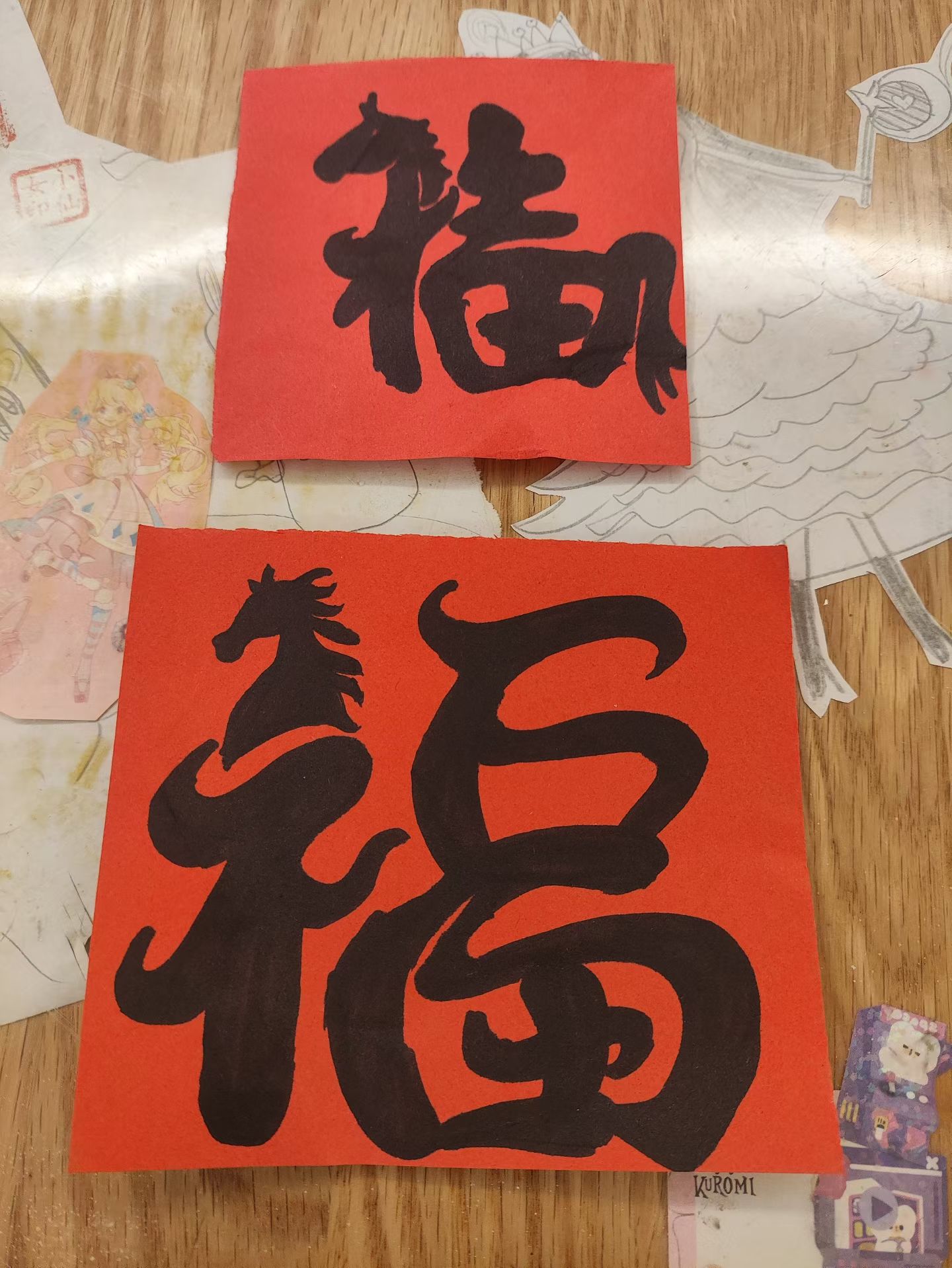 朋友的小孩写的马年福字, 创意和功力都不错。