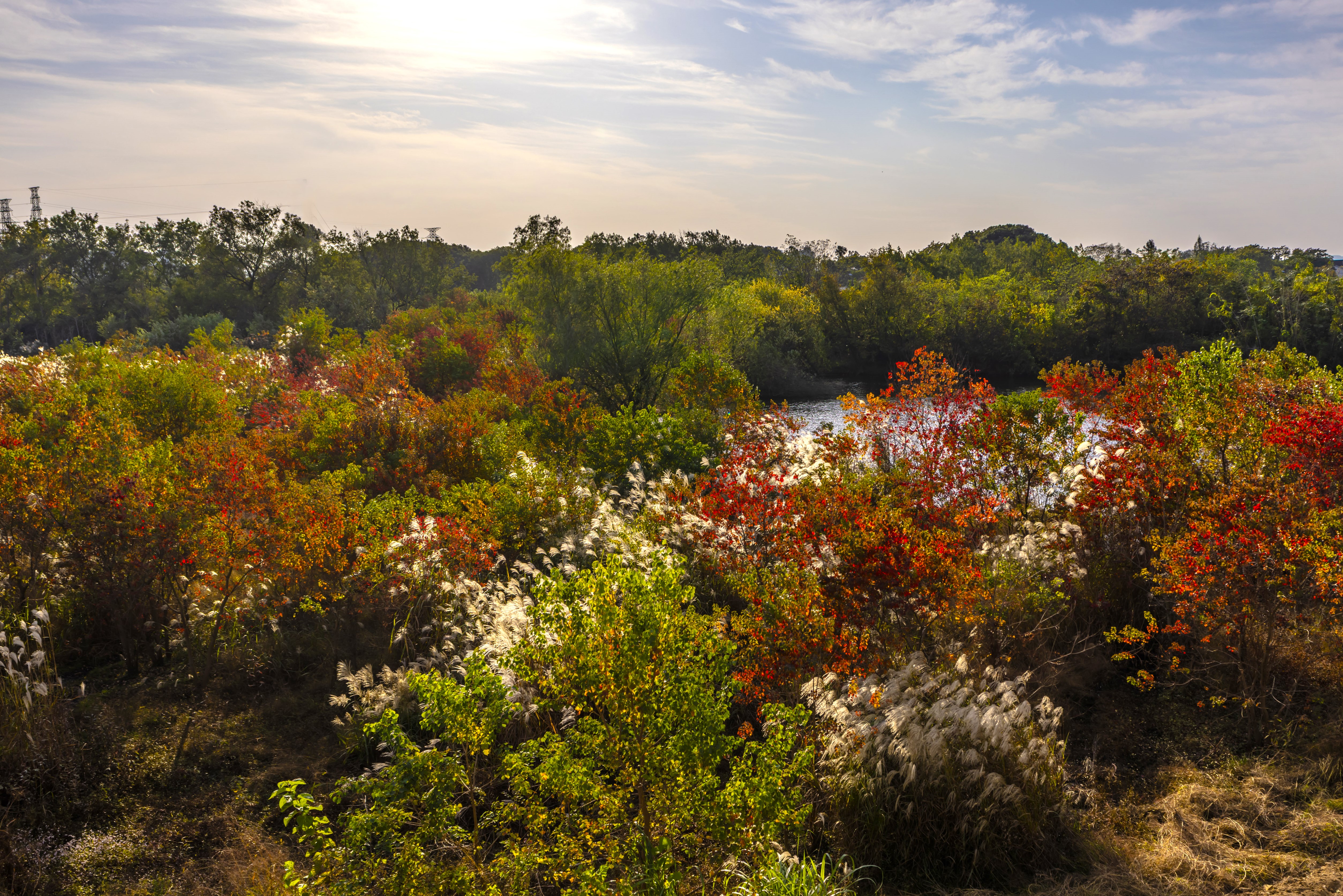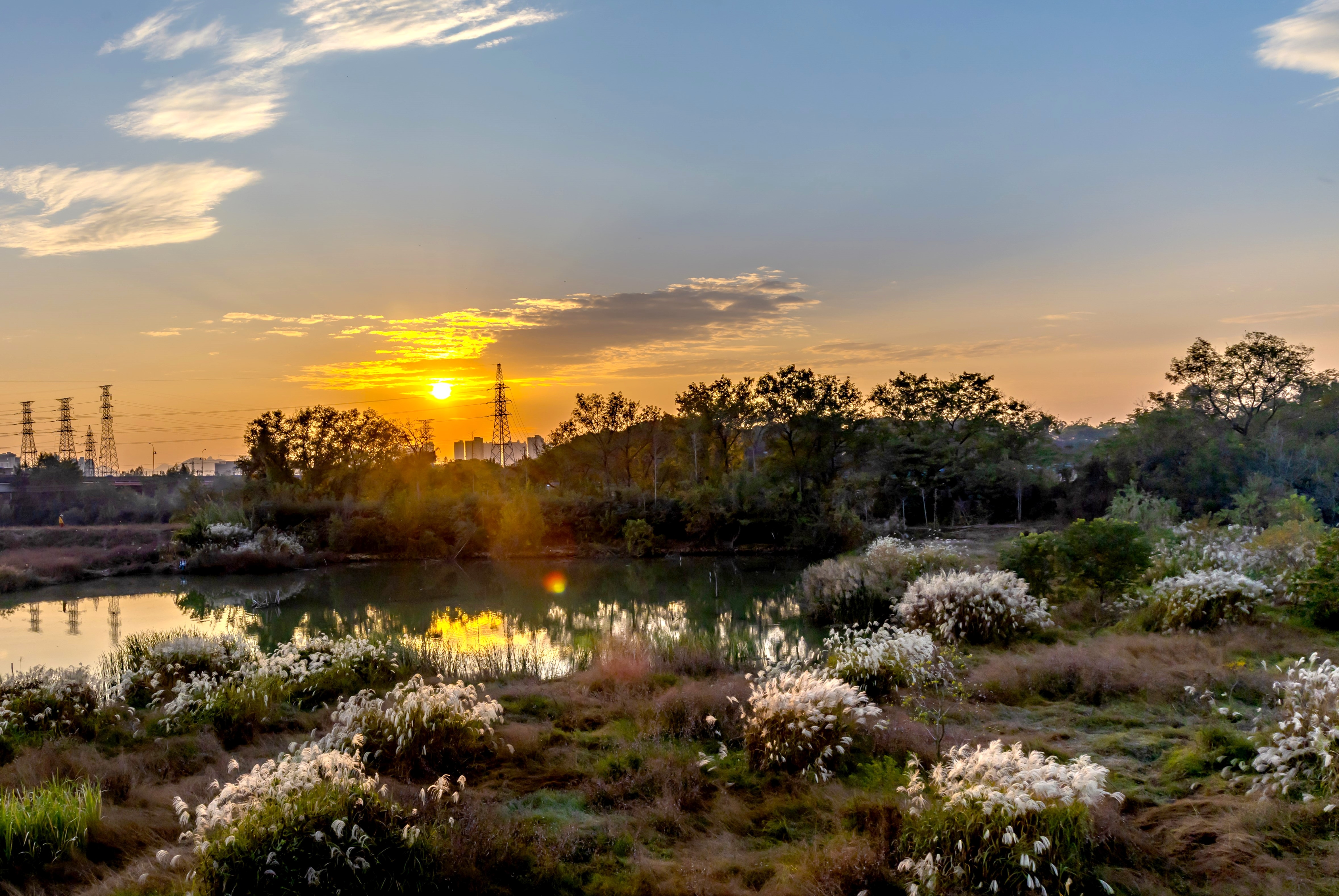 北湖草荡芦苇荡成了天然幕布。举起长焦,高压塔和钓鱼佬的剪影被晚霞框住,白茅草穗子晃着金光。谁说城市边缘拍不出好秋色?快门一按,水天都是我的摄影棚。