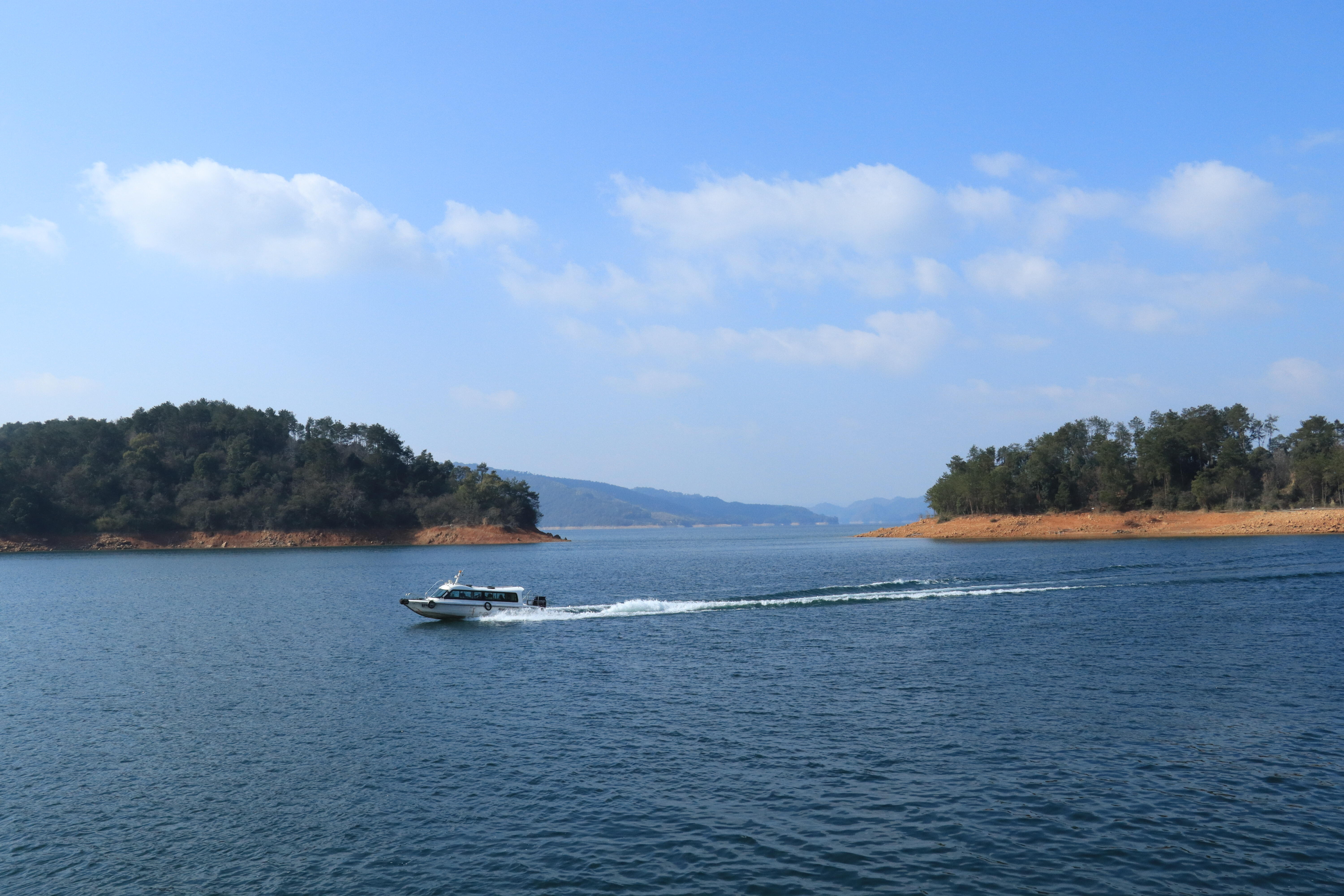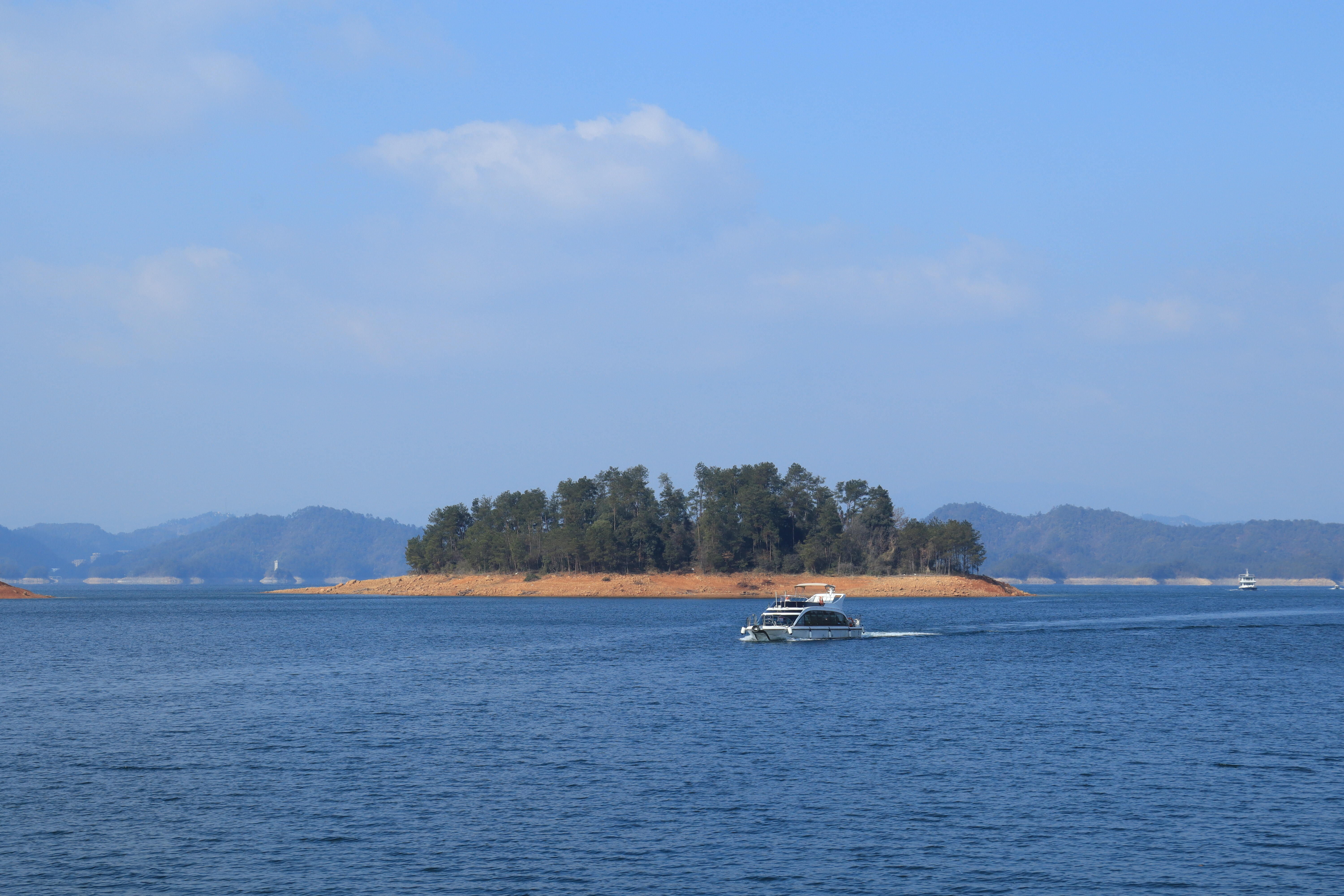 千岛湖湖光山色 冬日千岛湖,依旧澄净,天蓝水清,远山偶见白头,更添姿色。
