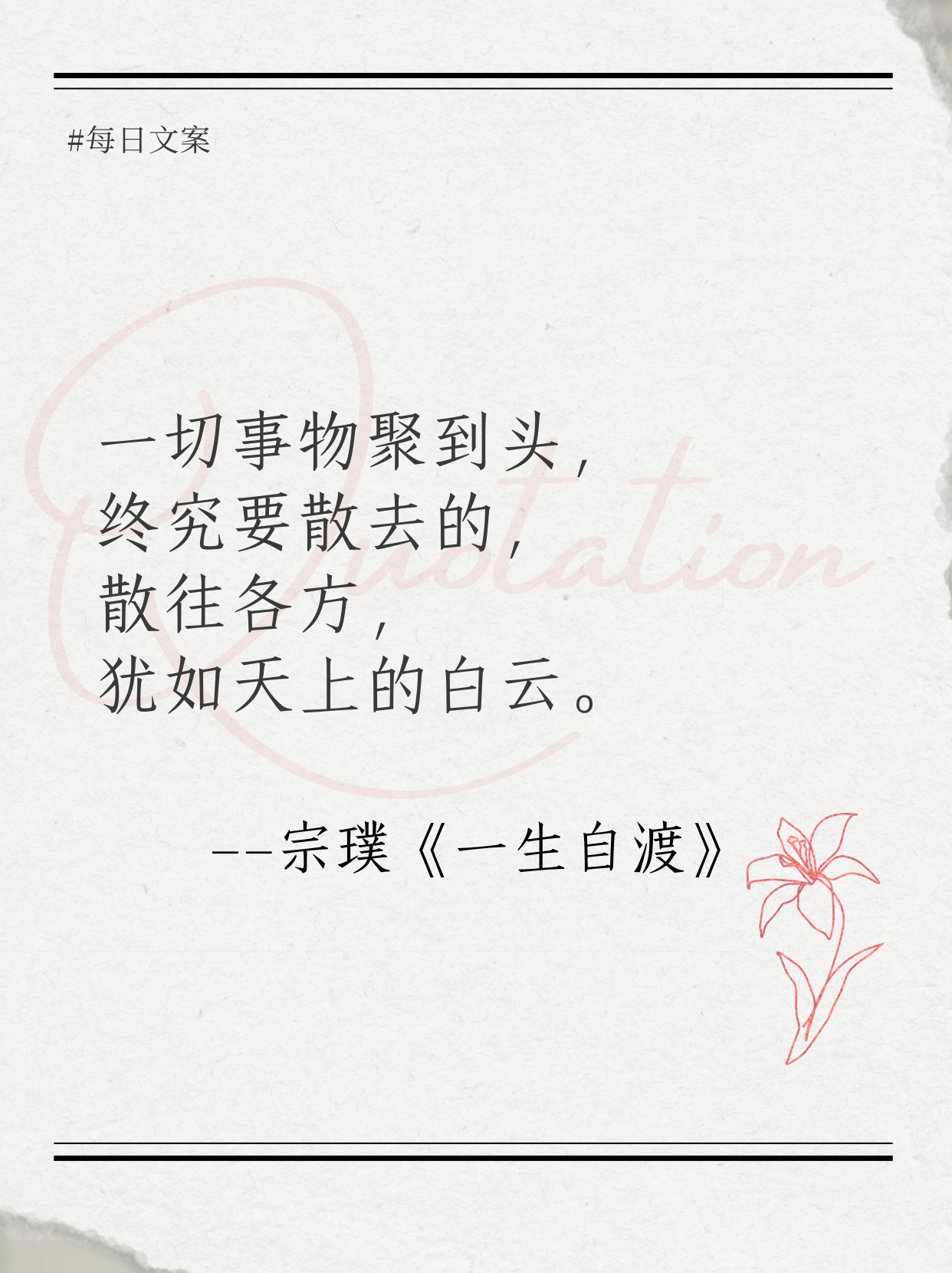 人生的本质,是用一颗心过滤生活的纷繁,终得生命的精华与真谛。 茅盾文学奖得主宗璞,将这份通透凝于《一生自渡》—— 写给年轻人的生活智慧之书,精选36篇流传甚广的散文。关于亲情,她道 “四十岁后,还是觉得睡在母亲身边最心安”;关于爱情,她言 “彼此的拥有,永远不能成为过去”;关于悲喜,她悟 “世界不只有我一个自己,痛苦也变温暖”;关于未来,她信 “落到谷底,便有了上升的希望”。 回顾成长、追忆亲朋、记录日常、感悟哲理,宗璞以细腻笔触,将世事复杂与生命悲喜,都化作淡定安然的光亮与温暖。 赴读书岛之约,共读《一生自渡》,便知自己才是人生的摆渡者,悲喜自渡,无宠不惊过好这一生。 (文案、制图