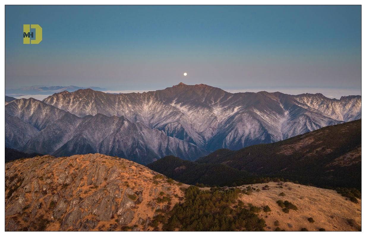 月落铅山独竖尖山巅,雪覆群峰,大自然的绝美画卷!登山看月,感受天地间的静谧与辽阔。#武夷山也姓赣##2026我在铅山过大年##品铅山年味#