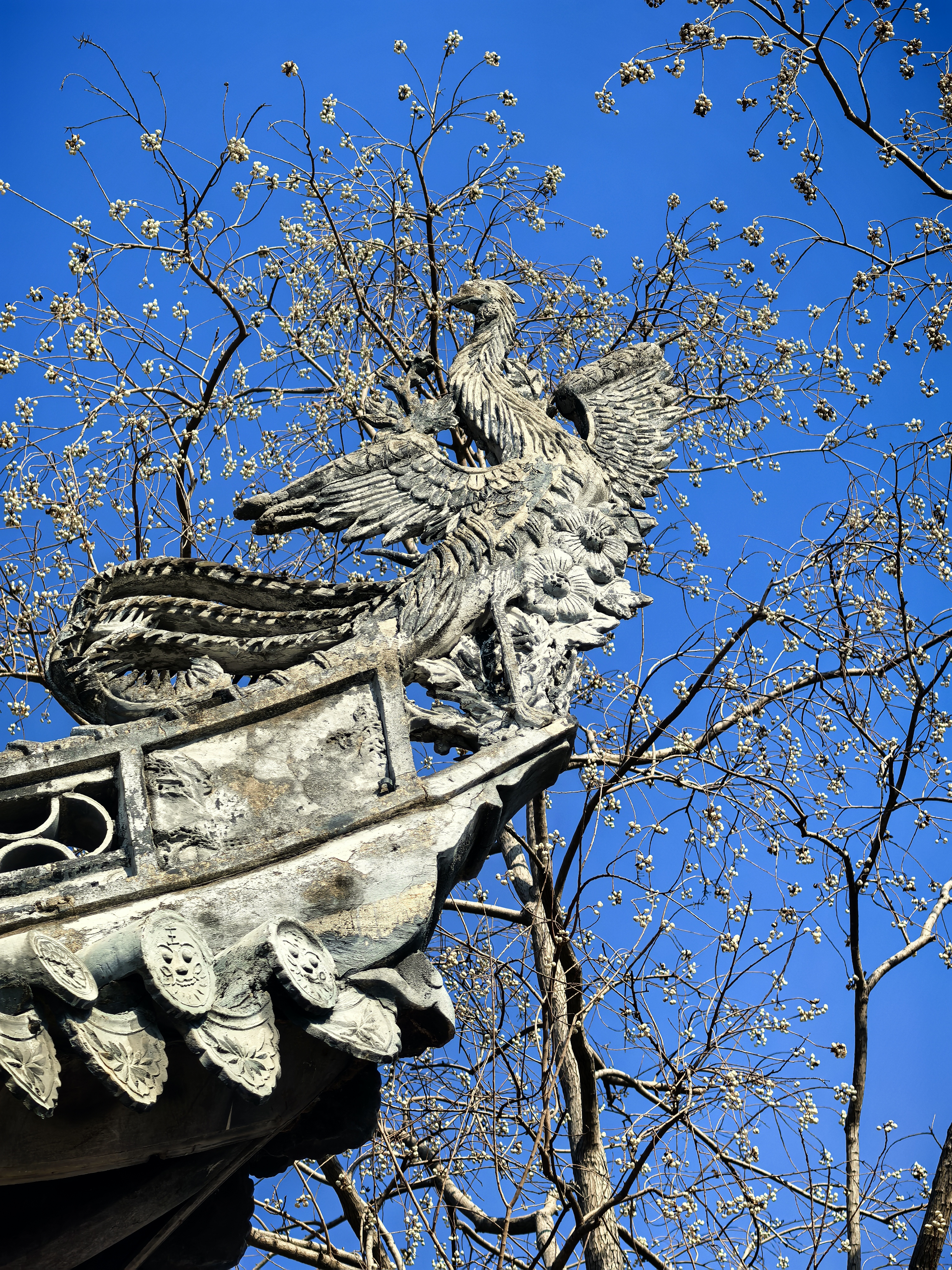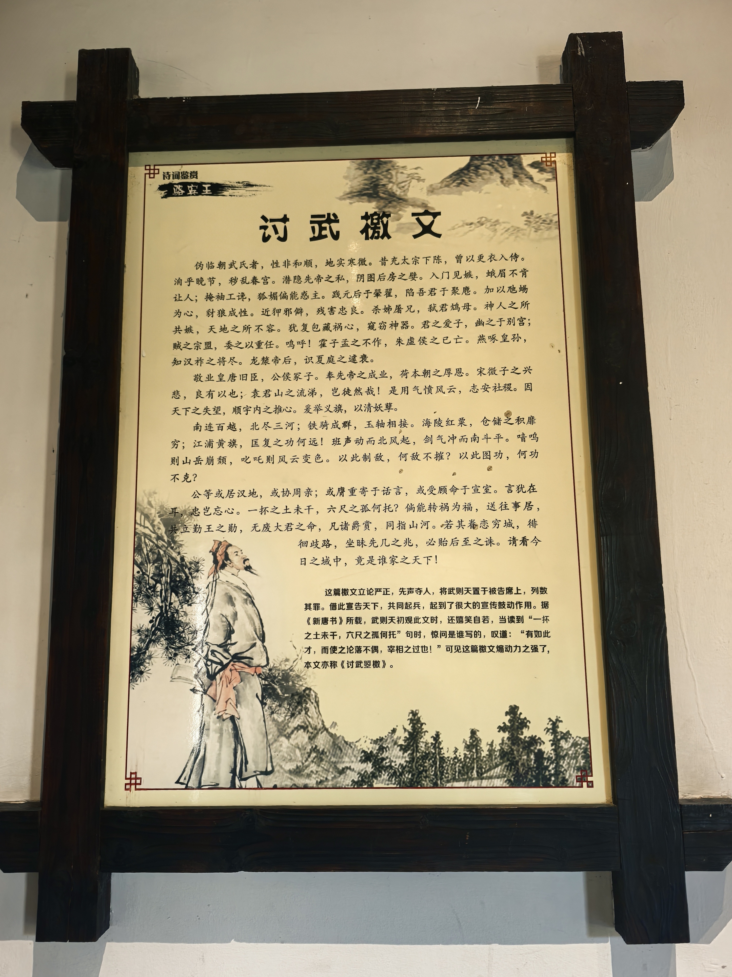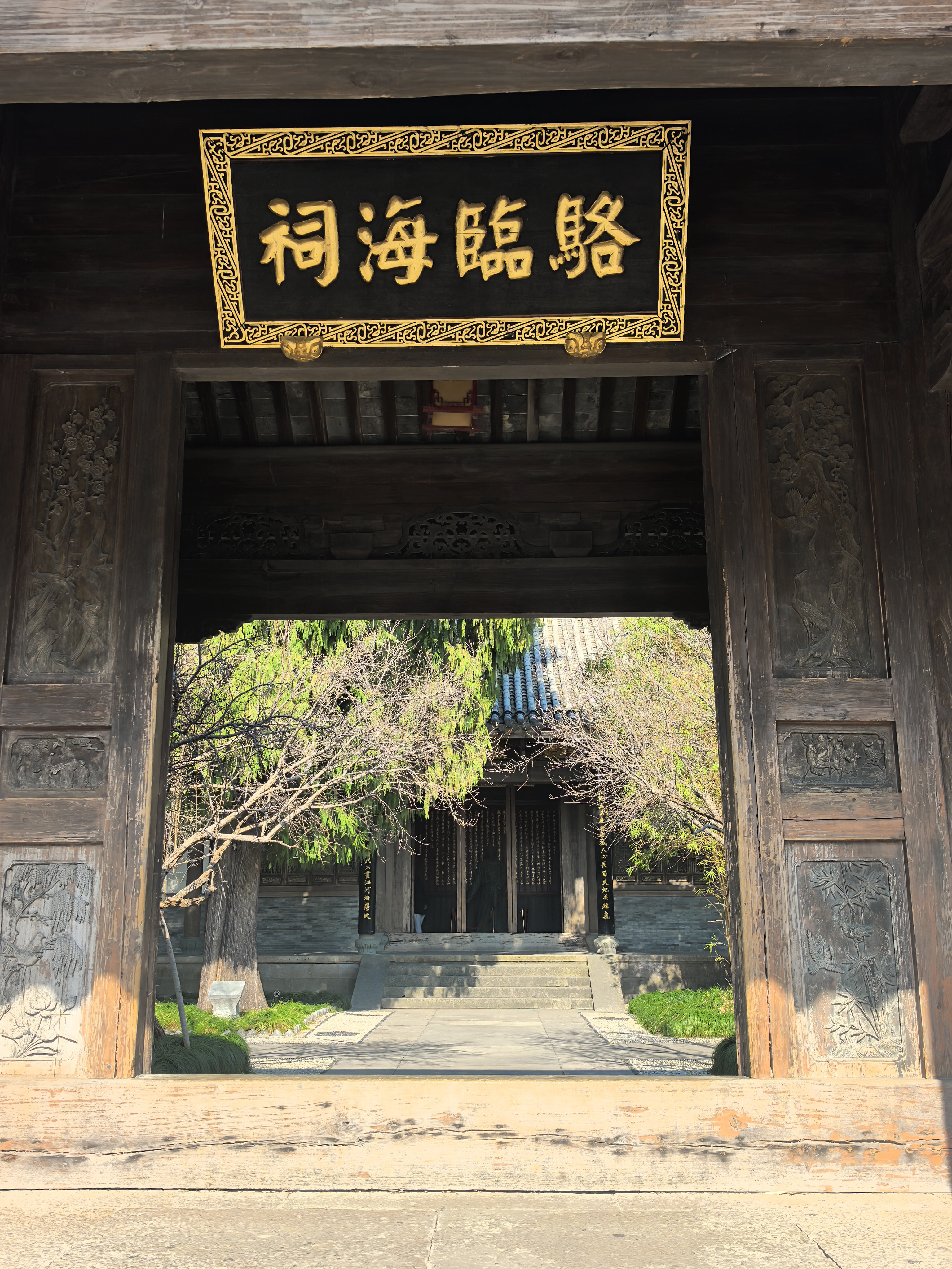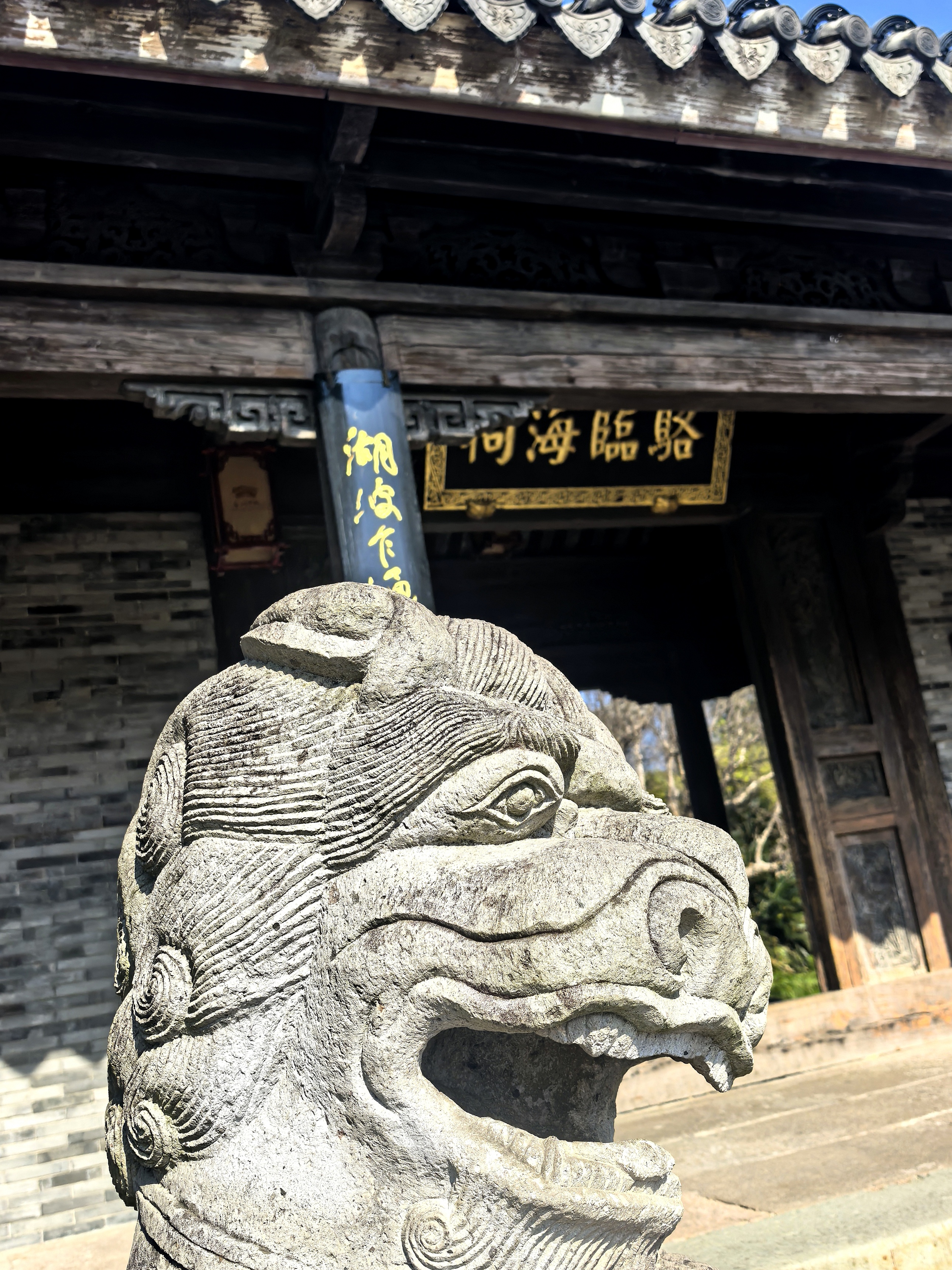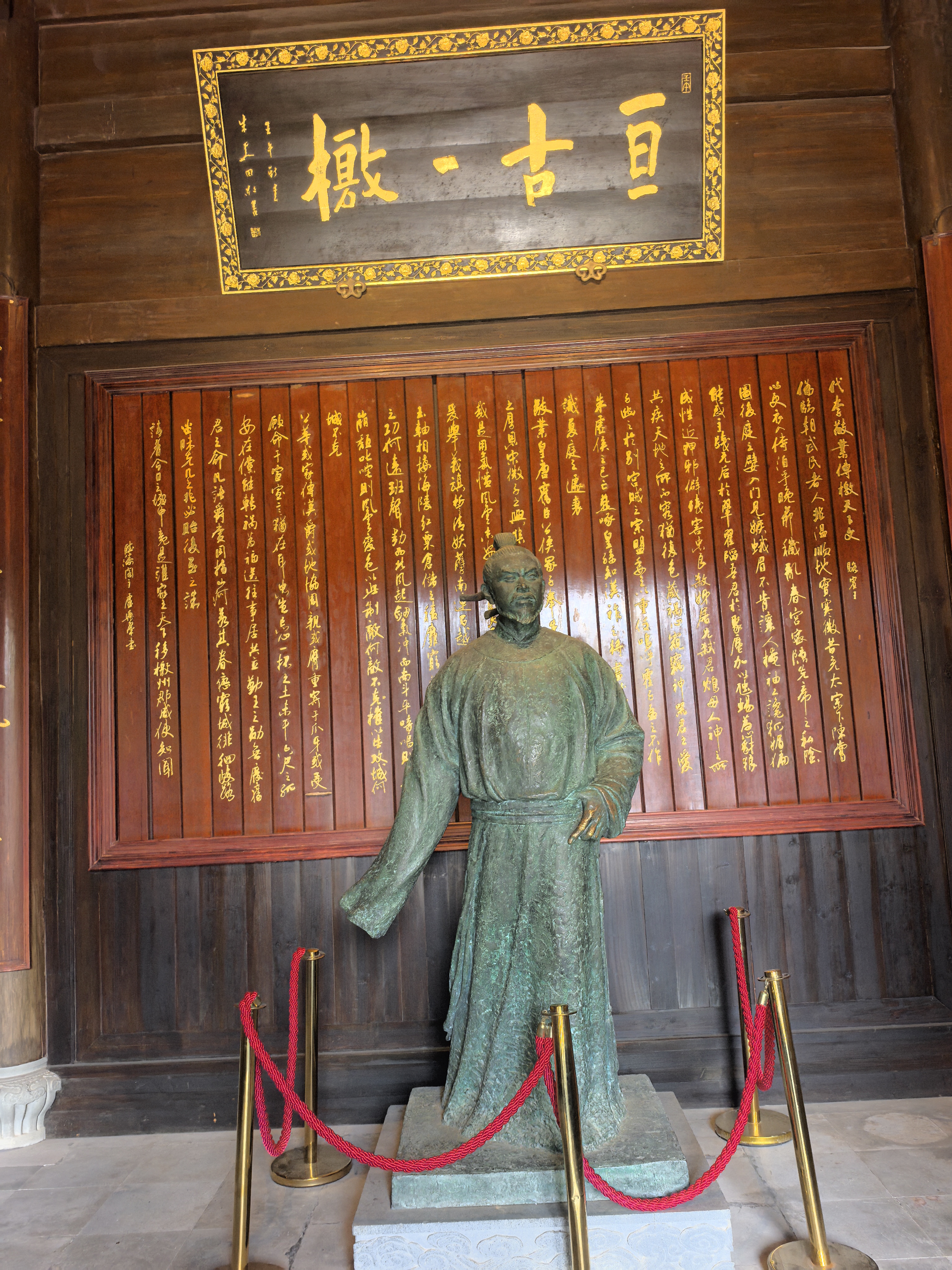 漫步于临海市的东湖公园,又与千年前的传奇人物骆宾王打了个照面。湖中心的骆临海祠,梅花开时曾来访过,如今柳色澄澄,山岚疏远,免费开放后公园人流增加,来的人自然要经过这个祠堂了解他与临海相连的历史。 骆宾王,这位自幼才情出众的唐人,一首《咏鹅》让童稚之音穿越千年,至今仍在耳畔回响。而那篇《讨武曌檄》,文辞犀利如剑,气势磅礴似雷,更是让他名震天下。 白墙黛瓦的祠院,台门素朴,屋宇静穆,院内古柏桂子相映,门口柱子上有一副匾额:“山月常明,应知诗杰丞临海;湖波乍涌,恍见文澜动则天。” 对联字句凝练而意境深远,上联暗喻骆宾王作为诗坛俊杰在临海任职的经历,后联寥寥几字写尽了他一生的文采卓绝与忠肝义胆。 唐高宗调露二年(680),骆宾王被贬为临海县丞,在任期间,他写下了《久客临海有怀》一诗,诗中“欲知凄断意,江上涉安流”,充分流露出报国无门的凄凉境遇。他的诗集被后世称为《骆临海集》,这座祠堂便是为纪念他而专门建造的。 骆宾王的塑像端坐其中,目光深邃而坚定,仿佛仍在凝视着这片他曾治理过的土地。当年在此为官时,心怀苍生,为百姓谋福祉;又在困境中,以笔为刃,抒发内心的壮志豪情。 虽然斯人早已远去,但他的才情和风骨,早已融入了这片土地,成为了浙东唐诗之路上不可或缺的一部分。