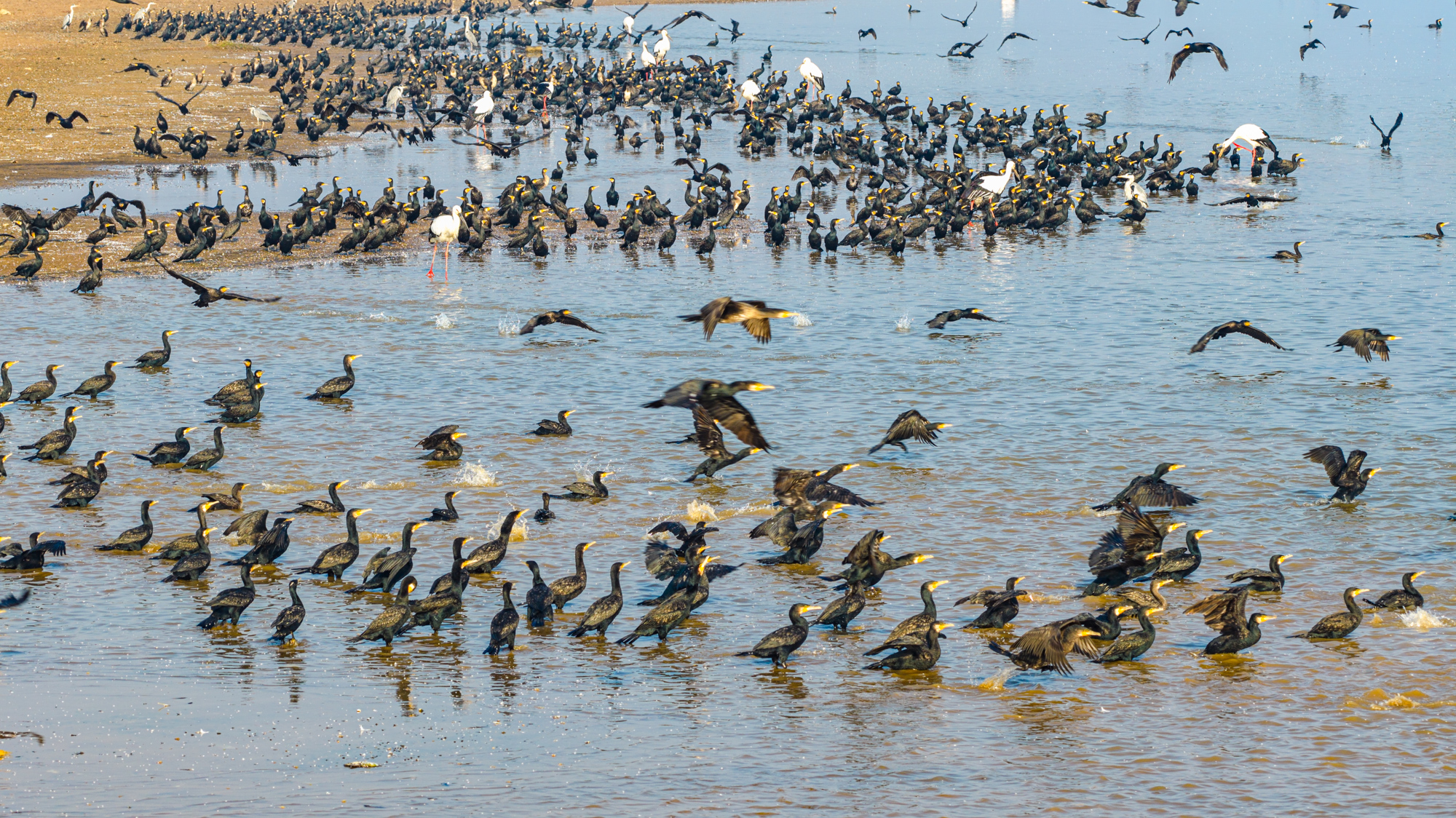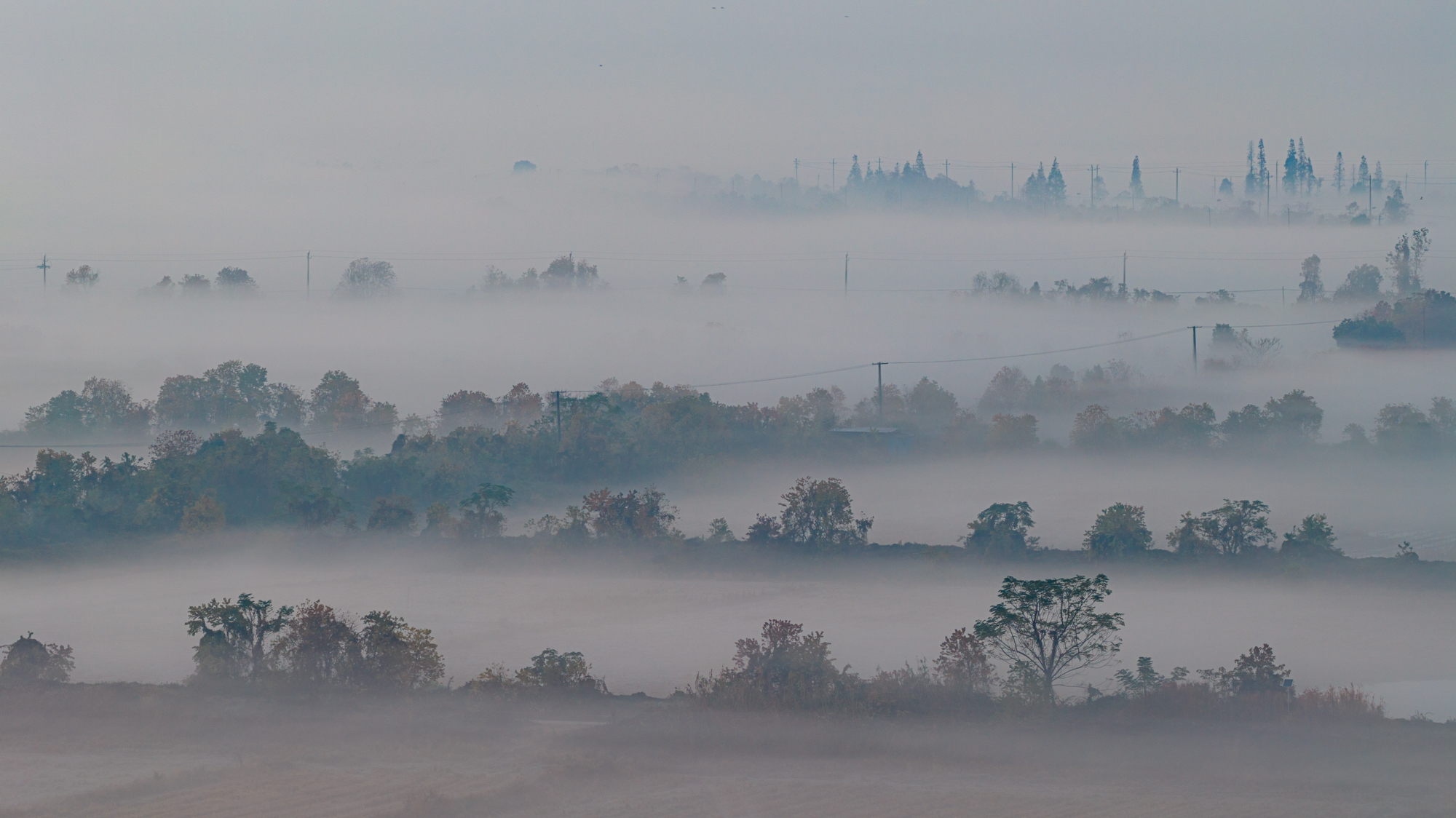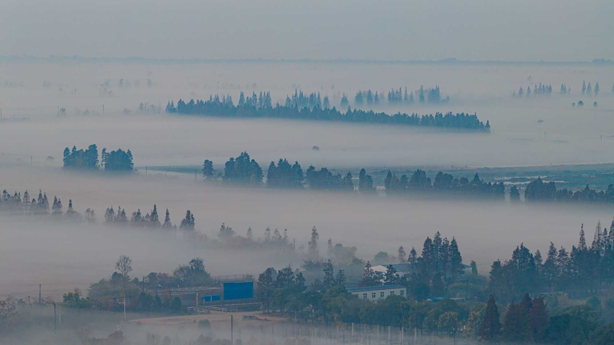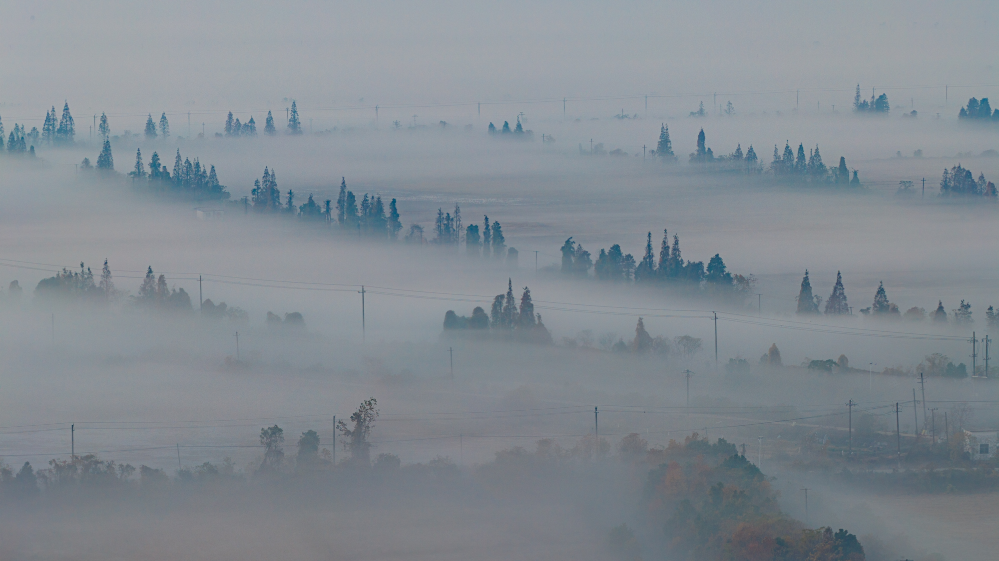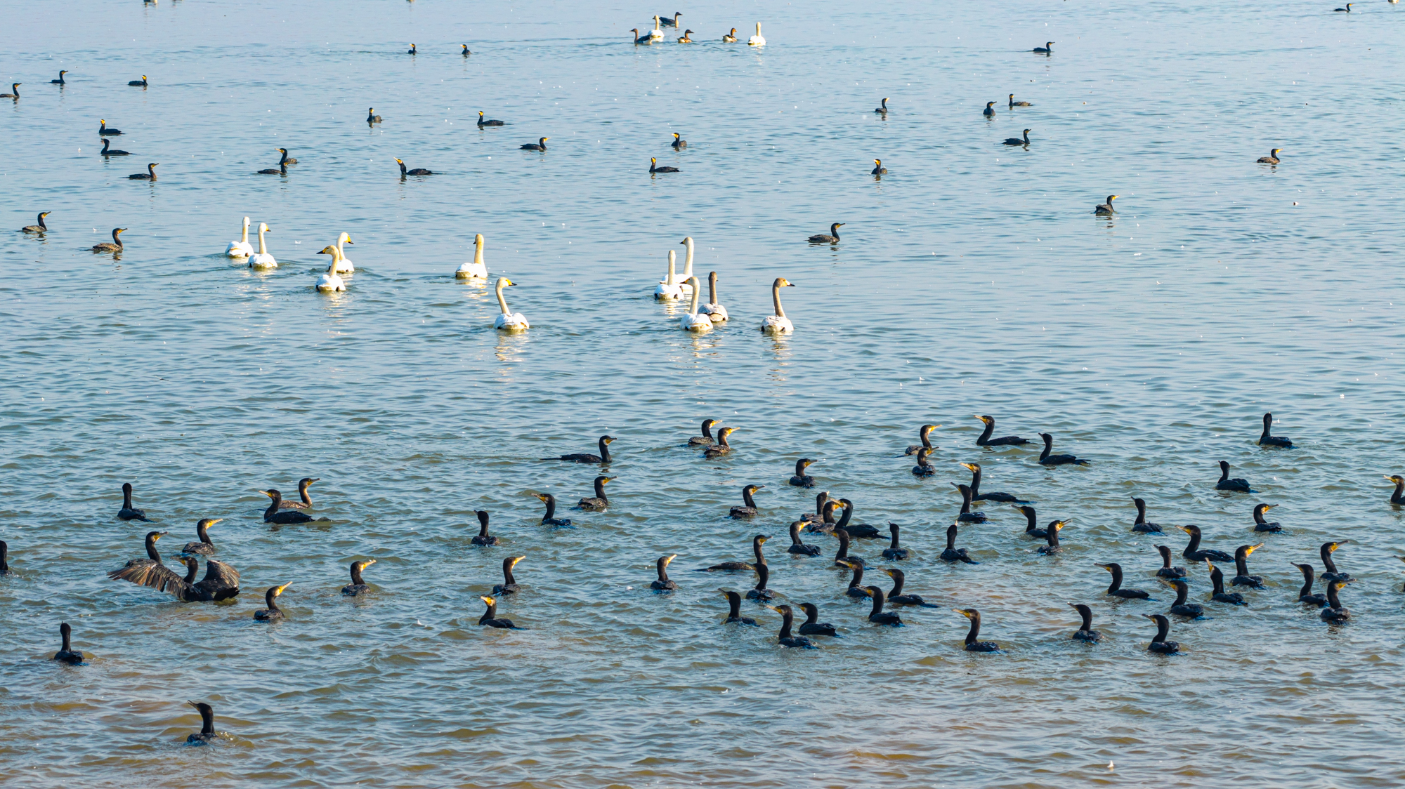 【江西余干:雾锁康山堤 霞染鄱湖岸】鄱阳湖畔的江西省上饶市余干县康山大堤,清晨薄雾氤氲。红日破雾升腾,橙粉霞光漫染天际,水杉林隐于雾中,如写意水墨;湿地湖面波光粼粼,天鹅、鸬鹚翩跹嬉戏。雾、霞、林、鸟相映成趣,勾勒出一幅灵动的冬日生态图景,引得游人纷至沓来。