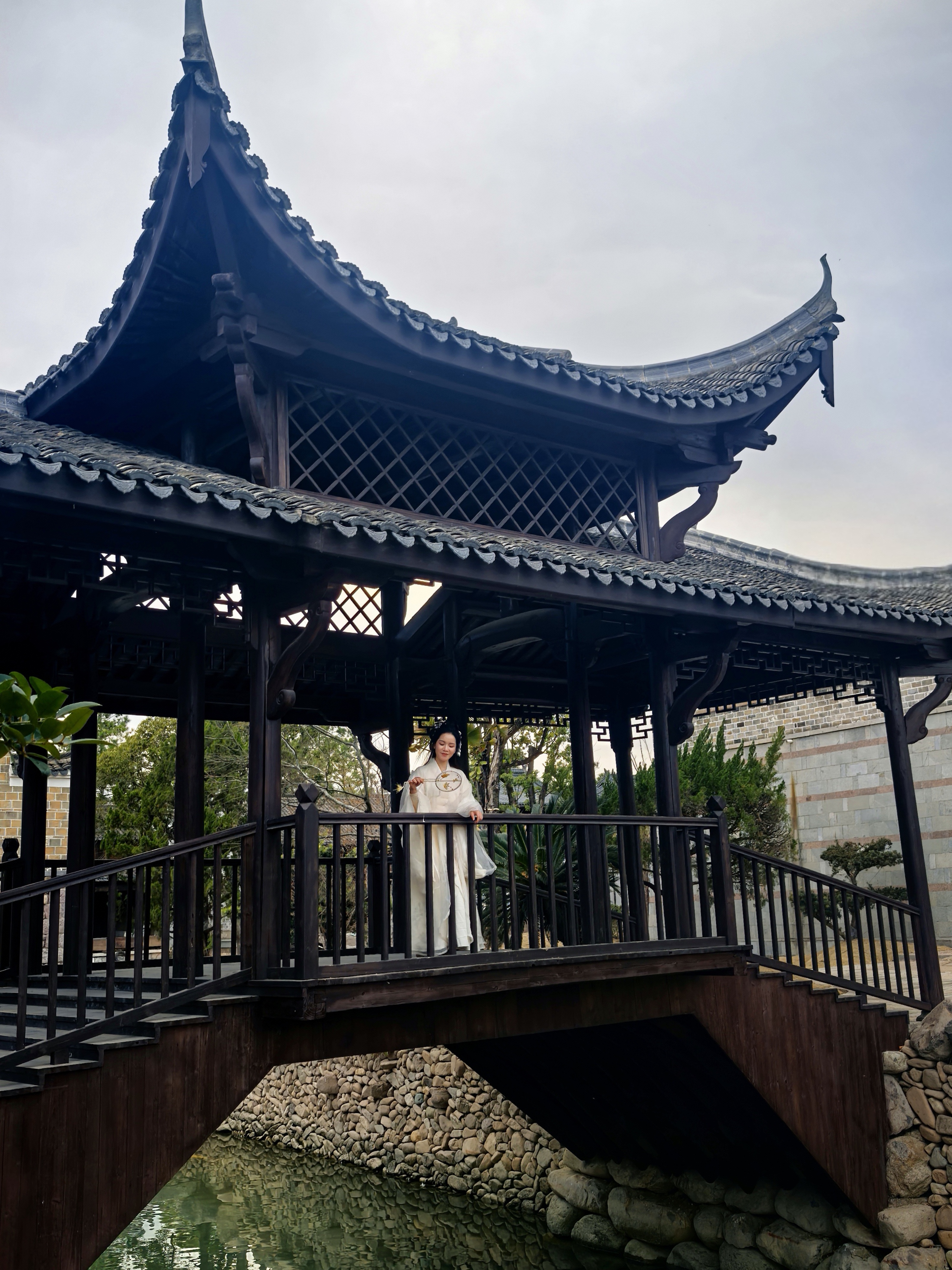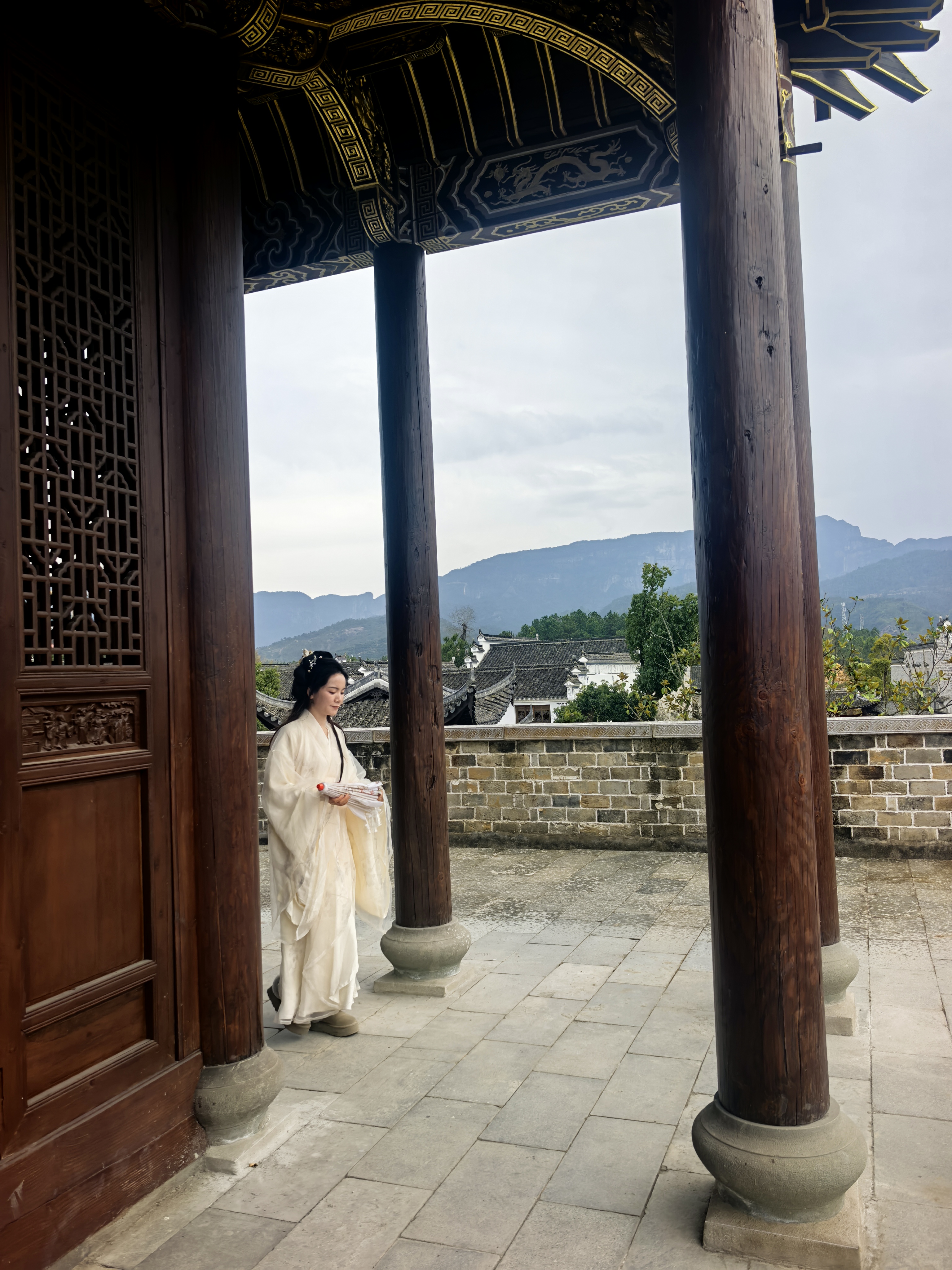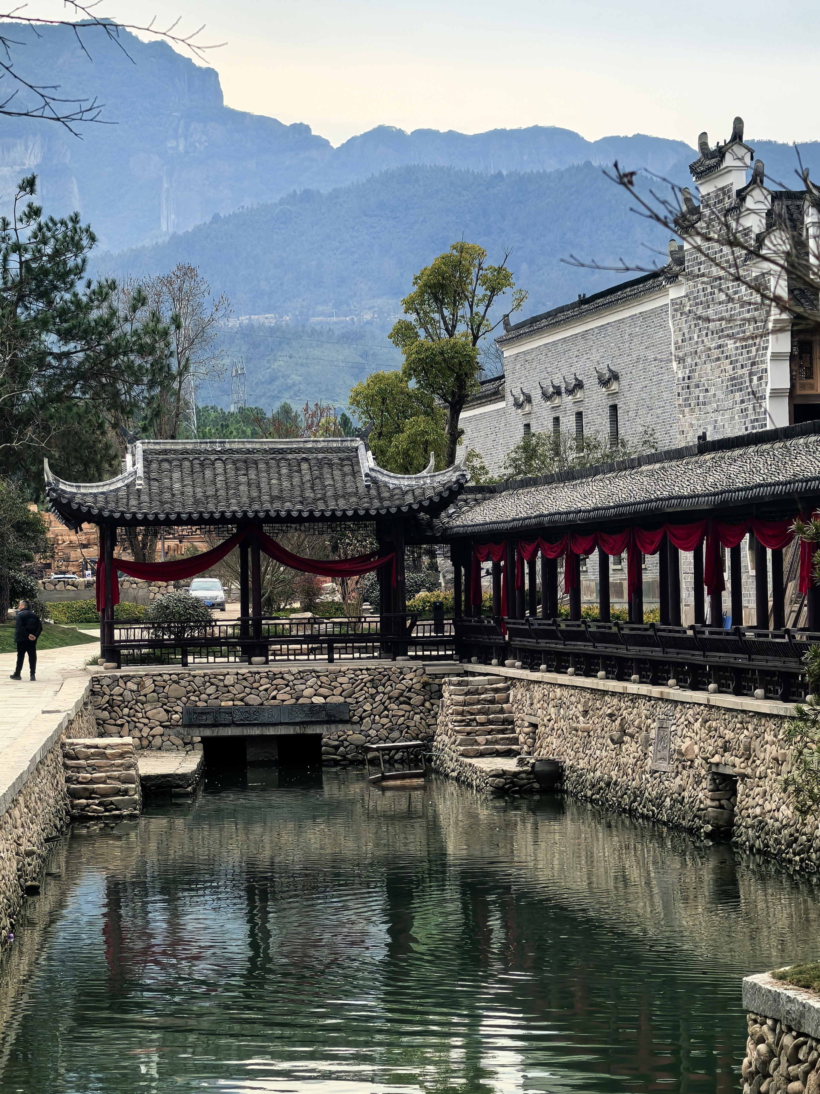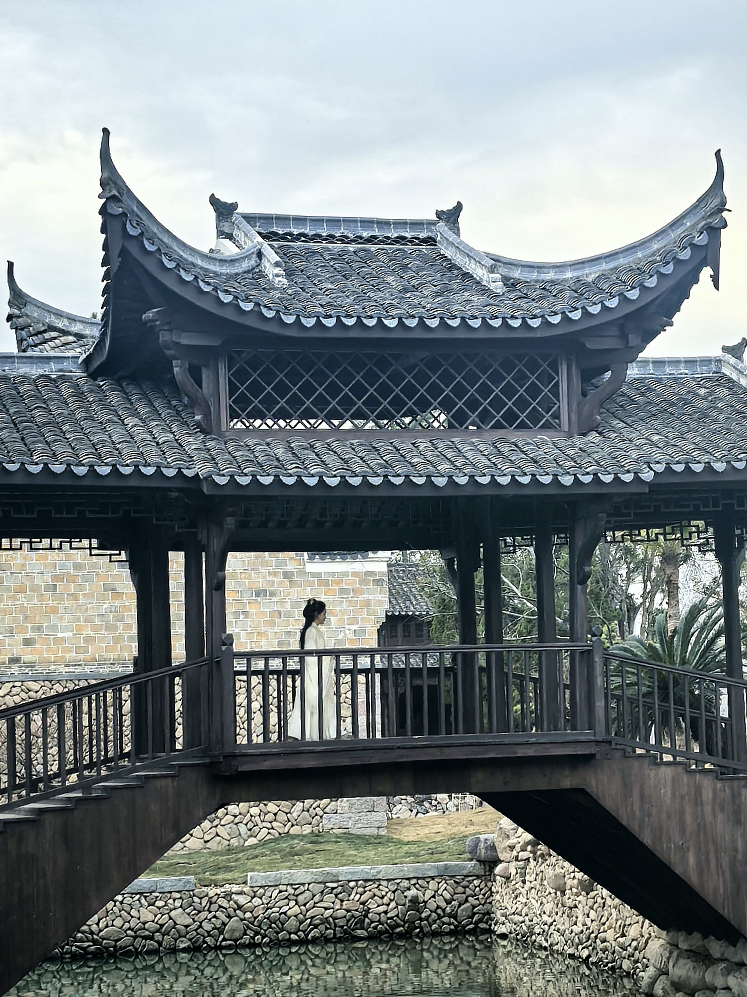 在风景如诗的神仙居畔,藏着一处令人惊叹的深宅大院,它宛如一颗璀璨明珠,成了游人争相一睹的新胜境。 宅院建筑群位于白塔溪边,外面苇草萋萋,里面古风浓浓。踏入院中,仿佛穿越千年时光。远处城楼巍峨矗立,似在默默诉说着往昔的故事;戏园是一个完完整整的四合院子,古朴雅致,仿佛还回荡着那悠扬婉转的唱腔。 曲桥蜿蜒,横跨在潺潺流淌的小溪之上,溪水清澈见底,鱼儿在水中自在嬉戏。十几座古色古香的建筑错落有致地分布其间,飞檐斗拱,雕梁画栋,尽显古韵风姿。 爱美的旅人穿梭其中,有的顾盼远眺,将这如画美景尽收眼底;有的持扇倚栏,姿态优雅,步步生韵。白衣飘飘的佳人,如灵动的仙子,翩跹掠过错落的雕栏,衣袂飘飘间,书卷染就了斑驳的时光。 无论是喜动还是喜静,皆像从古韵画卷中款款走来,在这方天地里,定格成属于自己的独特风采。