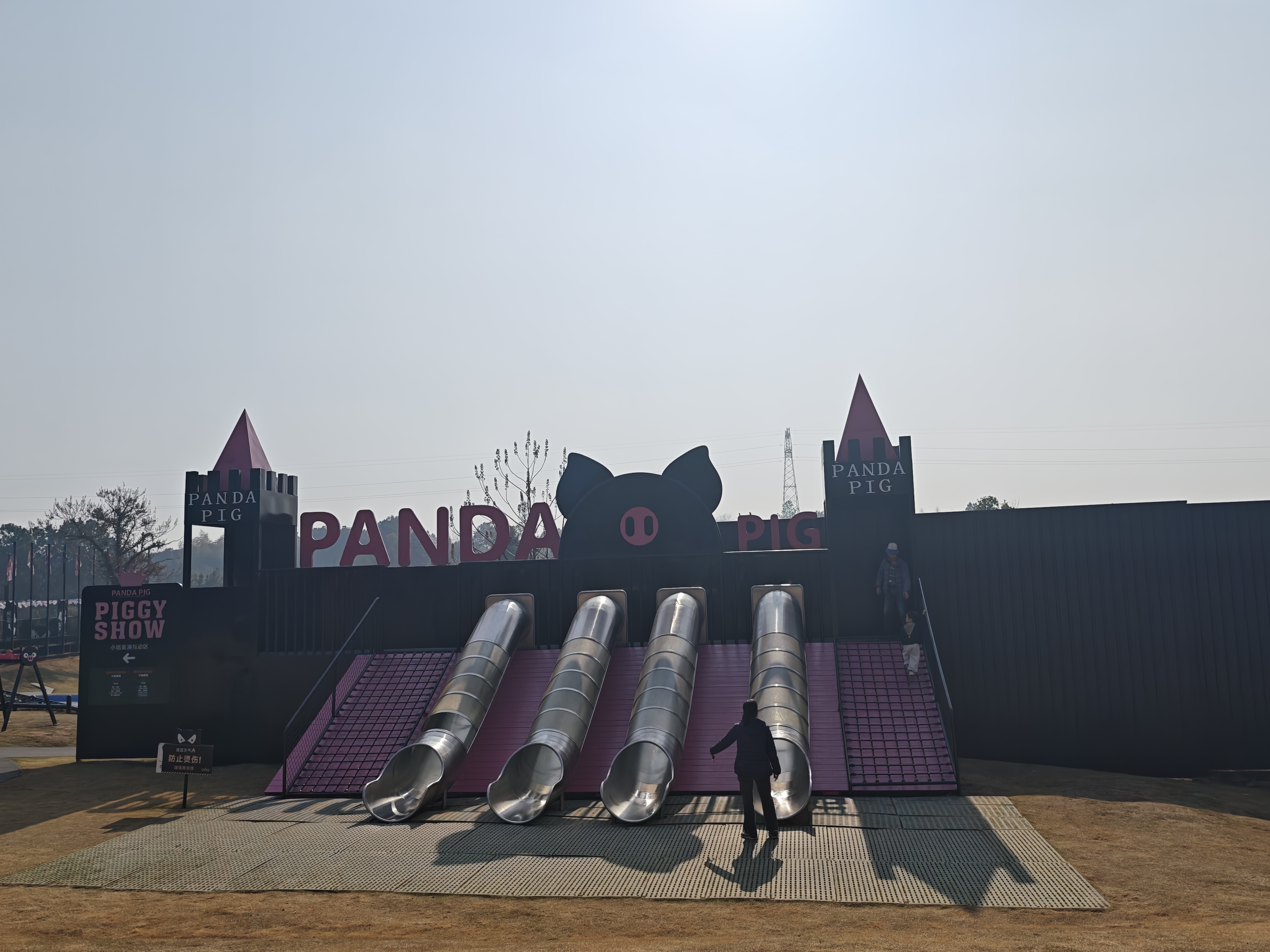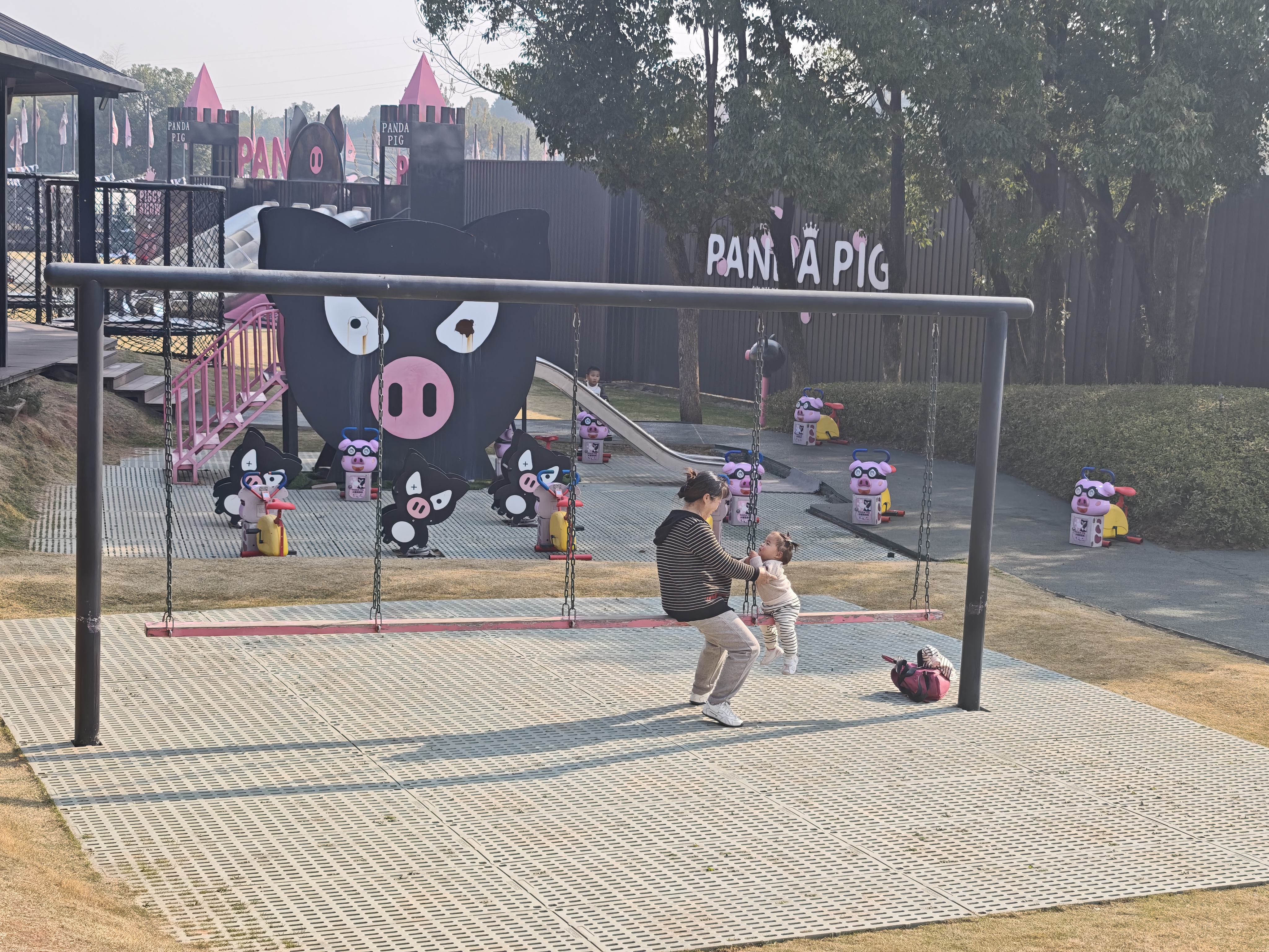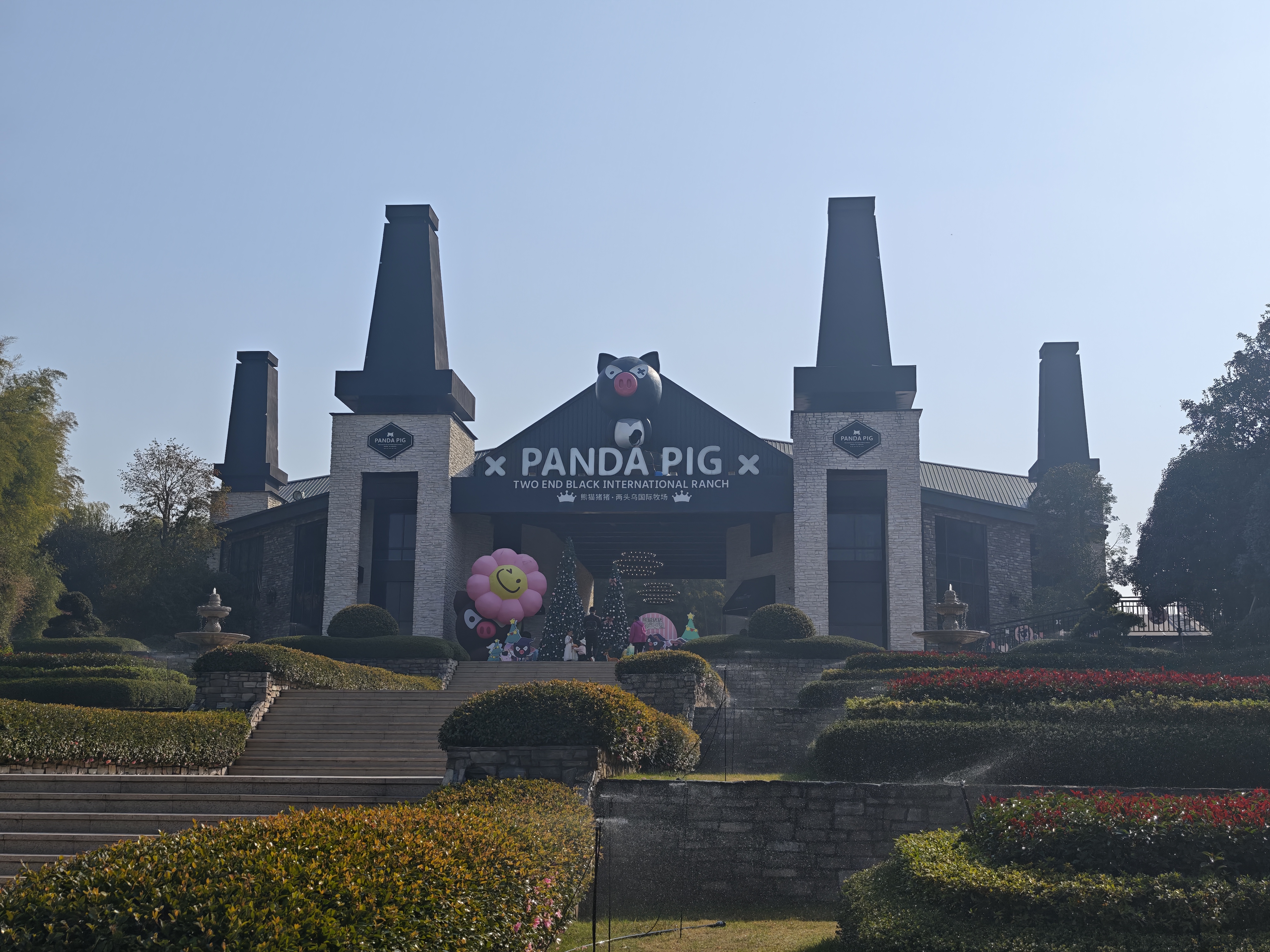 金华熊猫猪猪两头乌牧场以黑粉色系建筑为主,是集养殖观光、亲子游玩为一体的主题牧场。