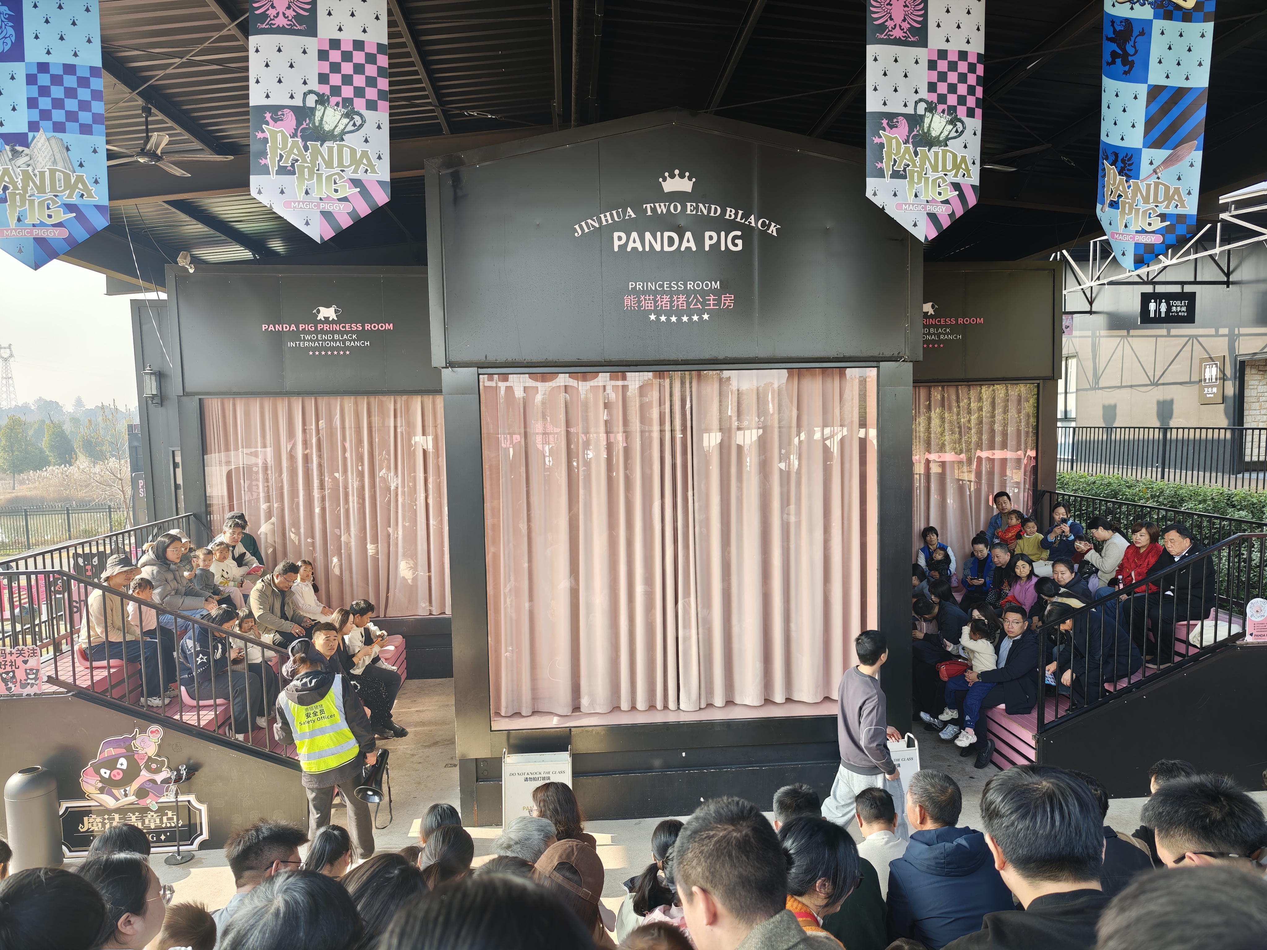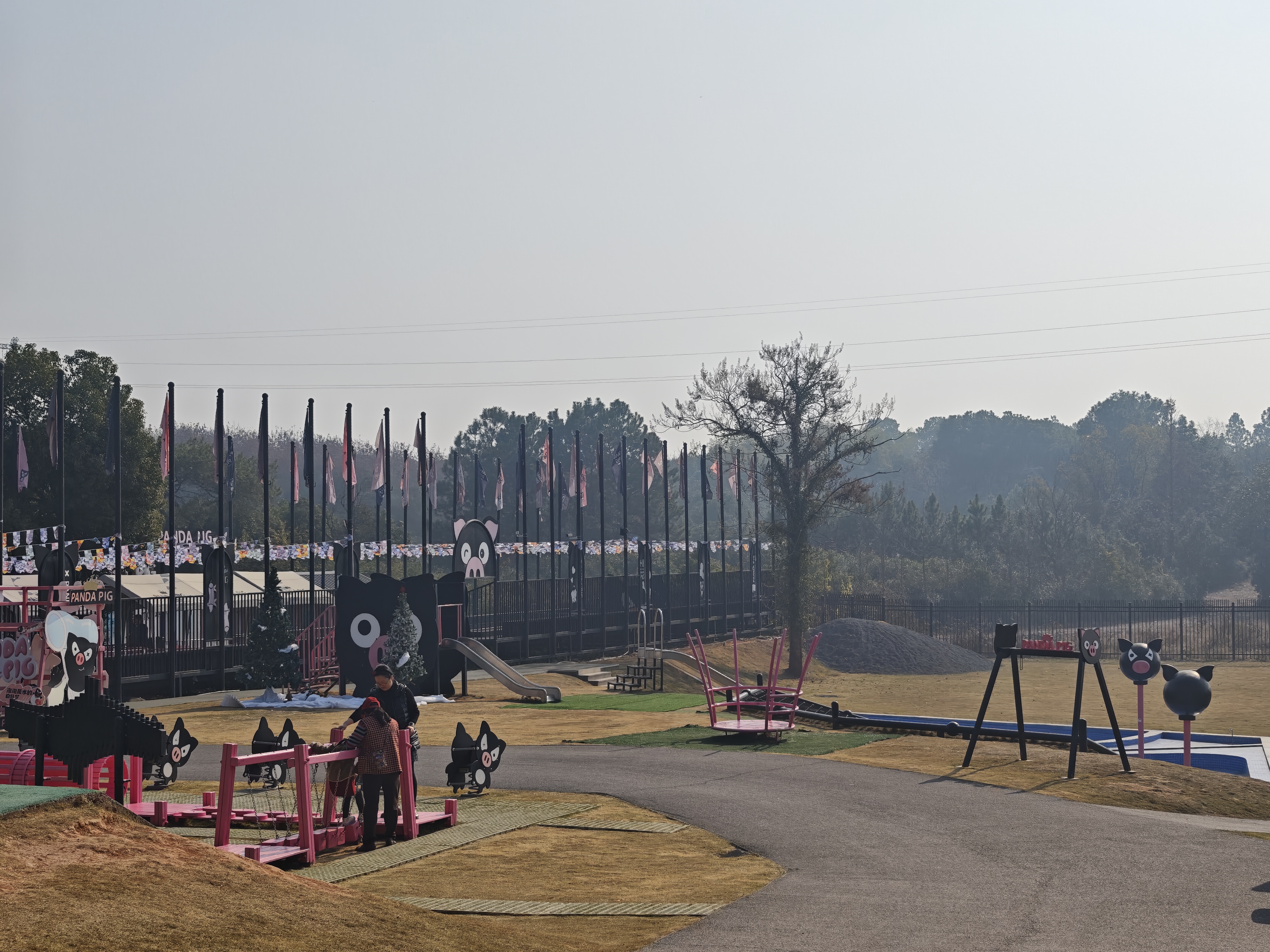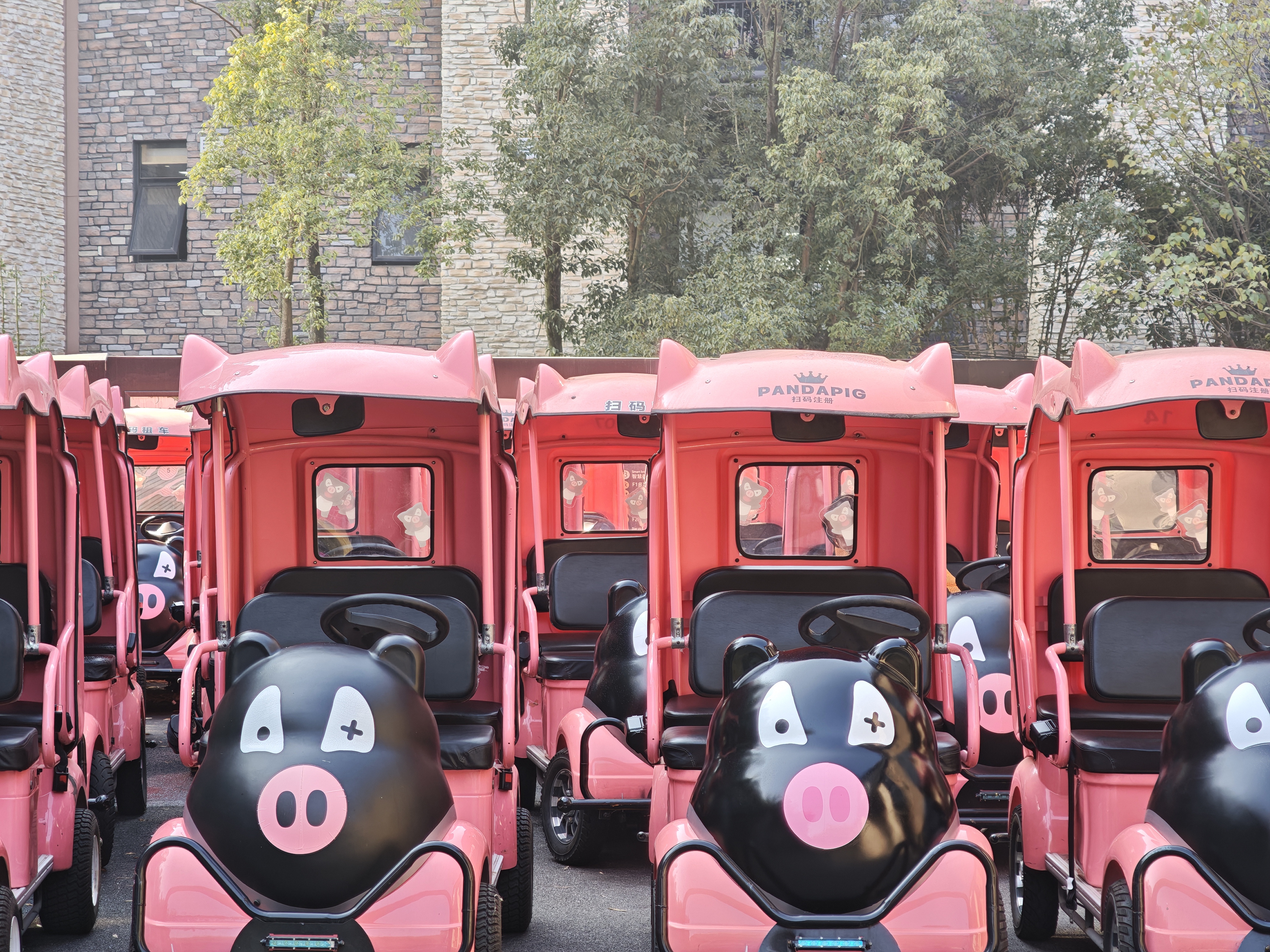 金华熊猫猪猪两头乌牧场以黑粉色系建筑为主,是集养殖观光、亲子游玩为一体的主题牧场。