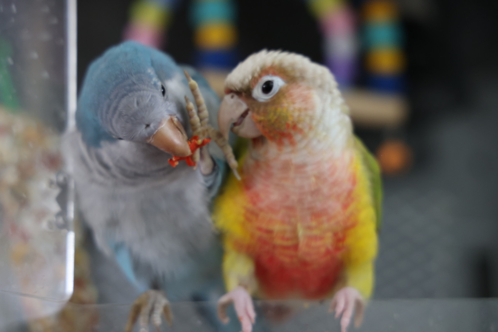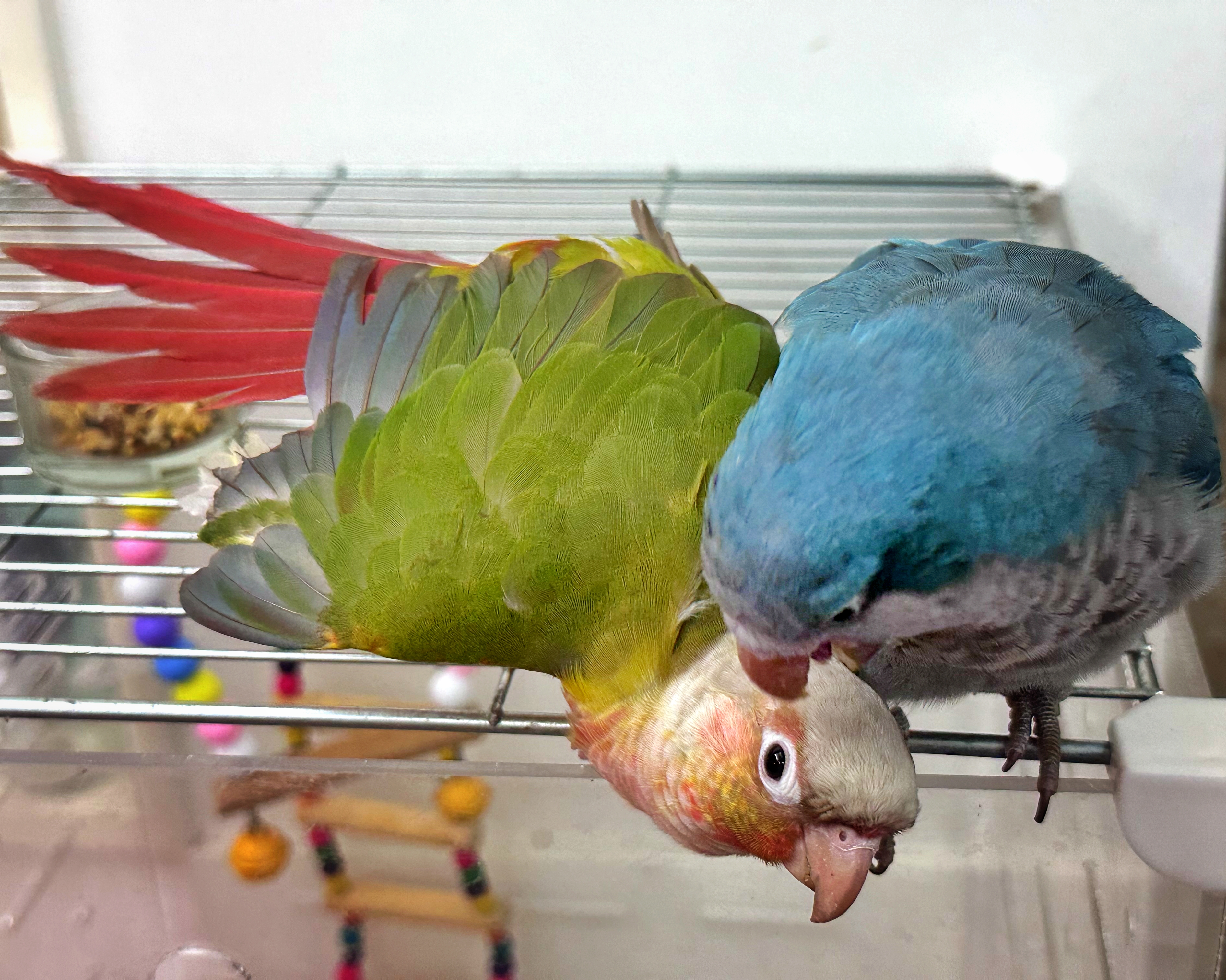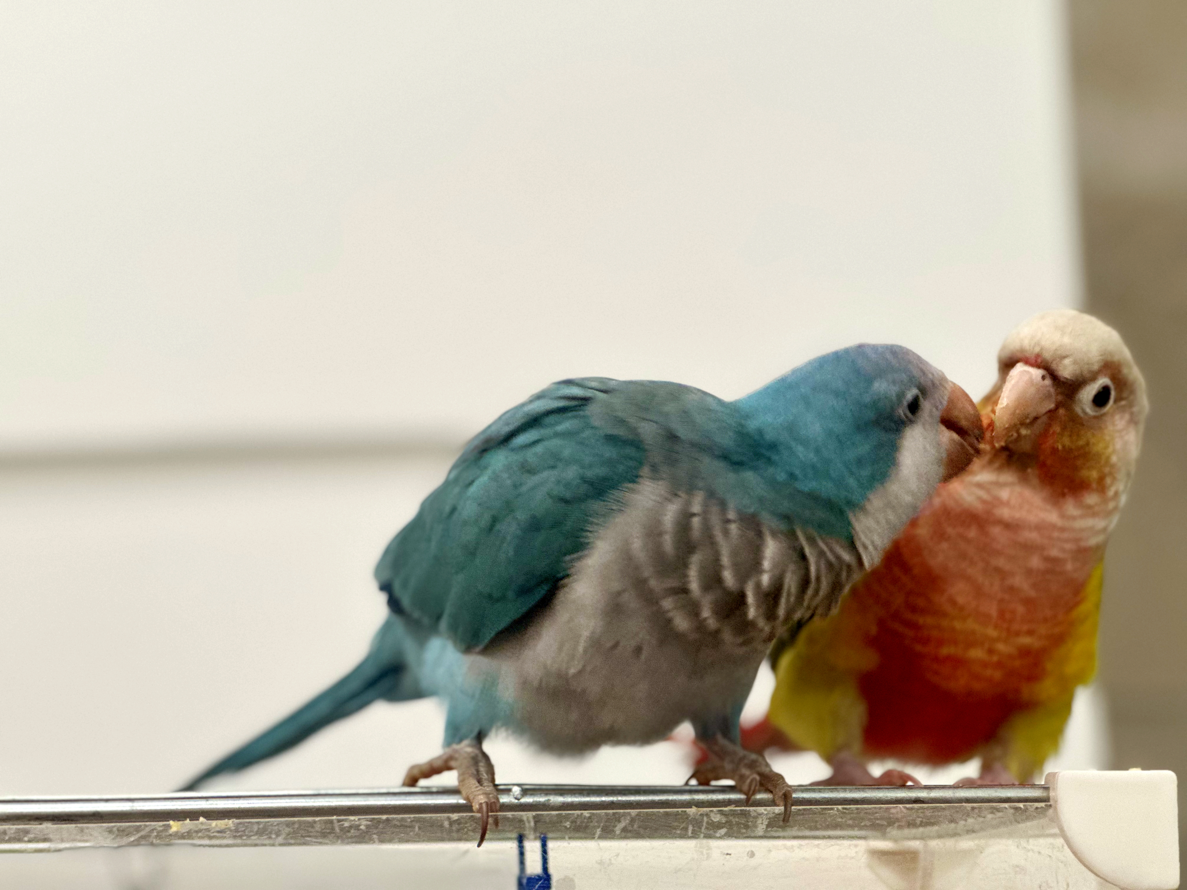 《好朋友》我家的小太阳鹦鹉和小和尚鹦鹉是一对形影不离的好朋友。它们一起吃食,一起玩耍,互相梳理羽毛,叽叽喳喳说着悄悄话,每天都给家里带来满满的欢乐与生机。拍摄于2025年