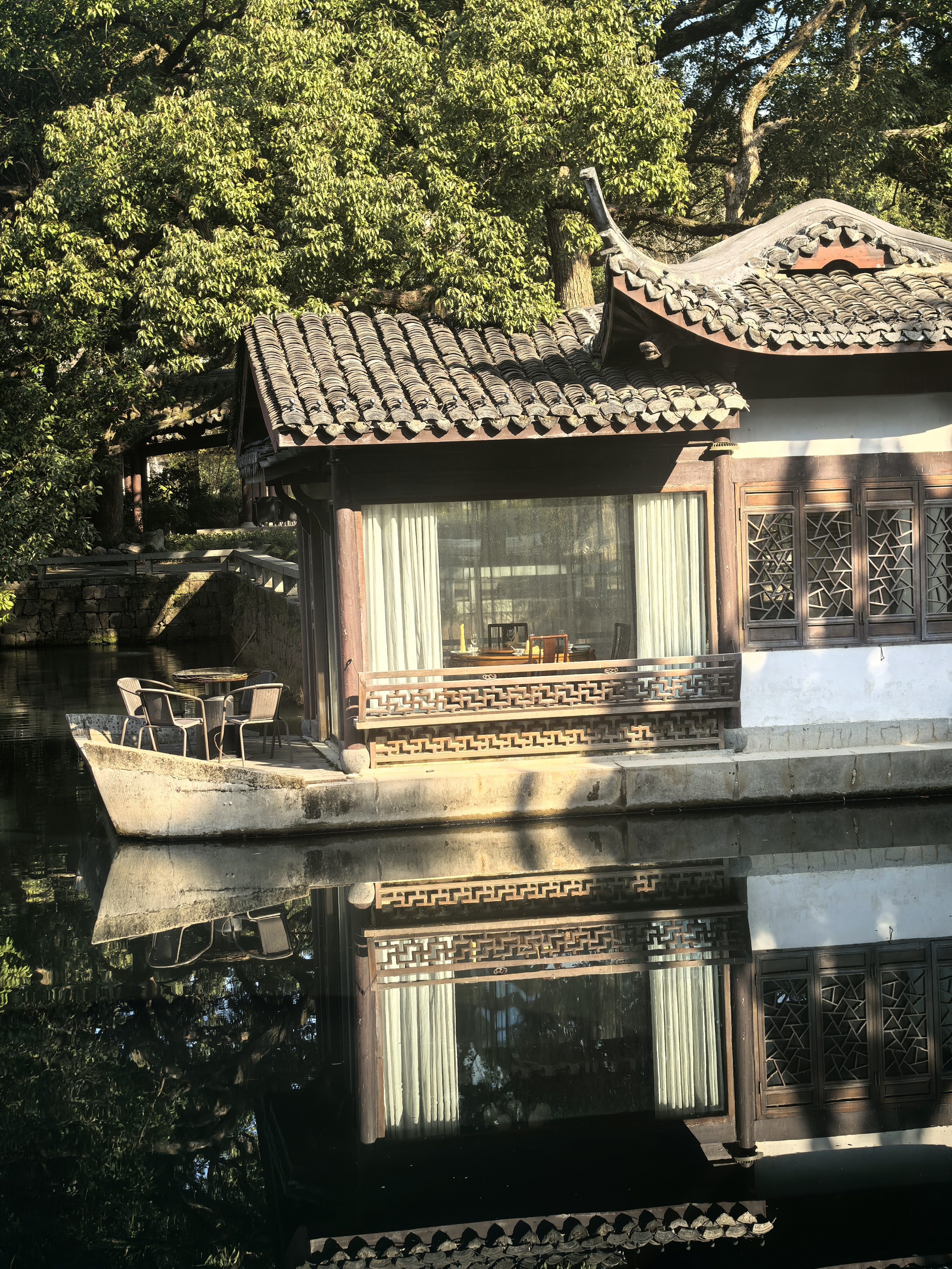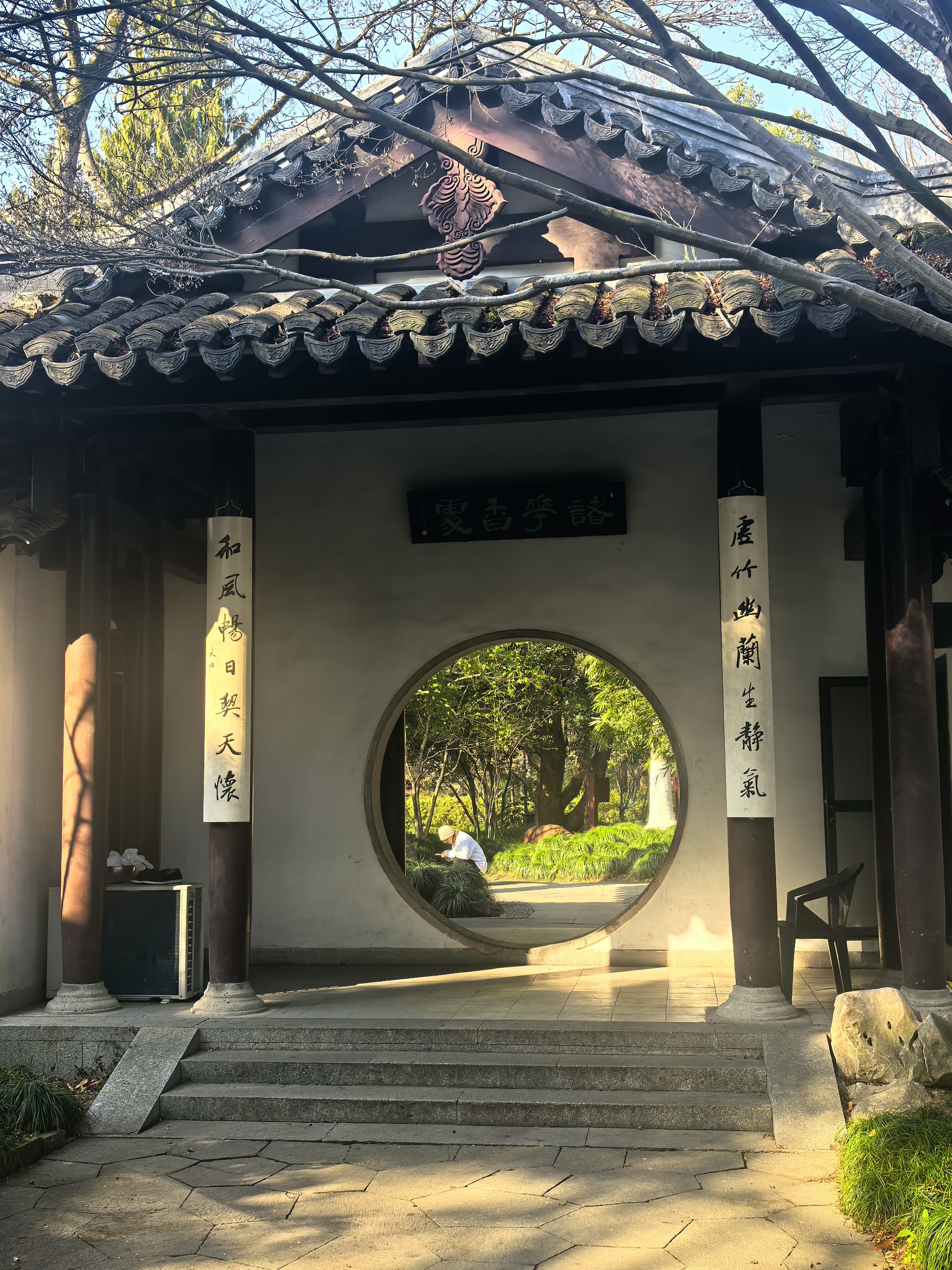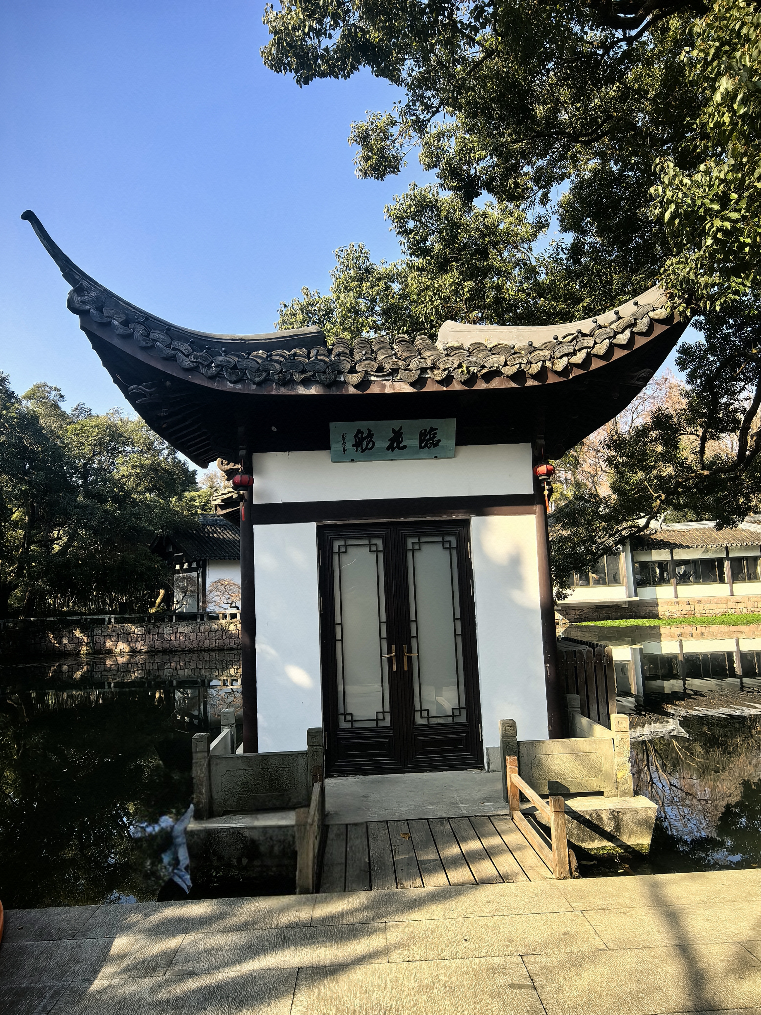 竹素园是曲院风荷的园中园,一般人不会太在意。尤其是旅游淡季,这里更像是一方被时光遗忘的净土,园内几乎见不到几个游人,但见一二个人在廊下晒着太阳,一片静谧恬淡的气氛萦绕着这片樟树蓊郁的小园。 可是,在清代时这里是大名鼎鼎的湖山春社所在地,雍正九年(1731)由浙江巡抚李卫所造,当时凿池置石,构筑亭轩,栽培四时花木,引桃溪清流,屈曲环注,有曲水流觞之意,是当时的西湖十八景之首。 那时湖山春社是以花神庙祭花神和“曲水流觞”为主题的活动场所,非常热闹。后来,乾隆皇帝南巡杭州,到“湖山春社”游览小憩,写下了“面水背山地,涵今茹古园。娱情惟翰墨,扑鼻有兰荪。 会景皆诠理,沿波欲讨源。白苏胥未识,诗句向谁论”的诗句,并御书匾额“竹素园”悬于正中堂上,所以改名为“竹素园”。 园内,江南奇石绉云峰静静伫立。它作为三大江南奇石之一,以独特的造型和纹理吸引着无数目光。其峰峦起伏、沟壑纵横,似一幅天然的水墨画卷,让人不禁感叹大自然的鬼斧神工。 草坪上,往昔常有人在此拍摄婚纱写真,新人们的欢声笑语仿佛还在耳边回荡。冬日的清淡让这里更显空灵。餐厅依旧静静立着,春秋时节常有老同志活动聚餐的热闹场景。 在冬日的竹素园里徜徉,每一处角落都诉说着过往的故事,让人在时光流转中,品味历史的韵味。