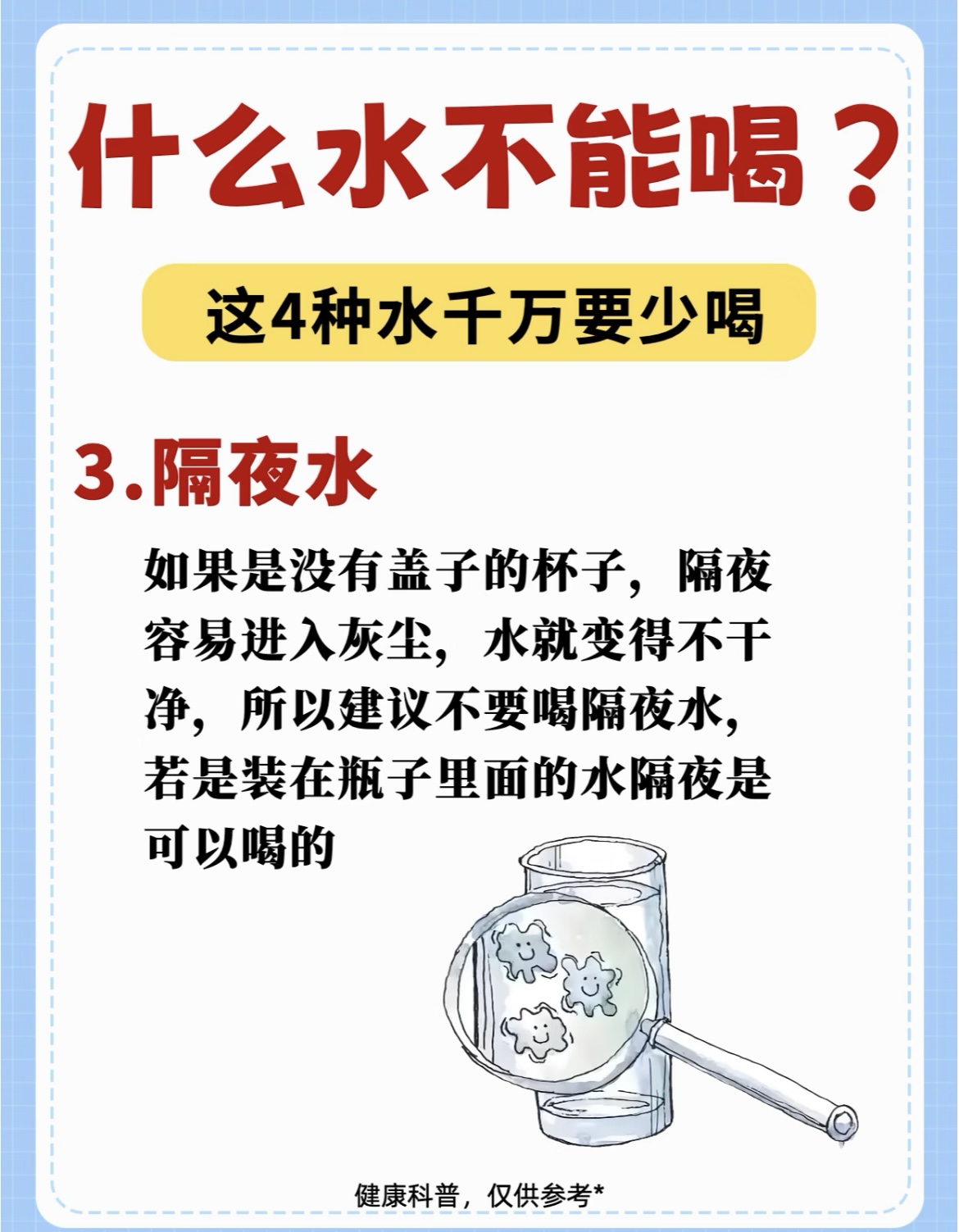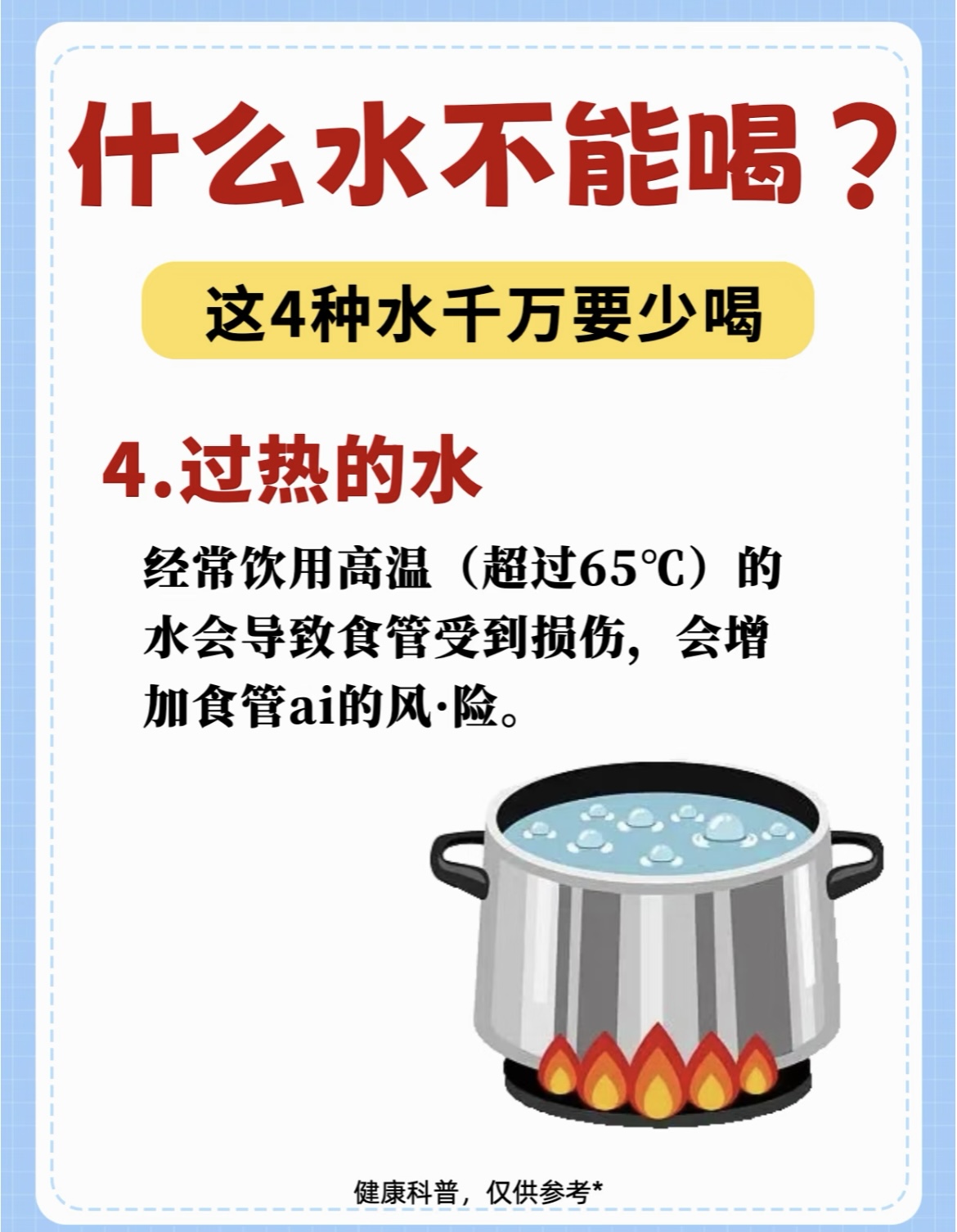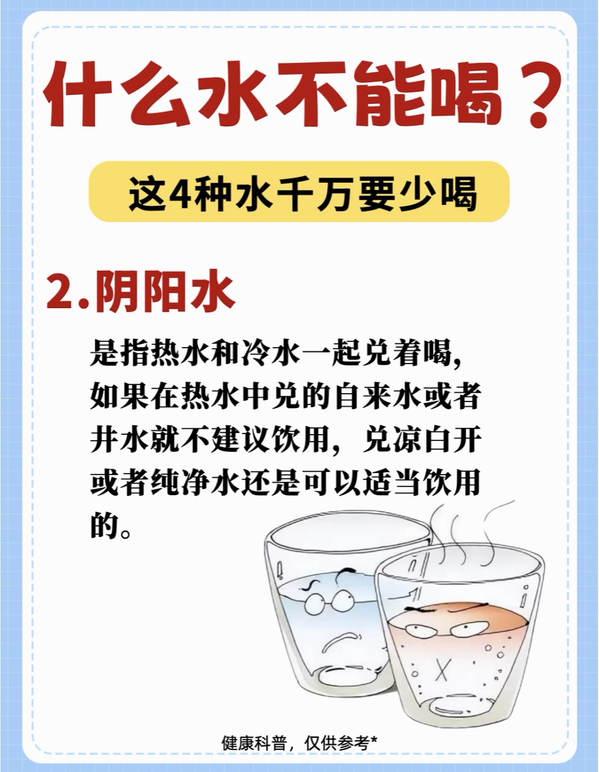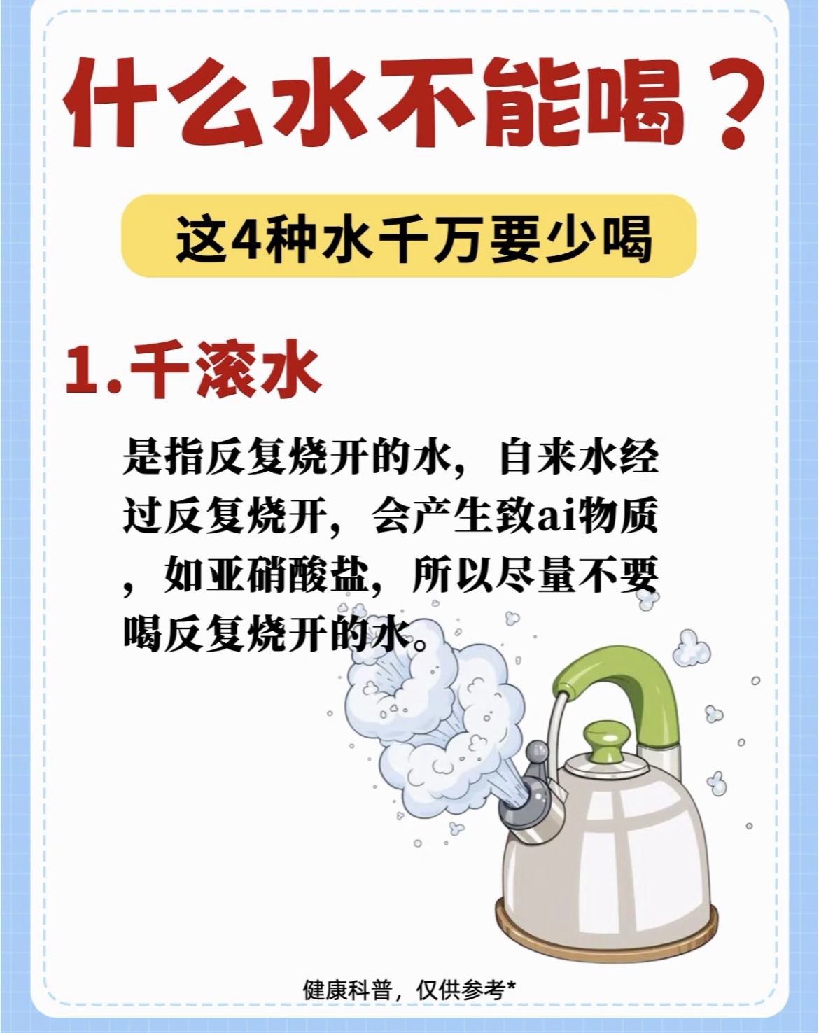 这4种水要少喝! 1.千滚水 2.阴阳水 3.隔夜水 4.过热的水