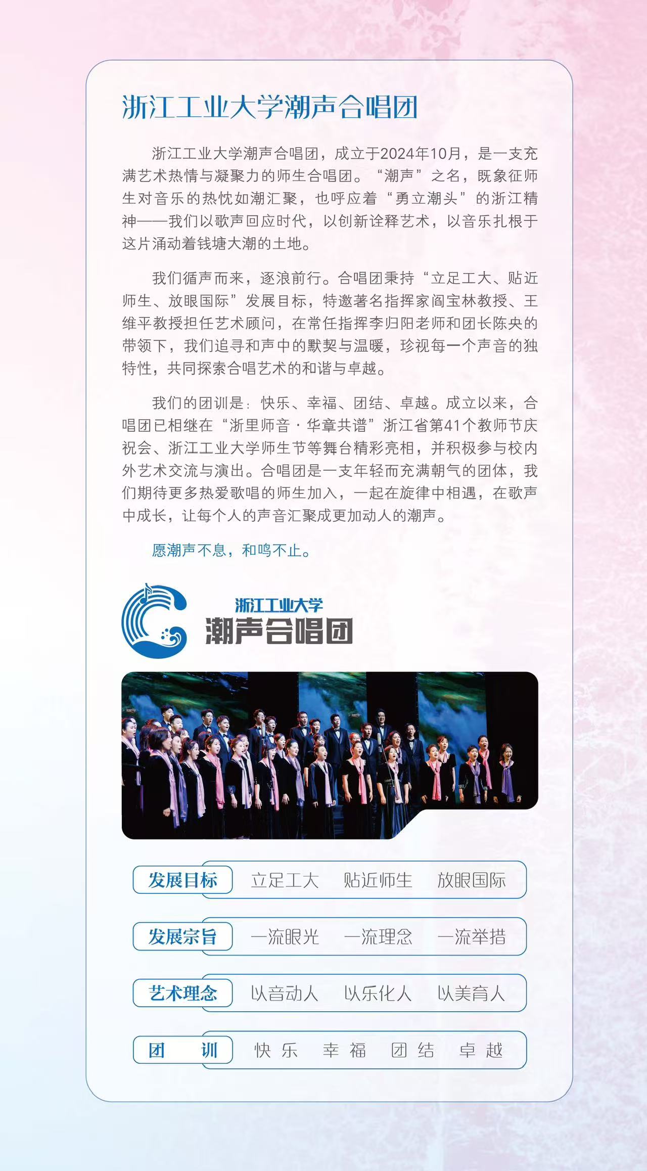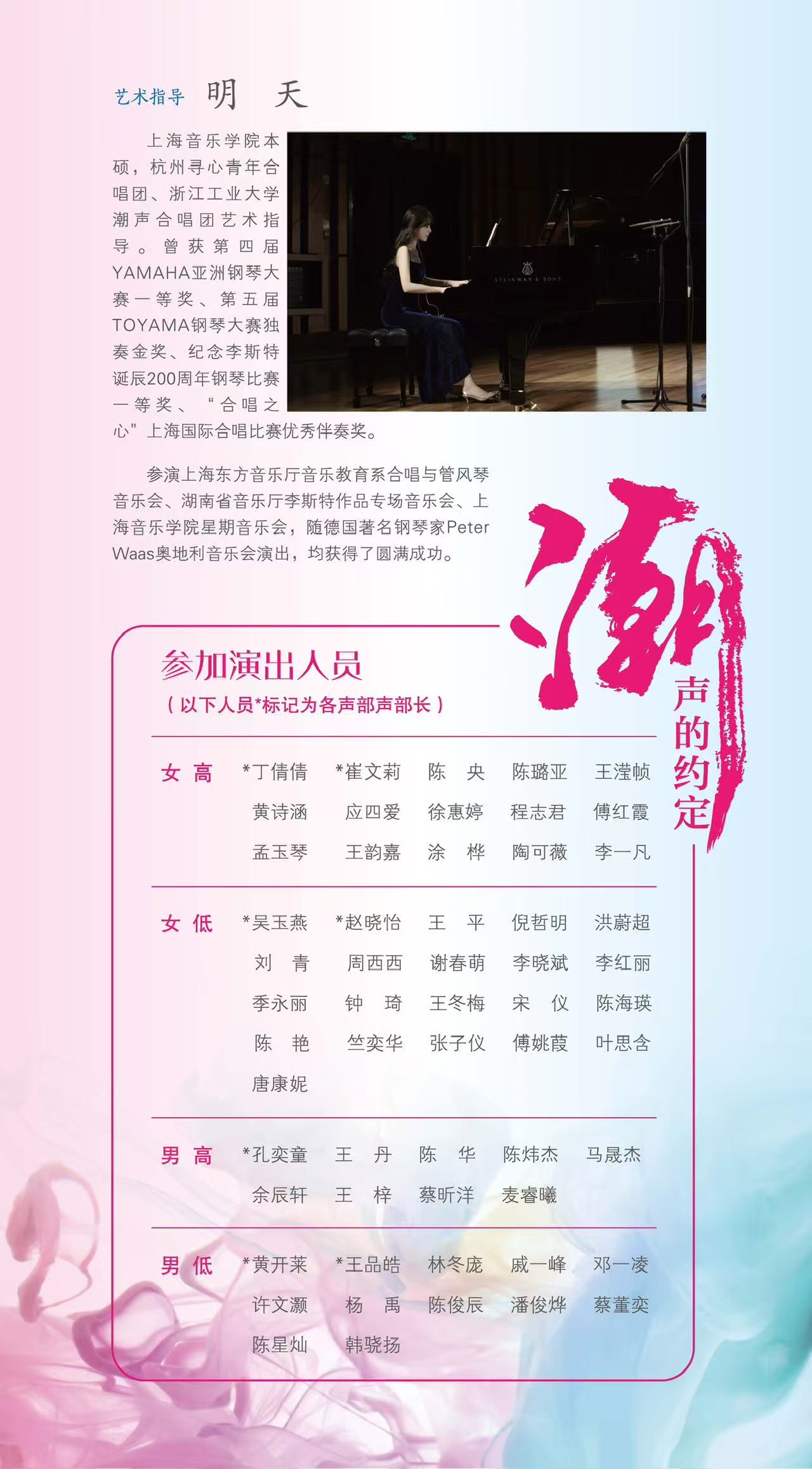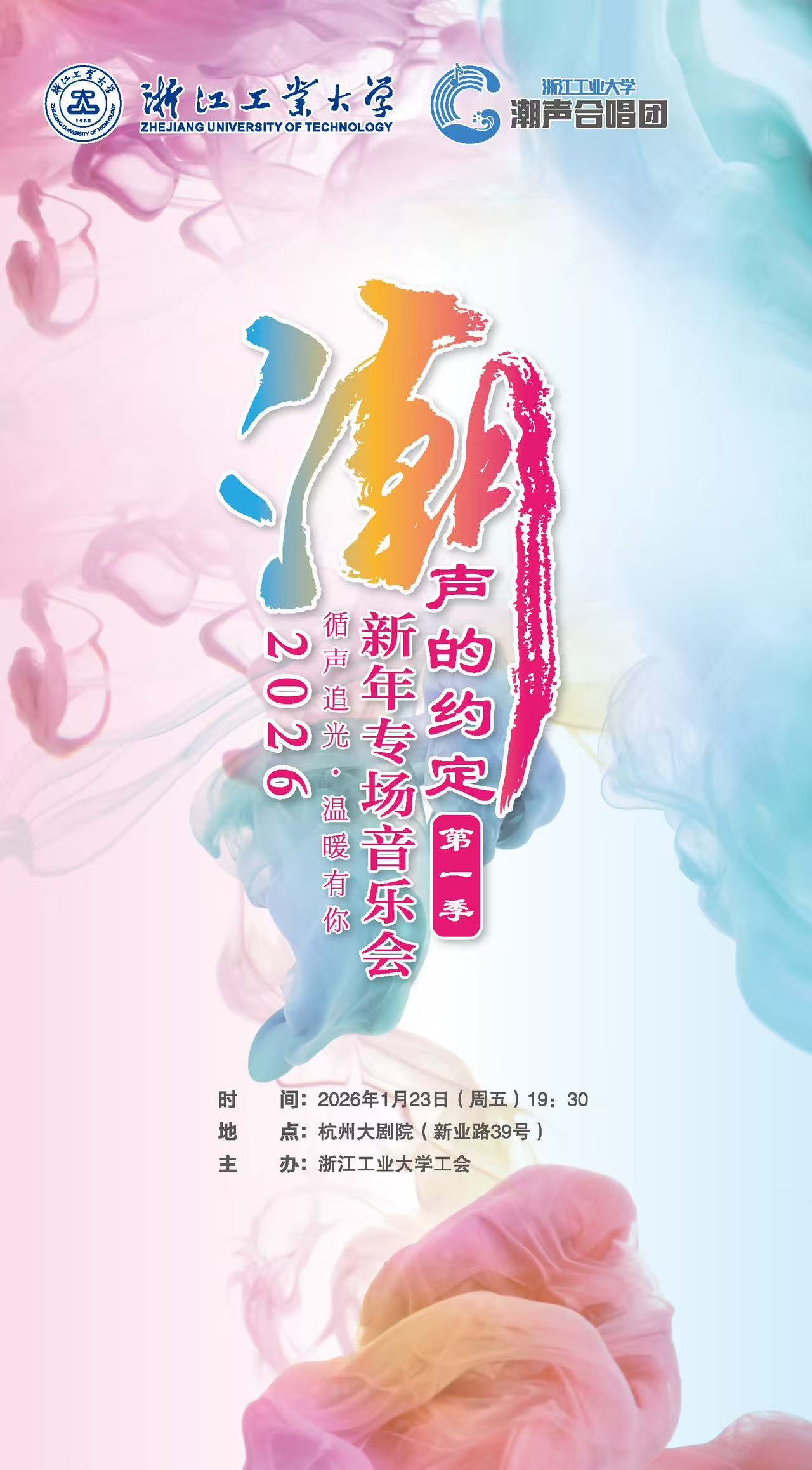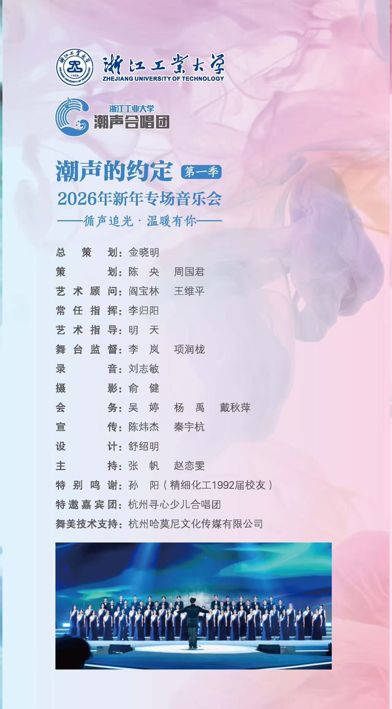 岁序更始,乐启新章 循声追光,温暖有你 浙江工业大学潮声合唱团邀您共赴“潮声的约定·第一季——2026年新年专场音乐会” 让歌声传递冬日温暖 用旋律点亮新年时光 1月23日晚19:30,我们杭州大剧院见!