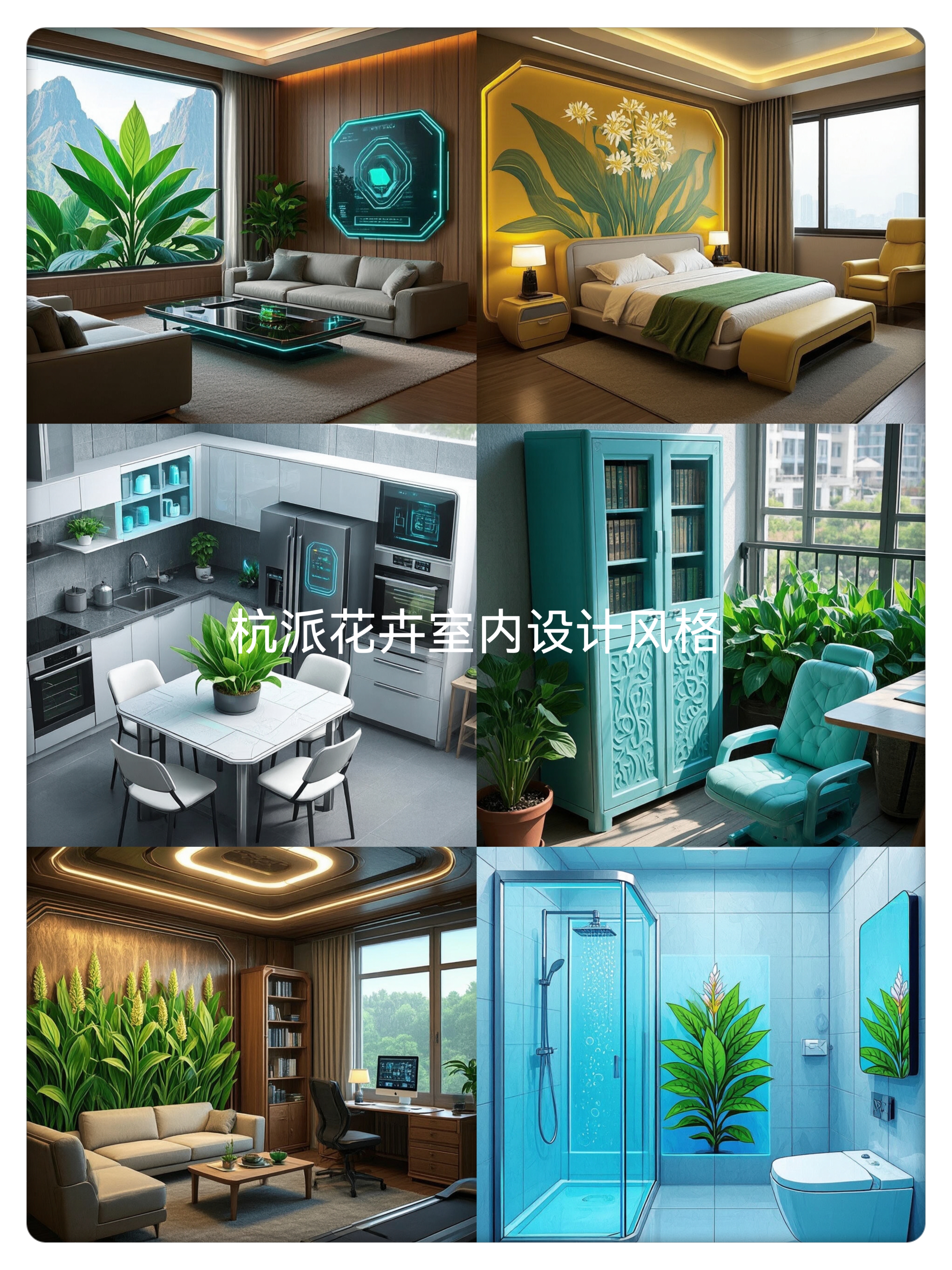 AI画,室内设计,杭派花卉室内设计风格,(工具:混元)