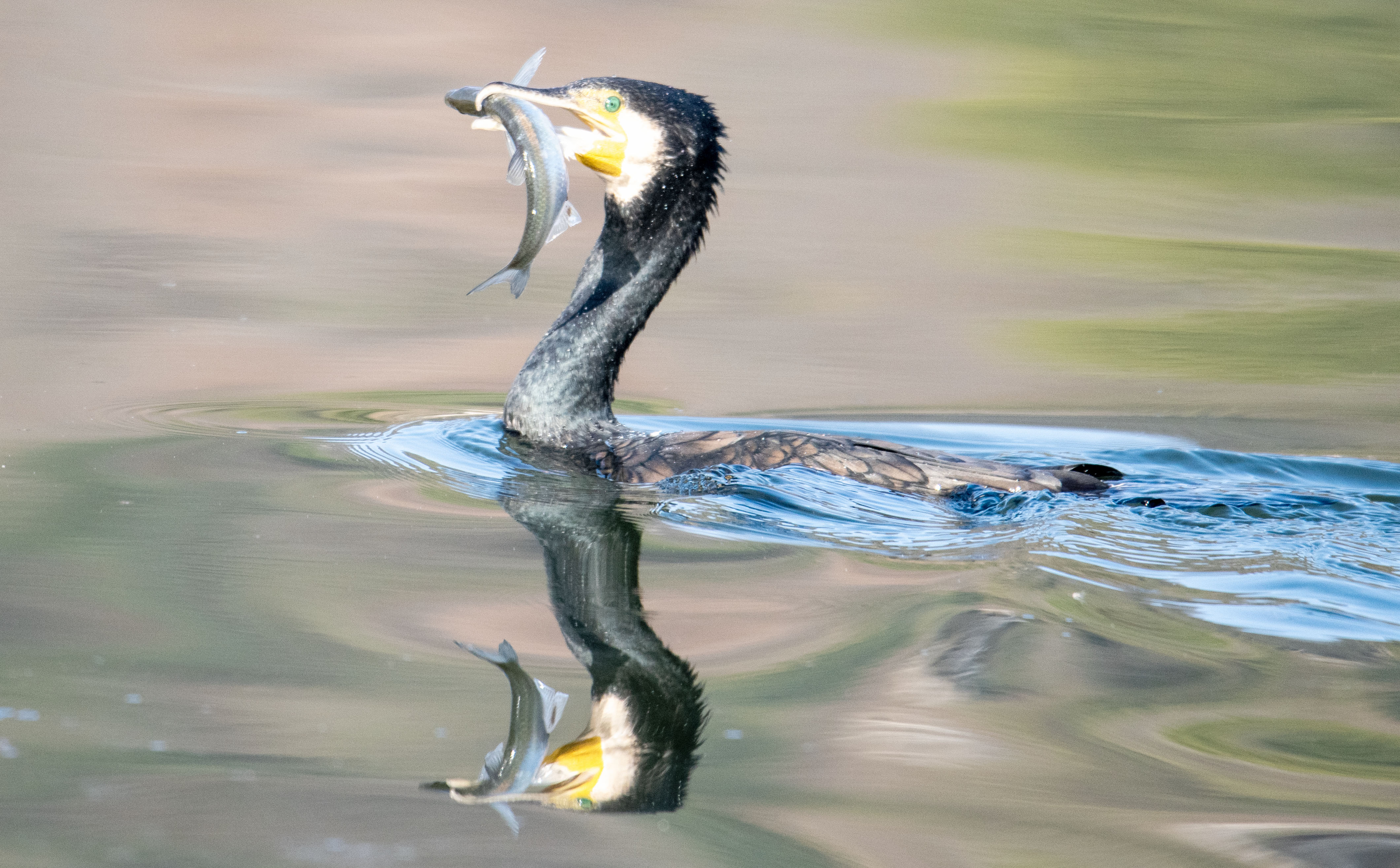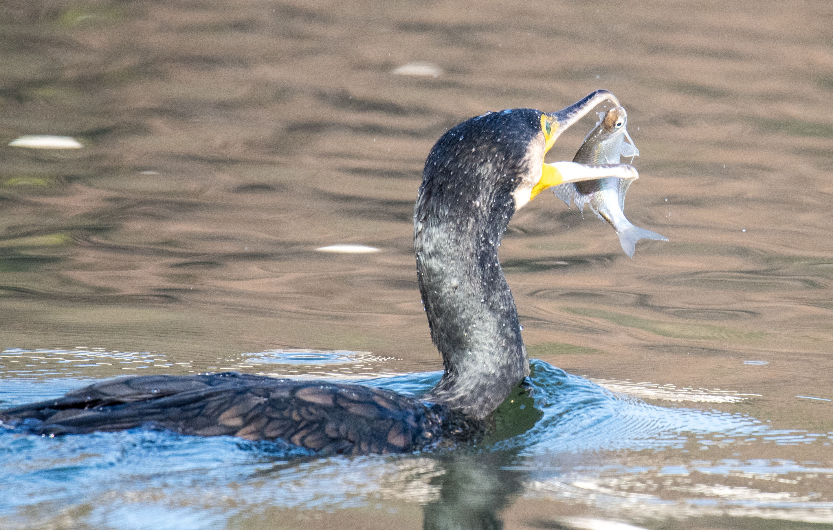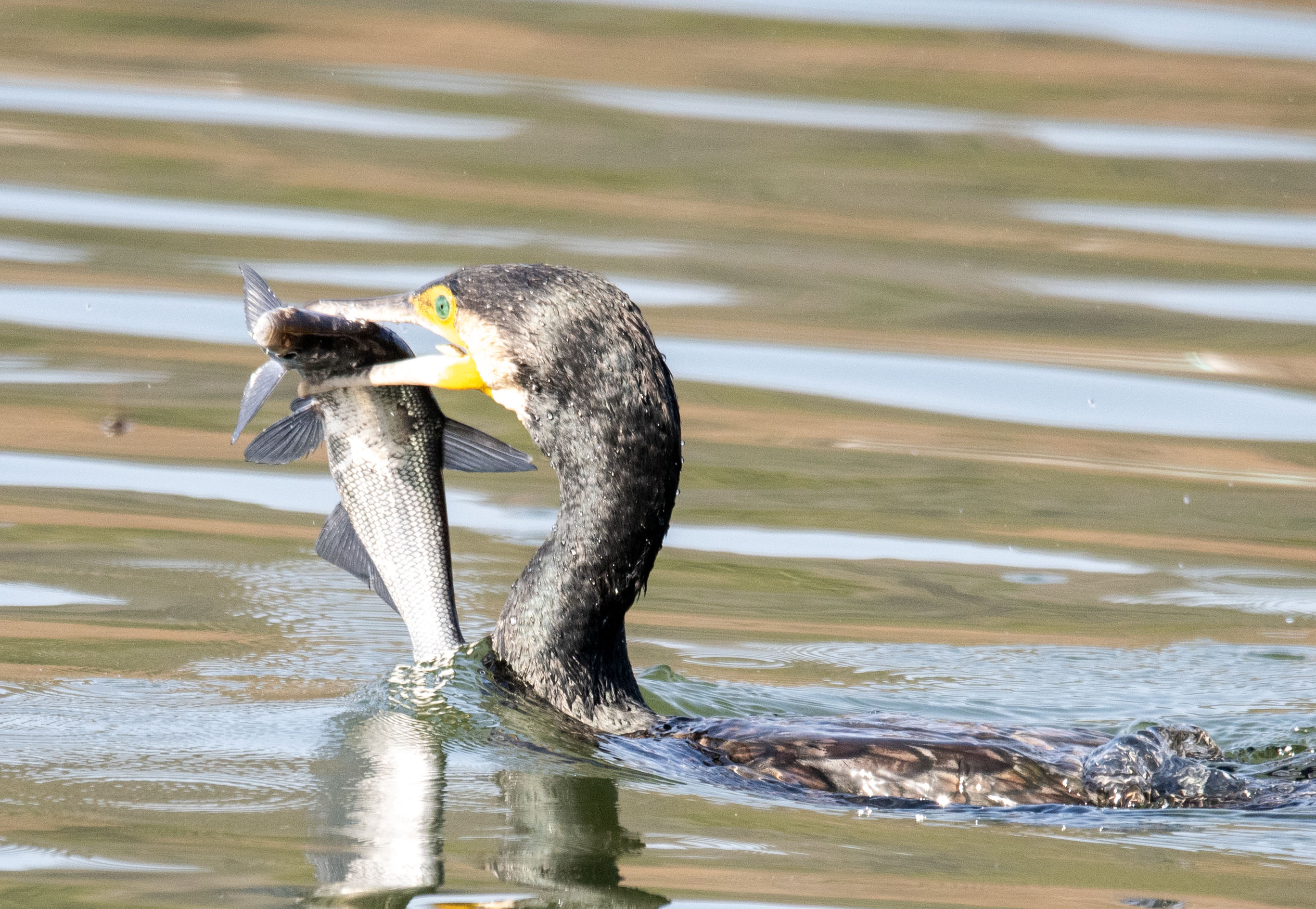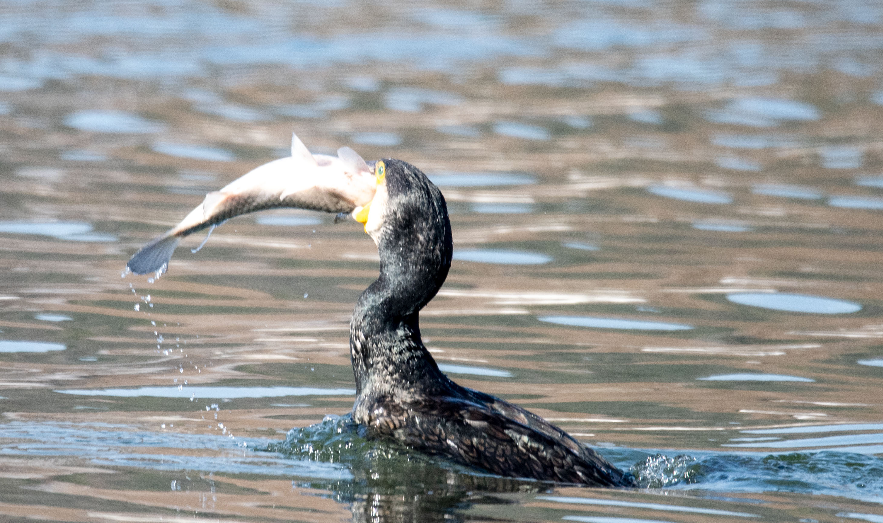 西湖这位年轻气盛的捕鱼小能手鸬鹚,一瞅见那漂亮鱼和大鲫鱼,激动得跟啥似的,结果一个猛子扎下去,鱼没叼着,倒给自己给“砸晕”了,鱼都没吞下去!得咖,只能委屈巴巴地抓点小鱼来解饱咯∽
