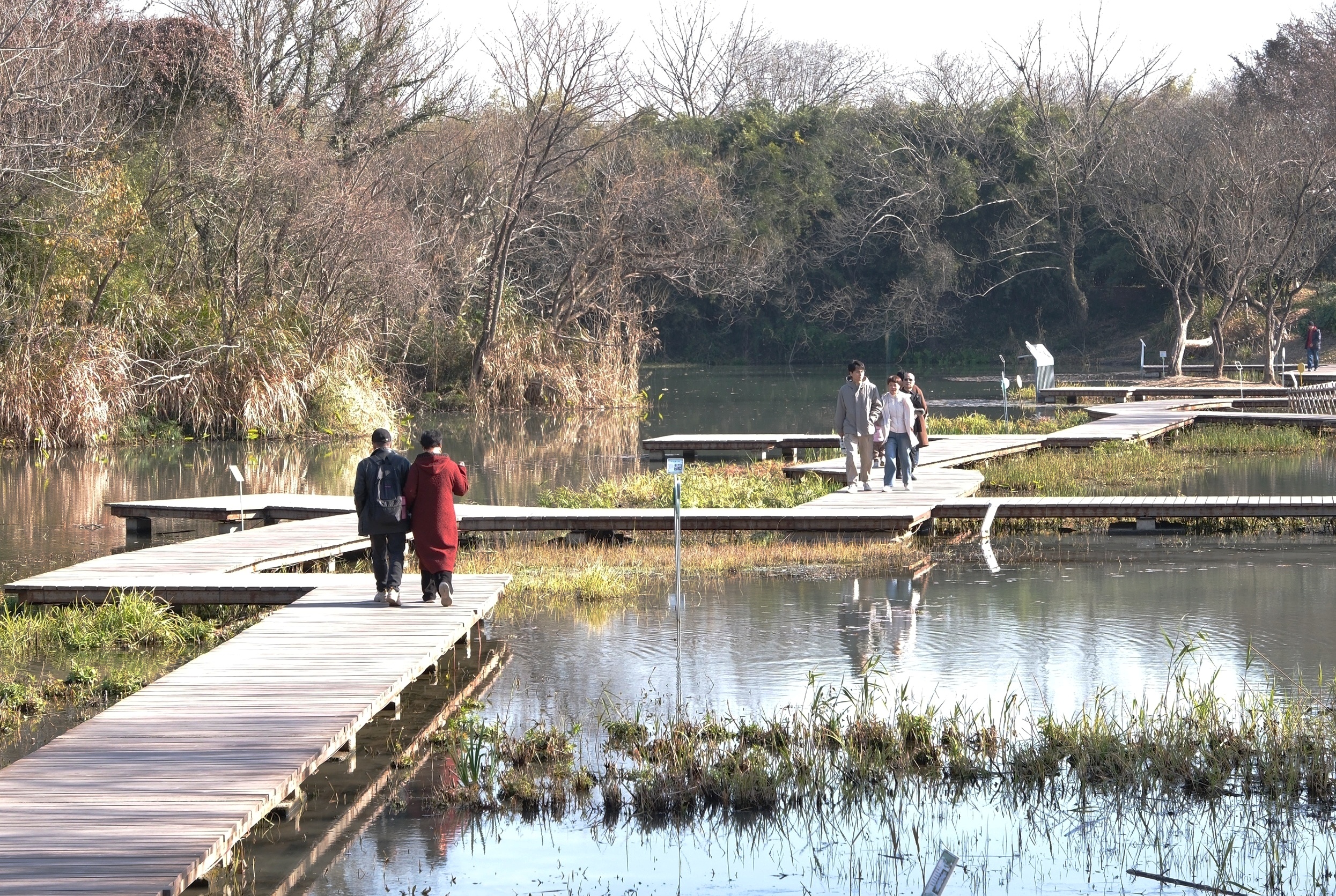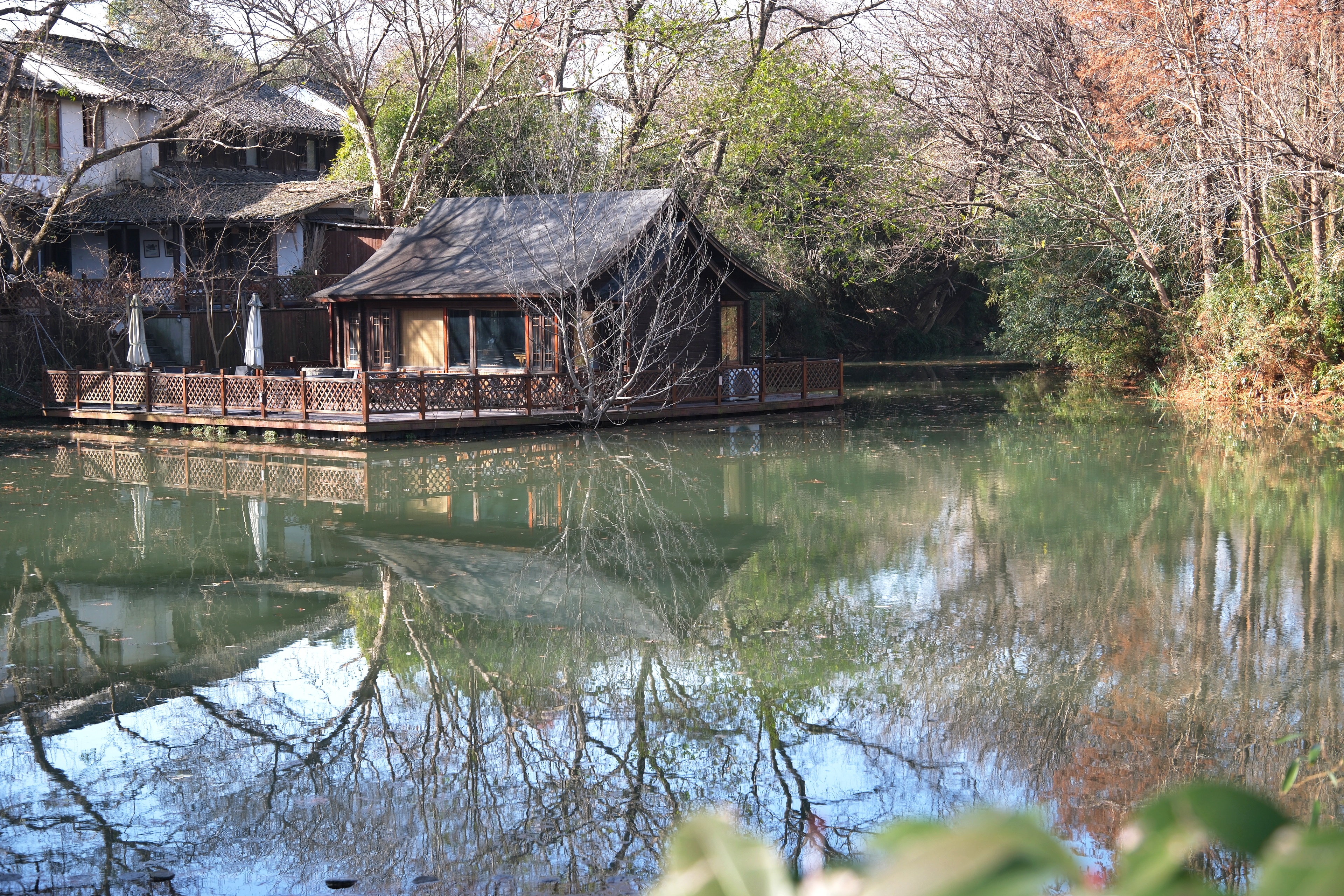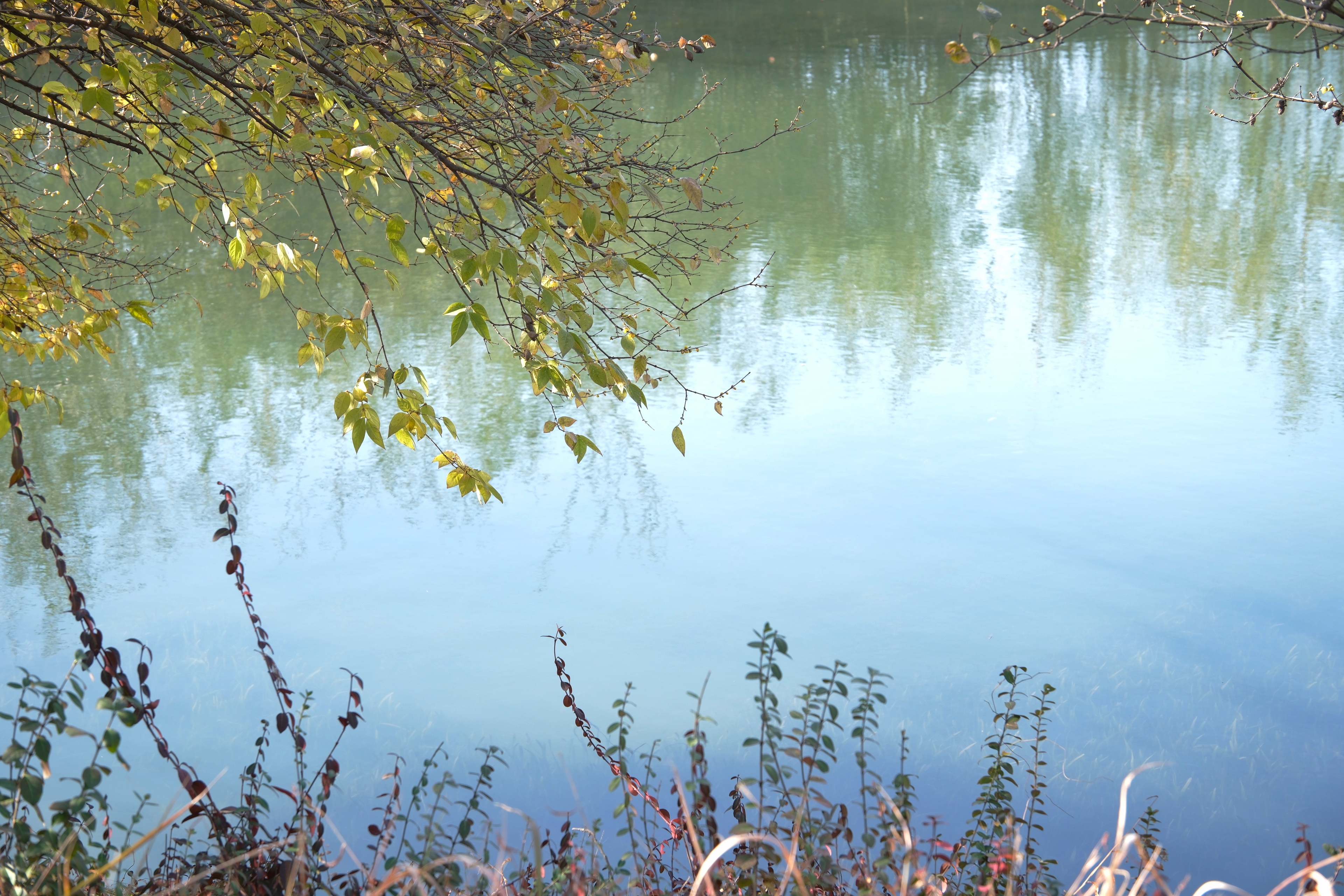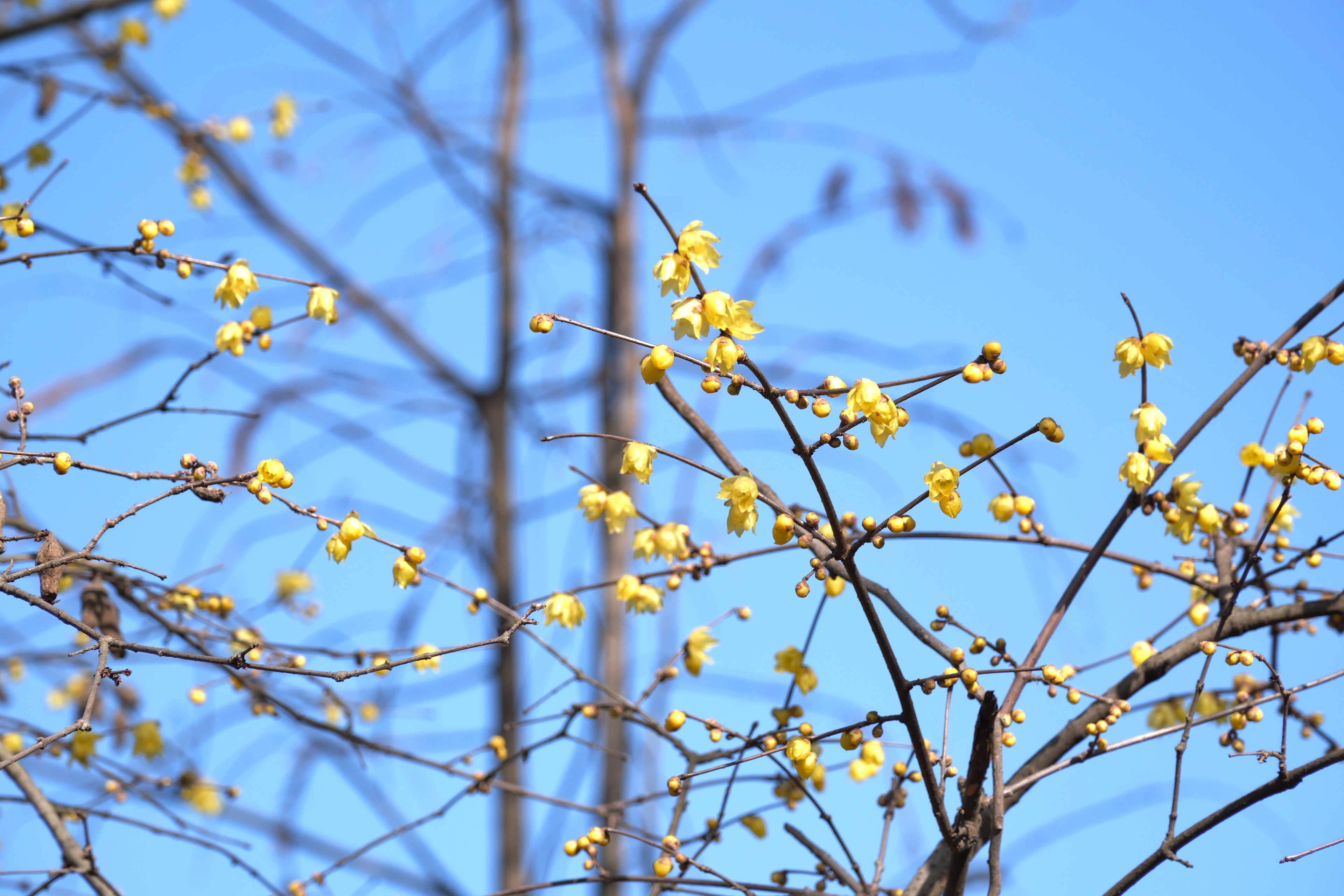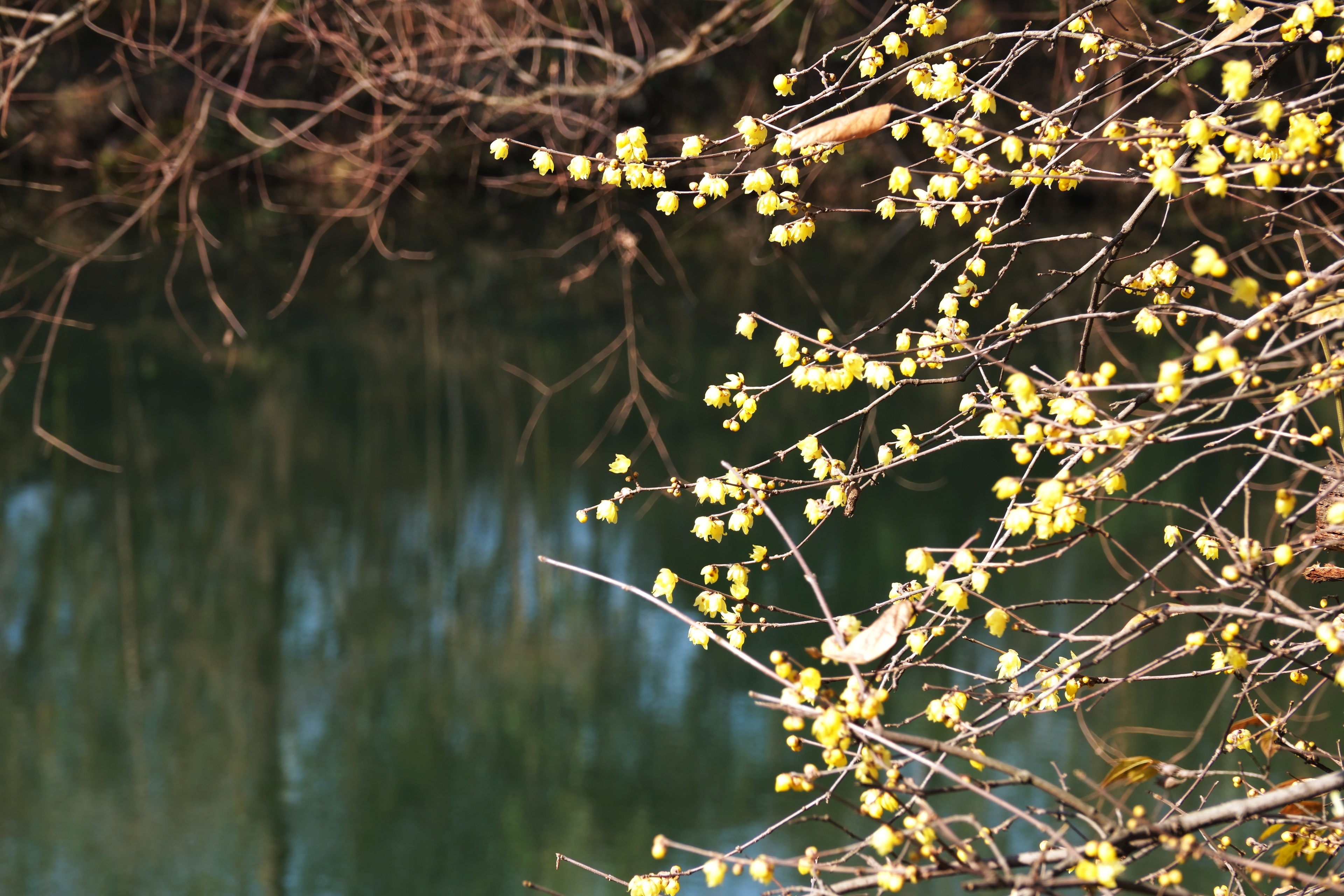 从西溪湿地北门进,沿着福堤往南走,虽说是双休日,一路人寥寥。是冬天的景象,带点萧瑟,却也带暖意。红色的南天竹被阳光映得透亮;挂满红小果的石楠树,茂密的枝叶间跳跃着几只绣眼鸟,活泼泼地难入镜头;河边一株腊梅开得甚好,点点金黄缀满枝头,幽香浮动…暖暖的色彩孕含着春的期待。