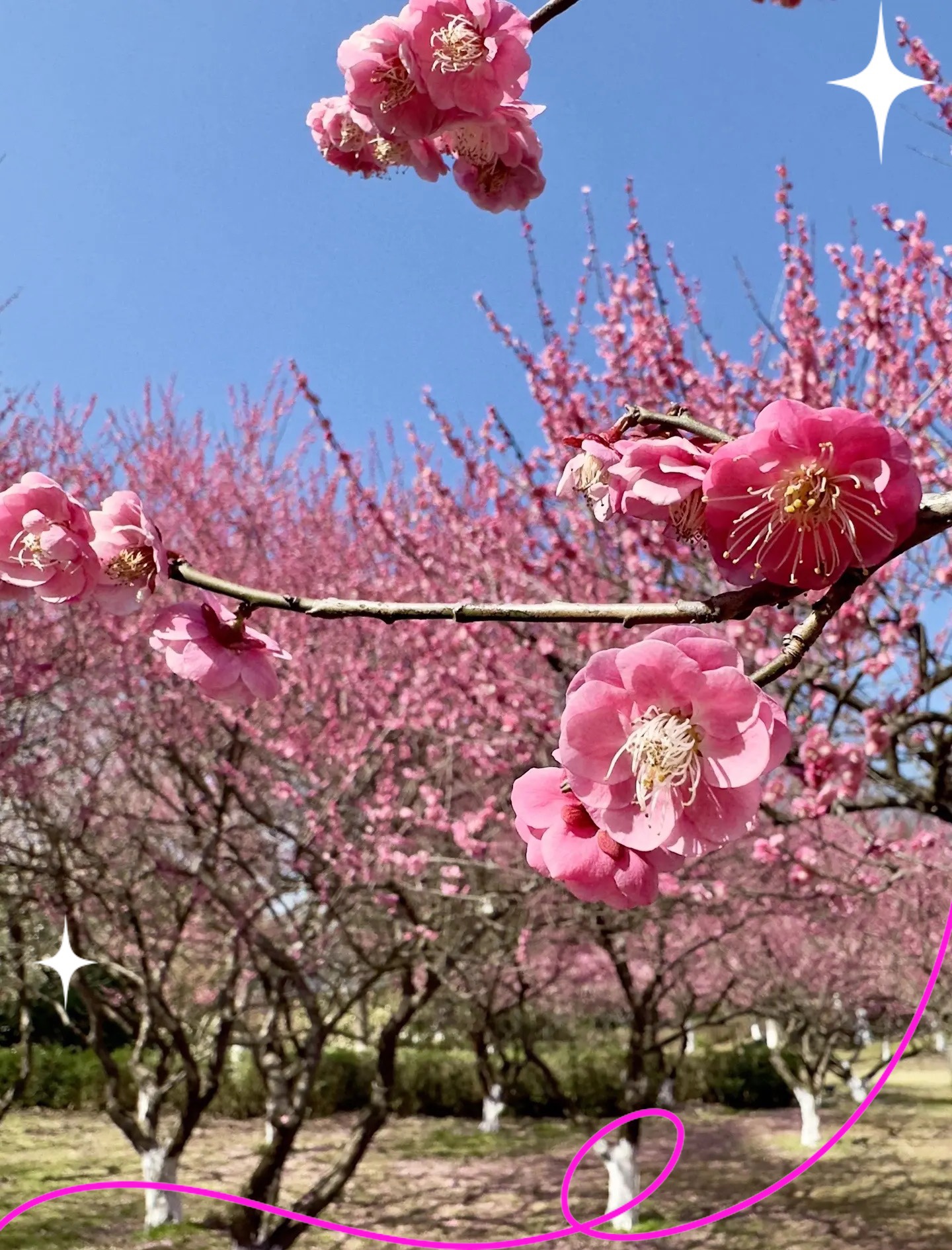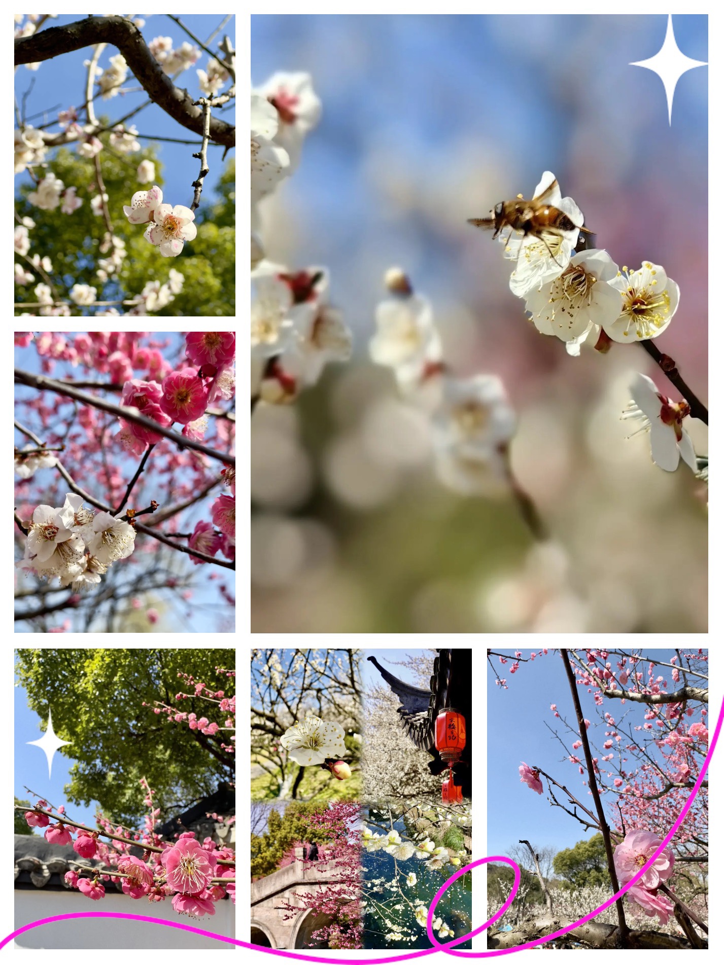 一、我超山赏梅的故事 访梅 我去超山访梅。 去时正是清晨。未近山,倒先有一缕清幽的、极淡的冷香,若有若无地,从车窗的缝隙里渗进来,像是冬的呼吸。待下了车,那香气便蓦然间有了形体,不再是飘忽的魂,而是潮润润的、带着微甜的空气,将我整个人温柔地浸透了。这大约便是“香雪海”三字的由来了——那香气并非嗅到的,而是触到的,凉而软,像一匹无形的素绢,拂过你的面颊。 转过山脚,那海,便浩浩荡荡地铺展在眼前了。 果真如郁达夫先生九十年前所见的那样,“五步一丛,十步一坂”。花是盛大的,却盛大得不喧闹,只静静地开着,一层层,一叠叠,从山麓直涌到山腰。远望去,恍然是一片停驻的、流动的云霭,又像是昨夜一场未化尽的新雪,匀匀地敷在山坡的肌理上。我走近些,那整体的“雪”便消散了,还原成万万颗清寂的个体。那花是白的,白里又透着些极嫩的青与粉,如同上好的宣纸,被时光熏染了一层温润的底色。花蕊是细细的、娇怯的黄金,点在中央,给这满眼的白添了一点活泼的亮。最奇的,是我竟真寻着了几朵六瓣的。五瓣的梅是常态,是规矩;这多出来的一瓣,便是超山的魂了,是它不肯与世推移的一点执拗,一点天真。我凝视着那多出的一瓣,心想,九十年前郁先生看它时,怕也是这般心思罢。 我的脚步便不由得向着那更深处、更古处去了。穿过大明堂寂静的庭院,在青石板上,我遇见了它——那株传说中的宋梅。 它全然不是我想象中“花树”的模样。虬曲的、如铁铸般的枝干,黑黢黢地,向天空伸展出嶙峋而倔强的线条。树皮皴裂得厉害,像一位沉思的老者额上深刻的纹路,每一道里都蓄着风雨与雷霆。可就在这般苍老得几乎死去的身躯上,竟迸发出那样一蓬蓬、一簇簇鲜活的花!那花朵仿佛不是从枝条上生出来的,而是从这老树深沉的梦境里,一点一点沁出来的魂魄。这一枯一荣,一生一死,在此处,竟融合得如此惊心动魄,如此理所当然。我想起那位自称“苦铁道人梅知己”的画师吴昌硕来。他晚年定居上海,锦衣玉食,画名动天下,心里念念不忘的,却依旧是这株老梅。他一遍又一遍地画它,笔下的梅干也如这真身一般,是焦墨写出的“铁骨”。后来他干脆留下遗言,要埋骨于这梅旁。如今,他果然静静地睡在离此不远的山坡上。我忽然懂了,他爱的哪里是梅的“疏影横斜”,他爱的,是这枯瘦躯壳里那股子挣破时光的、不肯妥协的力。他画梅,画的便是他自己。 日头渐渐偏西,金色的光斜斜地切过梅林,将花影拉得极长。风起来时,便有了那“海”的声响。不是涛声,是极细碎的、花瓣与花瓣,花瓣与风之间低低的密语,沙沙的,像春蚕在咀嚼桑叶。偶有几片经不住风的,便旋舞着,轻轻悄悄地落下来,停在你的肩头,或是脚下的青苔上,了无一声叹息。这寂静的喧哗,比万籁俱寂更让人心空。我学着古人的样子,寻了块干净的山石坐下,什么也不做,只是看着。看着光线如何一分一分地挪移,看着那白的云霭如何渐渐染上暖金的、继而绯红的边,看着天地间这盛大的、静默的演出。唐人咏梅,说“前村深雪里,昨夜一枝开”,是一种孤绝的惊喜;宋人爱梅,说“暗香浮动月黄昏”,是一种幽微的惆怅。而我此刻眼前的,却是一种“在”。不悲不喜,不孤不群,只是这般全然、饱满地“在”着,开了满山,香了千年。 暮色四合,游人都散尽了。我却贪恋这最后的清光,迟迟不愿离去。今年的梅花季,听说新设了夜游的专场。我想象着,当灯盏次第亮起,这白日里素净的梅林,怕是要变作一个琉璃的、梦幻的所在了。那“赛博朋克:逆转幸运司”的剧本游,又会给这古老的山林,注入怎样新奇的魂魄?这或许便是超山的另一面:它既容得下千年的寂寞,也接得住现世的欢腾。那六瓣的梅花,不也正是一种对固有程式的“逆转”么? 我终是起身,沿着来路回去。山门已在身后,那馥郁的香雪海,又变回一缕幽淡的、追随的冷香,缠绕在衣襟上,久久不散。我没有回头,但我知道,那株宋梅,连同它身旁长眠的画魂,以及这满山阅尽沧桑却依旧天真烂漫的六瓣精灵,都已静静地、深深地,印在了我的骨血里。我来时,心中满是期待与“访”的念想;归去时,行囊里却只装着一片空明,与一身清香的月色。 那梅,自开自落,本不待人。是我,需要这一场无声的对话,来熨平心中某些自己也不曾察觉的褶皱。这大约便是造物主最慈悲的馈赠了——总有一片山水,一株花树,在时光的深处静静等着,等着与你生命中的某一刻,猝然相逢,然后,彼此照亮。 二、我对超山梅花季的期待 对超山赏梅季的期待,早已超越了单纯的“看花”。若说上一次的探访是与历史的一场静默对话,那么未来的期待,便是希望与这片梅林,发生更多维、更生动的连结。 🌙 期待一场“颠倒时空”的夜访 最心心念念的,莫过于今年新设的夜游专场。白日的梅林是宋元画卷,素雅、疏淡;而入夜后,当灯光次第亮起,我期待它变成一个梦境。 想象着,那条著名的“十里香雪海”小径,将被光影勾勒出另一种轮廓。清冷的白光或许会模拟月色,洒在花瓣上,泛起珍珠般的微芒;而暗处,暖黄的、幽蓝的灯,则可能将梅枝的虬影投射在地上,仿佛一幅流动的墨戏图。若真如宣传所言,有一场“赛博朋克:逆转幸运司”的沉浸式剧本游,那便更有趣了——手持仿古“交子”,穿行在真实的花影与虚拟的谜题之间,古今的界限在此模糊,赏梅成了一场跨越次元的冒险