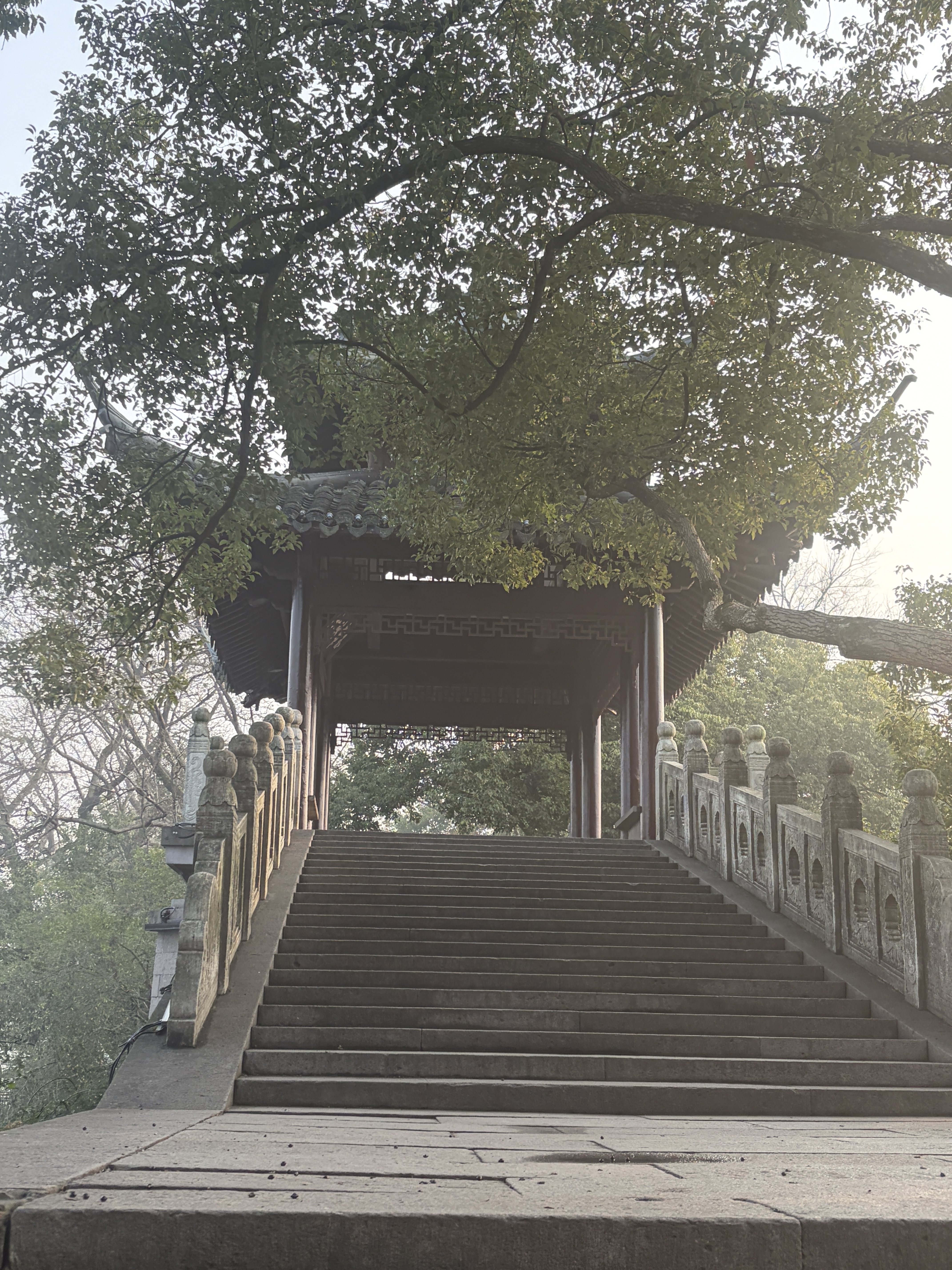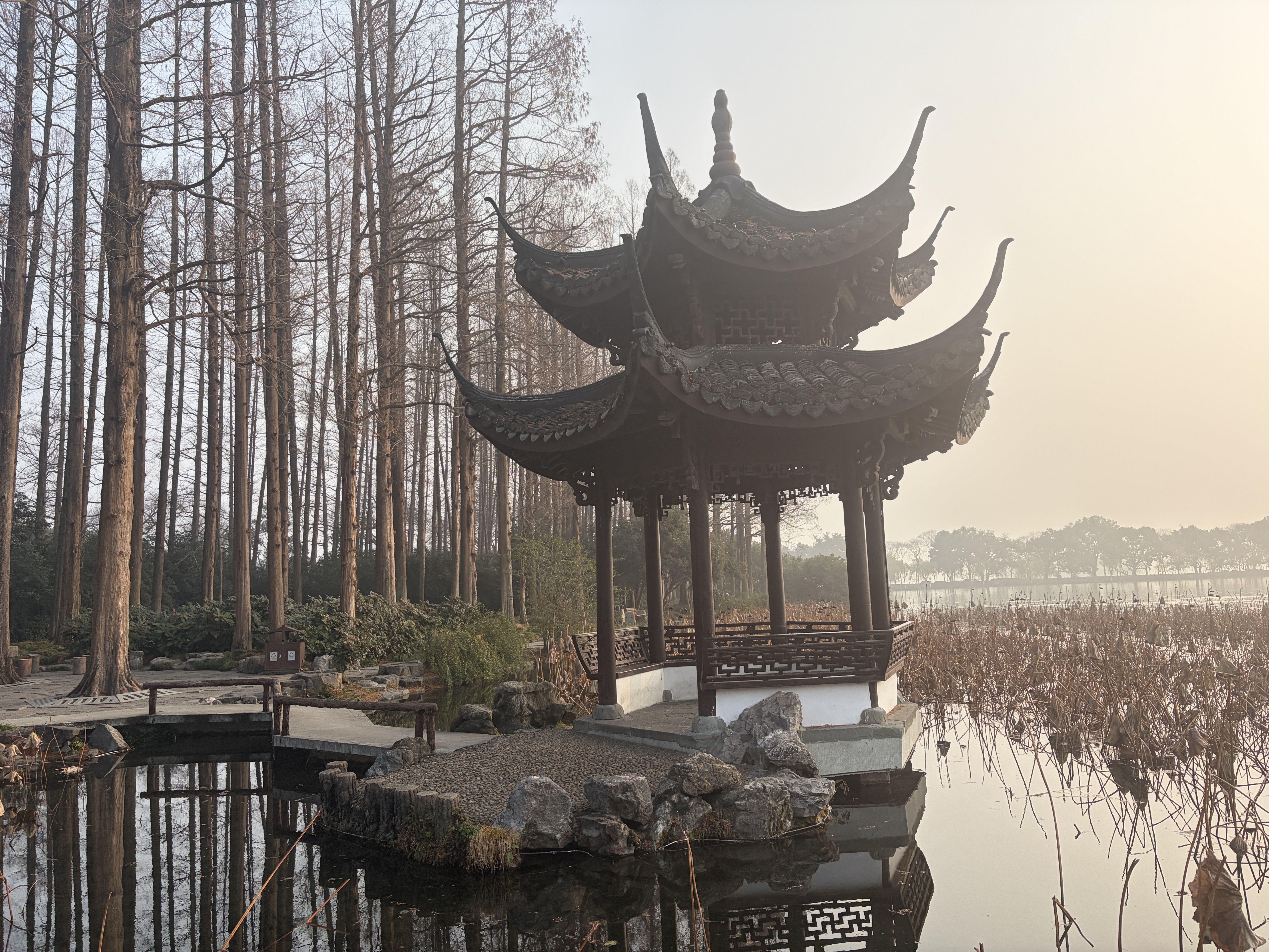 【走读杭州】晨雾中的曲院风荷 每一天早晨,我们都被裹挟在人流中,看车水马龙,看行人匆匆。今天起个早,我从杭州滨江出发,选择往西湖景区的路线,可以欣赏沿途风景,于是十分欢喜。车子上中河高架,过钱塘江,万松岭口下,从书院这条路穿过,西湖美景便呈现在眼前,一览无余。再从南山路拐进杨公堤,无限风光,从车两旁一闪而过。 看时间还早,我想着下去走走。便把车子停在曲院风荷公园三号门,径直走了进去。许是很久没来了,又有点新奇的感觉。想想自己来杭州,有多少次走过,这里一定是熟悉的。然而,这么早来,可能还没有过。因为清晨的薄雾还未散去,草地上的白霜依稀可见。 曲院风荷公园,顾名思义,一定是荷花很多。宋朝柳永写《望海潮·东南形胜》,当时极具盛名。其中就写到杭州“有三秋桂子,有十里荷花”。那西湖荷区,大约有一百五十亩。每到夏天,断桥、北山街、西泠桥一带,红艳艳一片。曲院风荷这边,荷花开得更为香艳。 据记载,南宋时,此地有官家麯院,取金沙涧的溪水,制麯酿酒。这儿也多莲荷,夏风吹来,酒香、荷香,沁人心脾。故名“麯院荷风”。清康熙三十八年(1699),康熙改“麯院”为“曲院”,易“荷风”为“风荷”,遂名“曲院风荷”,为西湖十景之一。1983年,该园经整修后对外开放,占地28公顷,园内荷花有200多个品种,是我国最大的荷花专类园。 曲院风荷,四季皆美。此时,满园的残荷呈现的是一种凋零的美,好似英雄谢幕。往里走,快到西湖了。湖边有一片水杉林,林中有一座湛碧楼。该楼建于1988年,面朝里西湖。在此可凭眺苏堤春晓、雷峰夕照、南屏晚钟,与刘庄、郭庄两大名园比邻。此处以“接天莲叶无穷碧,映日荷花别样红”胜景为特色。 往苏堤方向走过去,有一座桥,名为“玉带桥”。这原是一座古桥,在雍正九年(1731),浙江总督李卫疏浚金沙港,建玉带桥。“玉带晴虹”为清代西湖十八景之一,清代玉带桥亭为重檐歇山顶,桥栏则以汉白玉雕造,刻有夔风、波涛、莲花等纹饰。民国期间桥亭损毁。 1983年接原桥尺度、式样重新修复。 站在玉带桥上,一边是岳湖,一边是里西湖。此刻,看西湖,白茫茫一片。如同刚睡醒的西子姑娘,朦朦胧胧。 眼看上班时间临近,不忍离去。能欣赏到如此美景,只是改变一下习惯。早起一会儿,避开匆忙的人群,就发现了不一样的美。这可能一种心情,但更是一种生活态度。不是说,生活中不缺少美,而是缺少发现美的眼睛嘛。觉得,不无道理。所以啊,我们要善于去发现,去找寻。 美应该是无处不在,在杭州,在西湖。