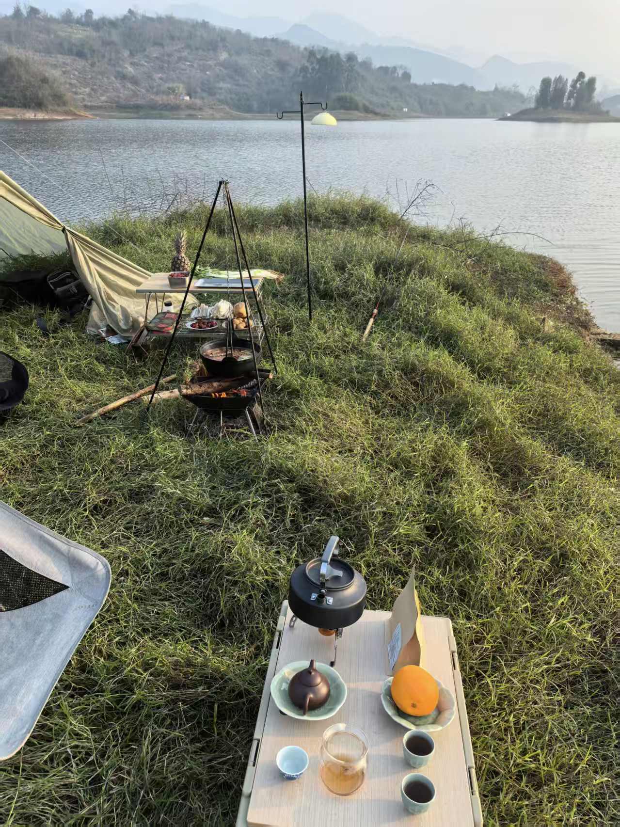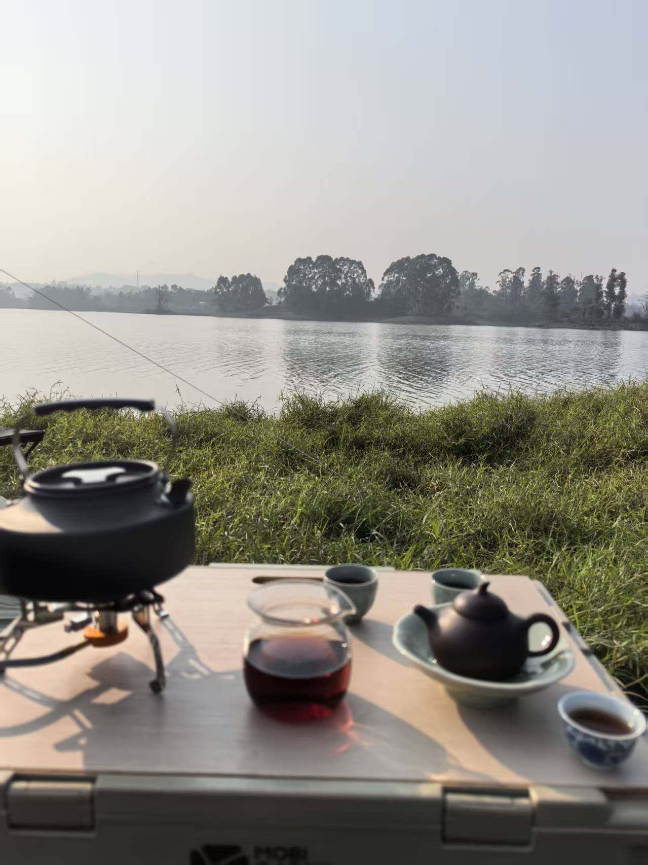 遇见江边一群拍视频的人,带的工具和道具真不少。这样的美景很出片。